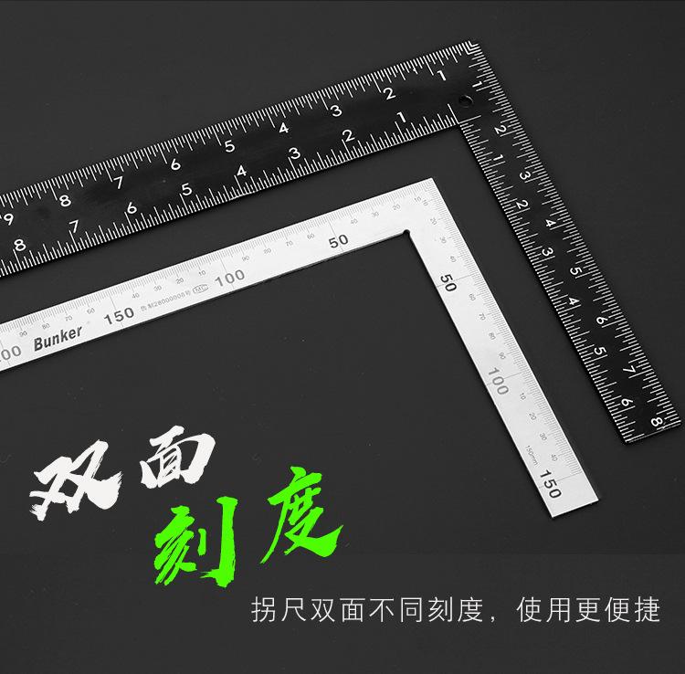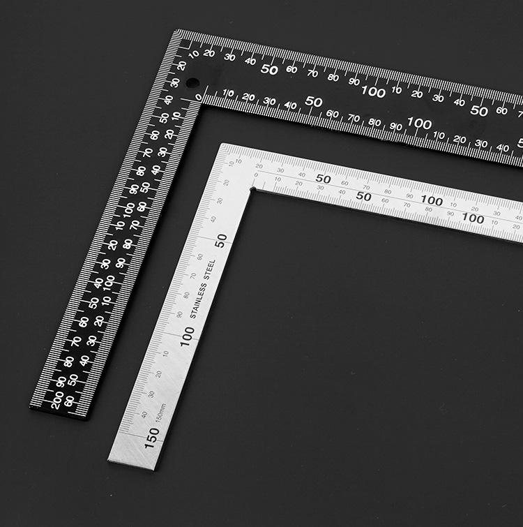 Regla de ángulo recto de acero inoxidable de 90 grados, regla tipo L, regla giratoria ennegrecida, regla de carpintería, regla triangular, instrumento de medición, regla de ángulo