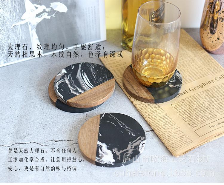 Posavasos de madera de acacia de mármol natural de estilo nórdico, mantel individual para el hogar, tapete para plato, tapete aislante térmico, tapete antideslizante, posavasos para café