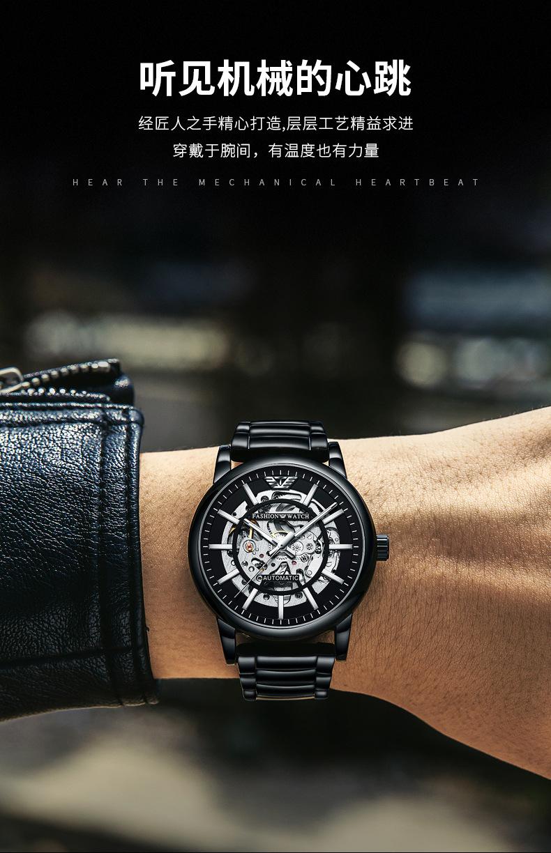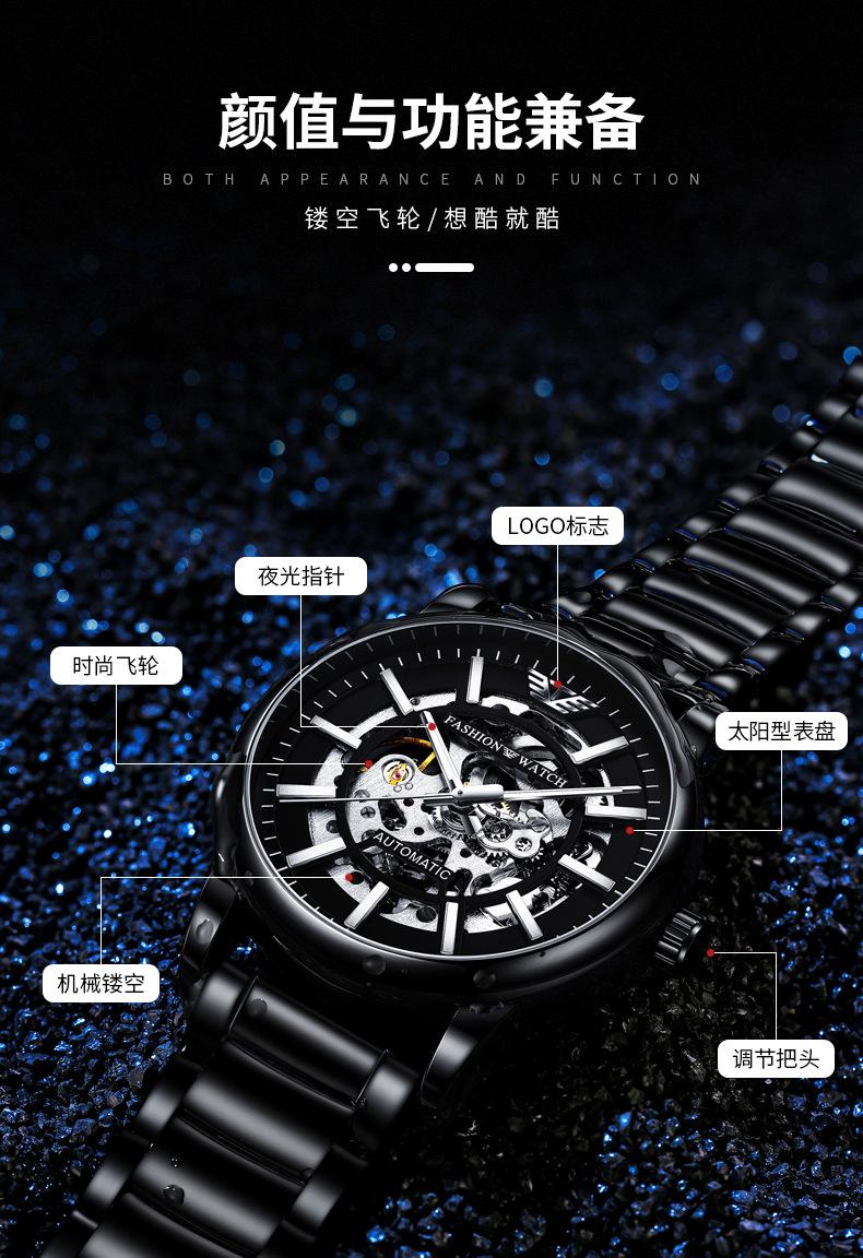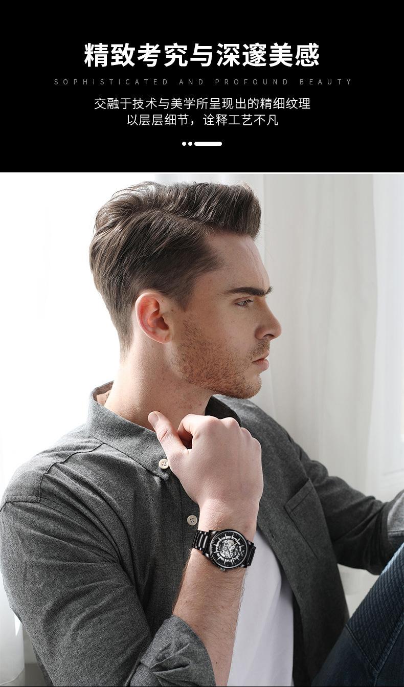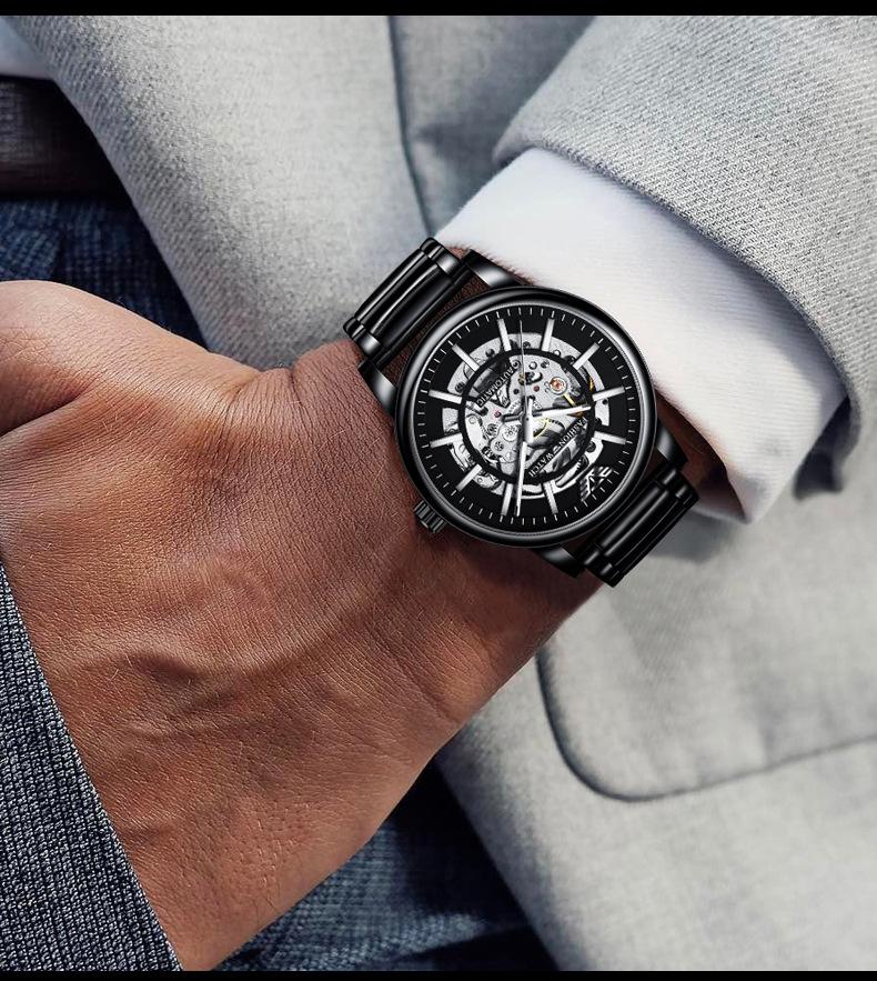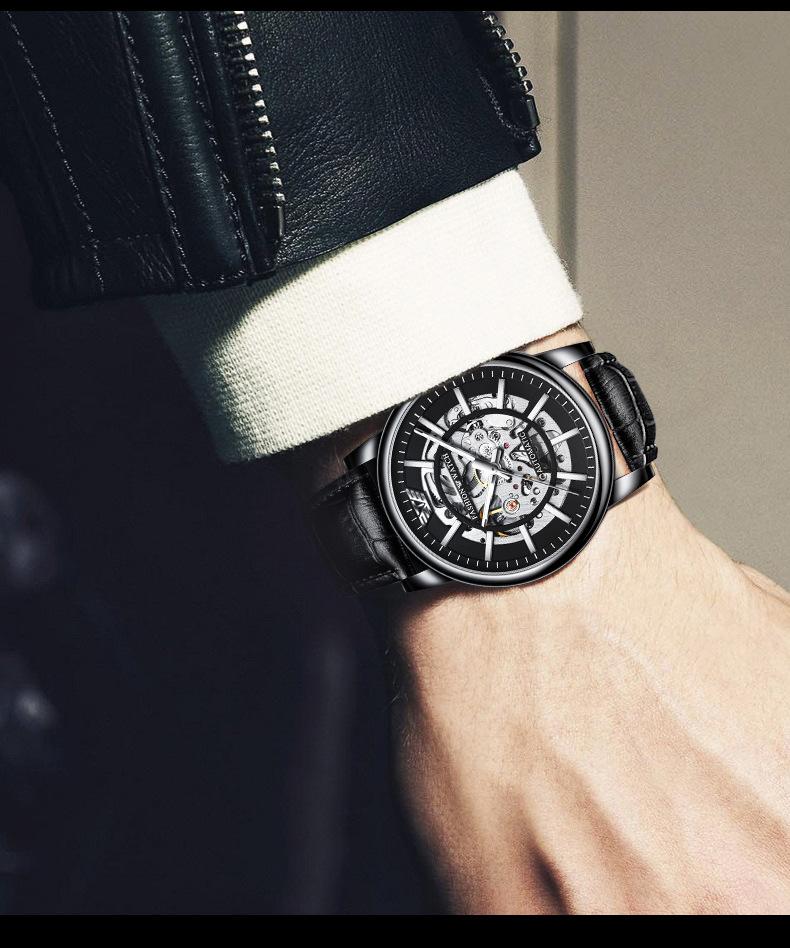 Reloj Mecánico Automático Popular Black Warrior Calado Procesamiento de Fábrica y Personalización Oem Muestra de Reloj de Hombre Personalización