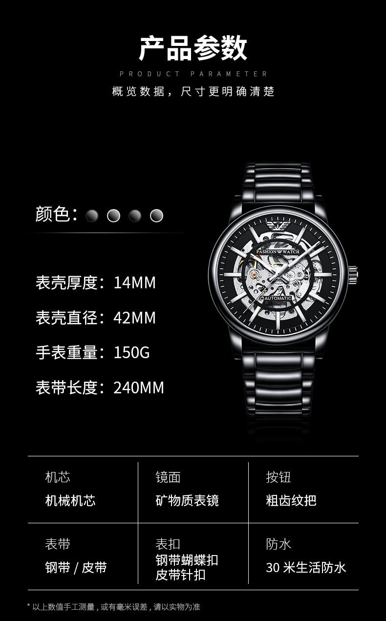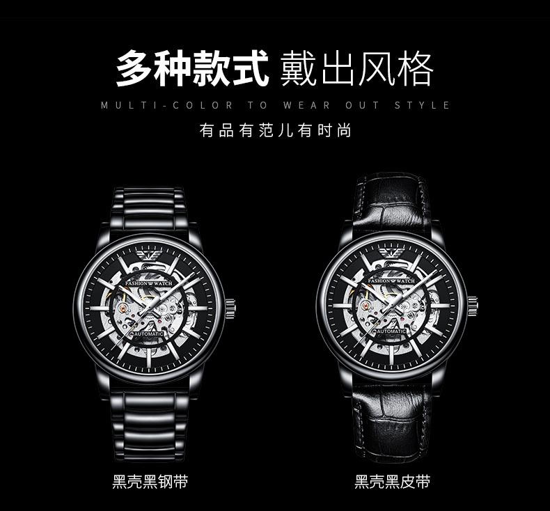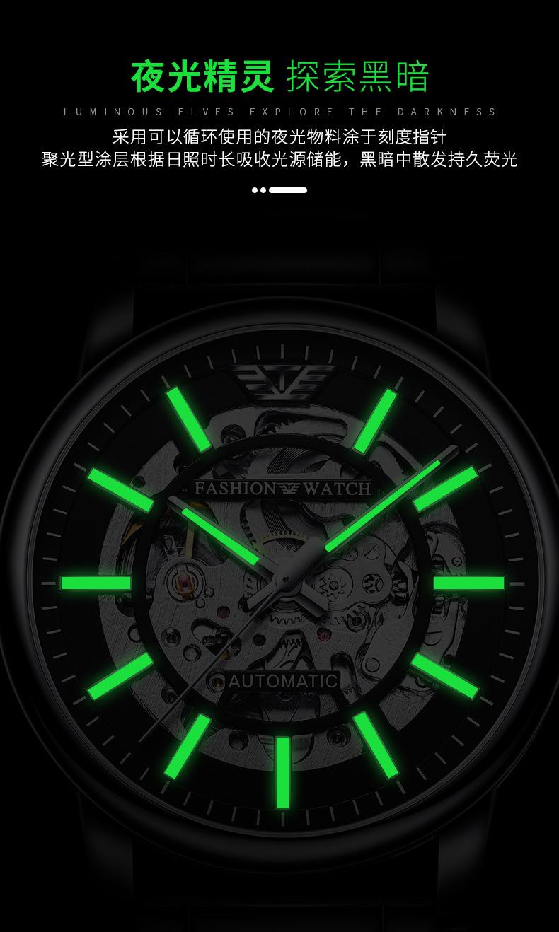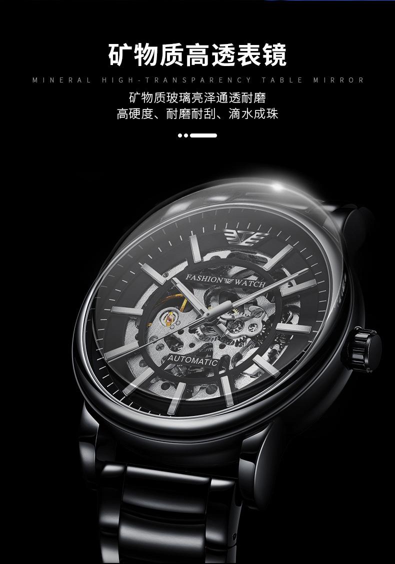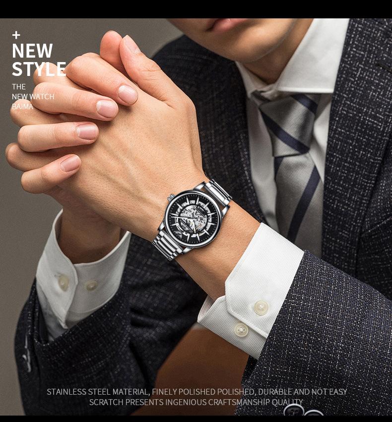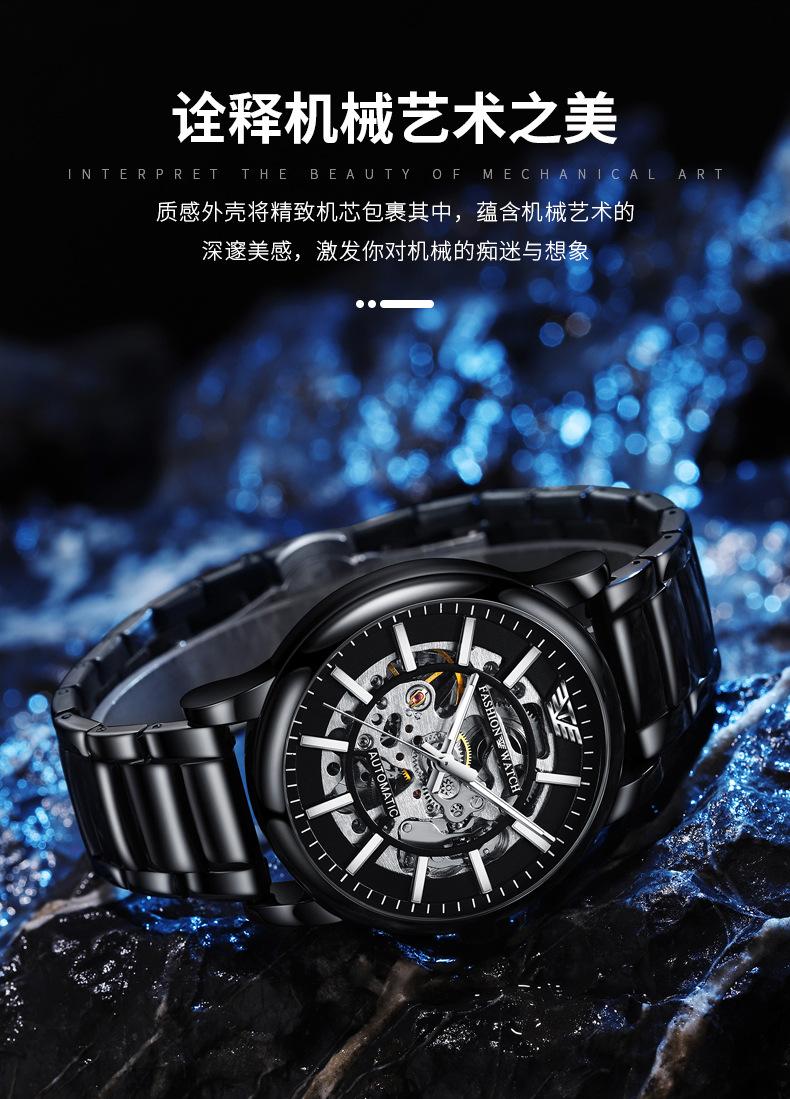 Reloj Mecánico Automático Popular Black Warrior Calado Procesamiento de Fábrica y Personalización Oem Muestra de Reloj de Hombre Personalización