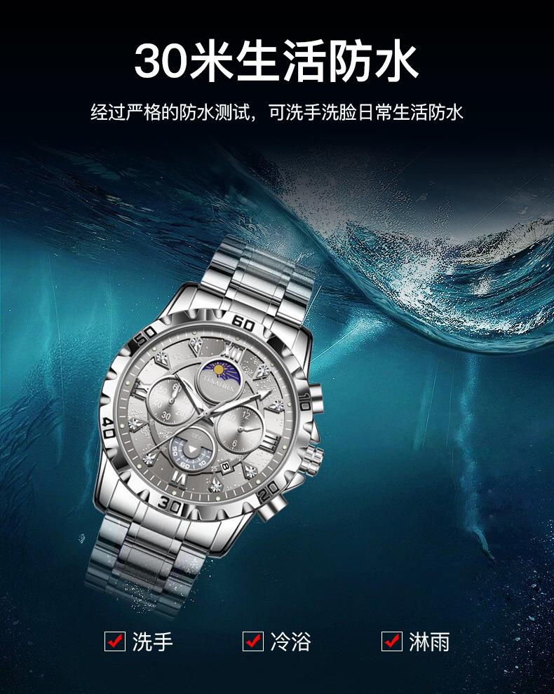Reloj de Cuarzo para Hombre Suizo Nuevo Totalmente Automático Impermeable Luminoso con Calendario Modelo Caliente Transmisión en Vivo Dropshipping
