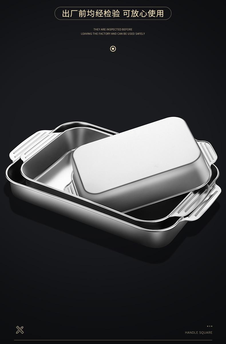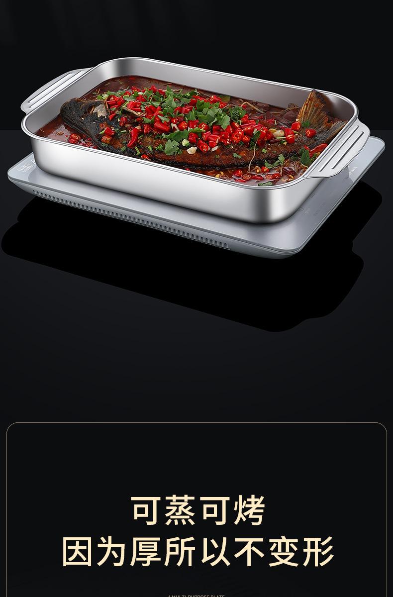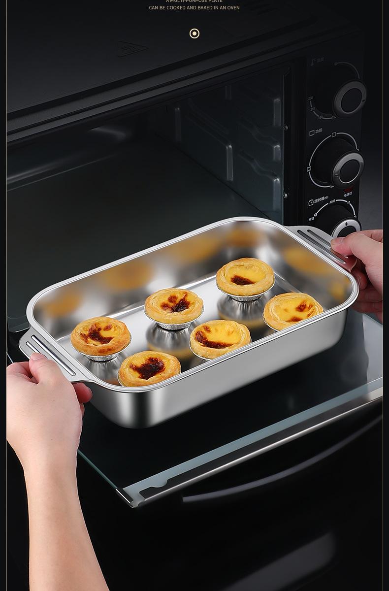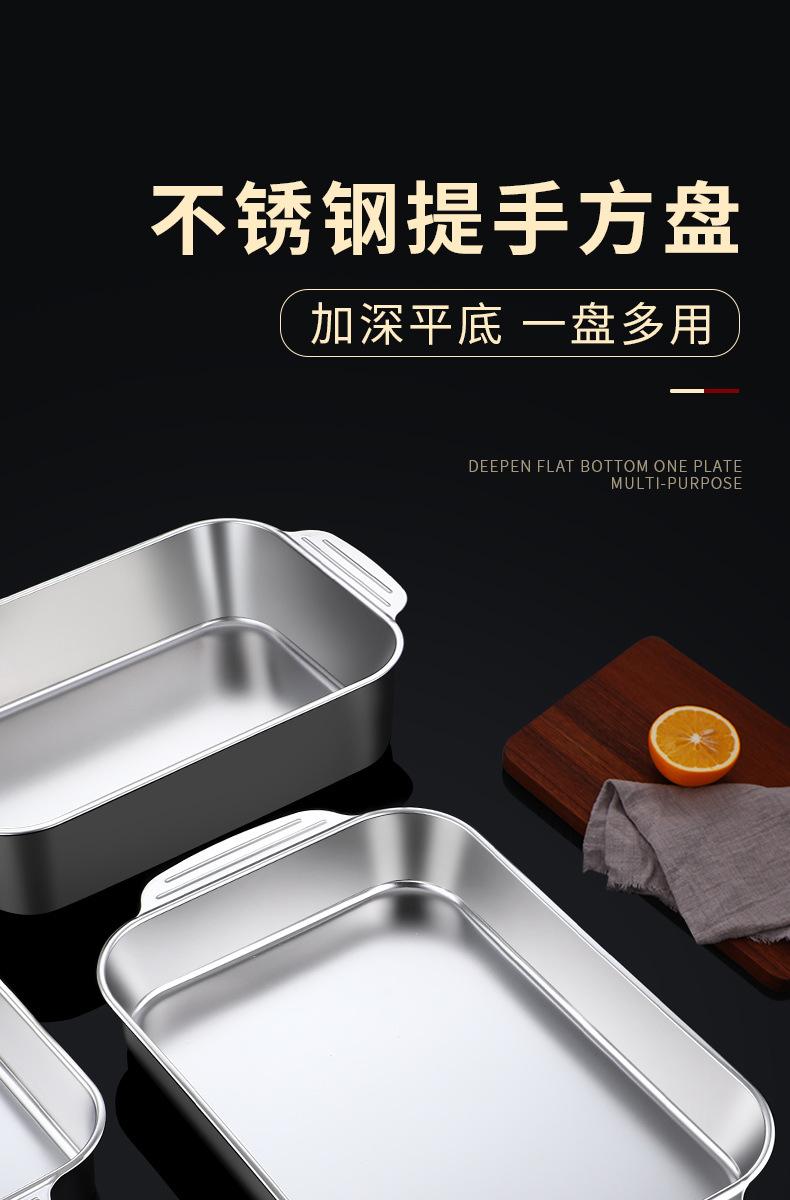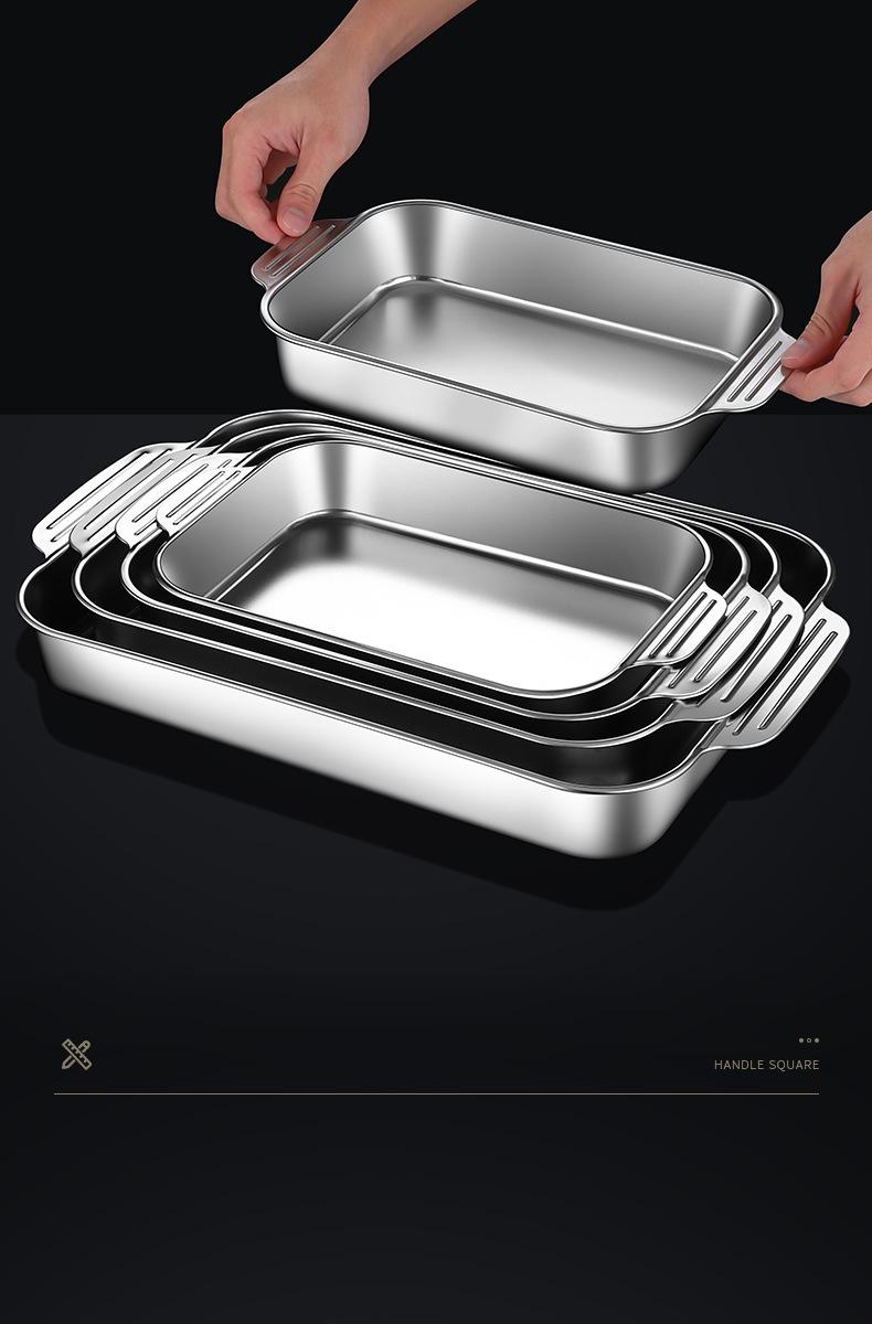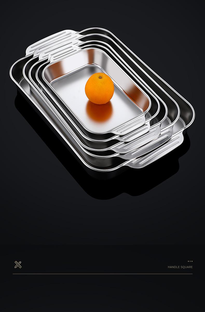 Plato de acero inoxidable rectangular, plato plano cuadrado para el hogar, plato hondo con asa, bandeja para horno, plato comercial para pescado a la parrilla grande