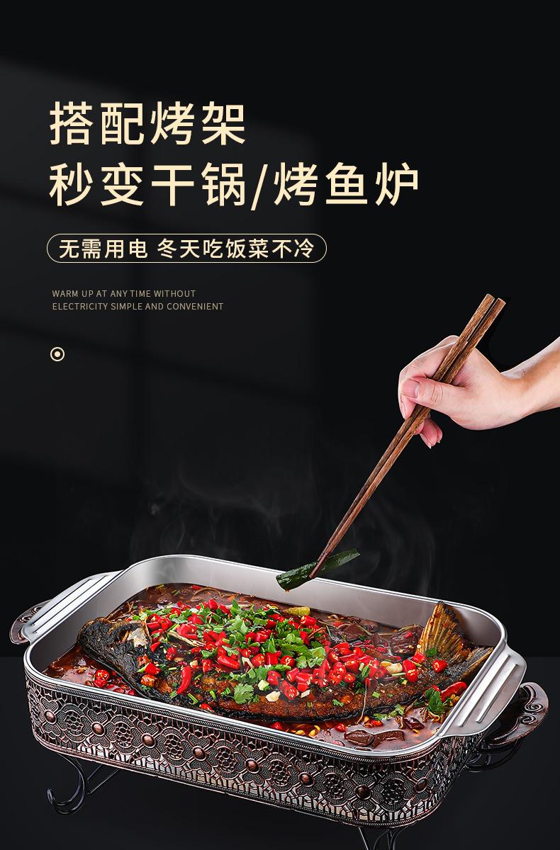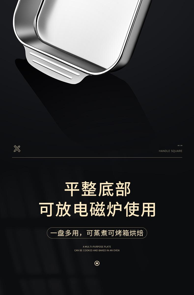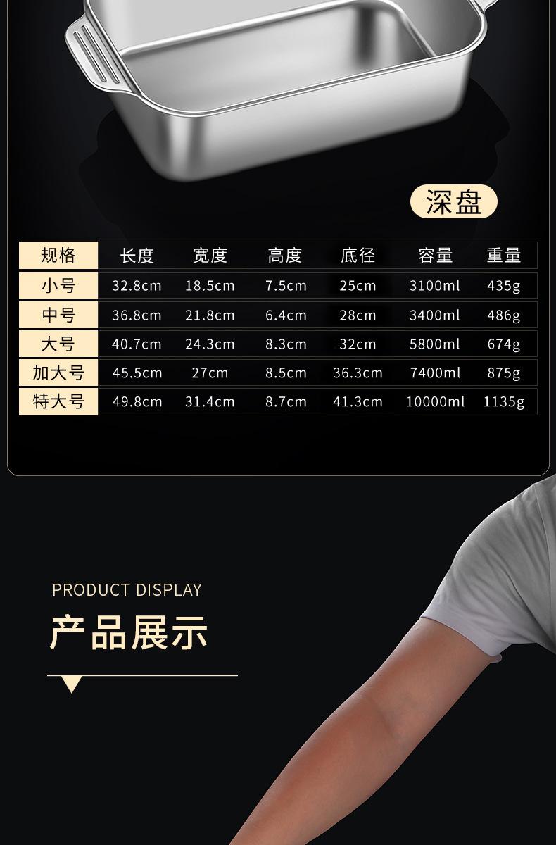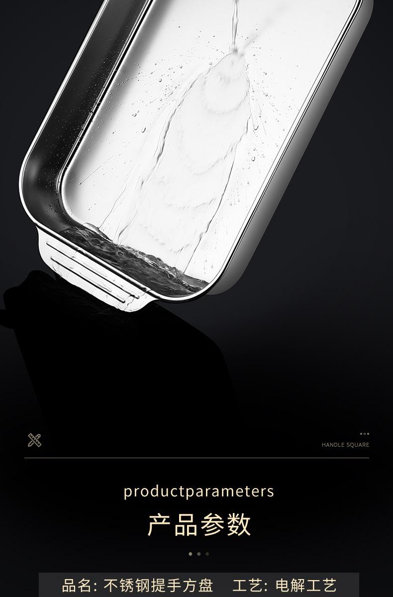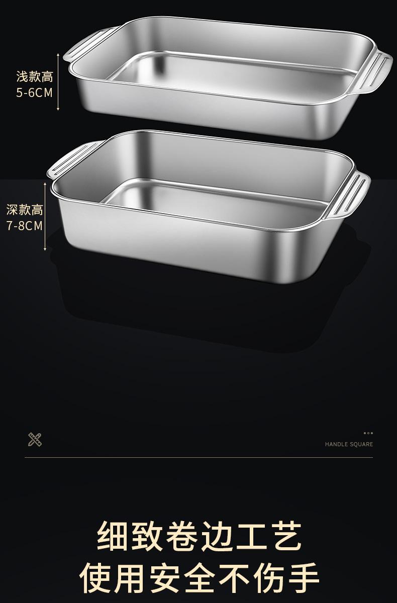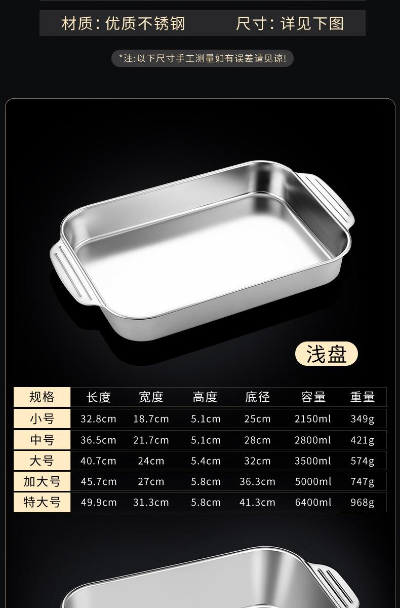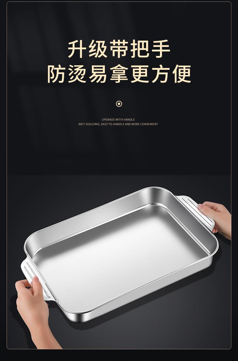 Plato de acero inoxidable rectangular, plato plano cuadrado para el hogar, plato hondo con asa, bandeja para horno, plato comercial para pescado a la parrilla grande