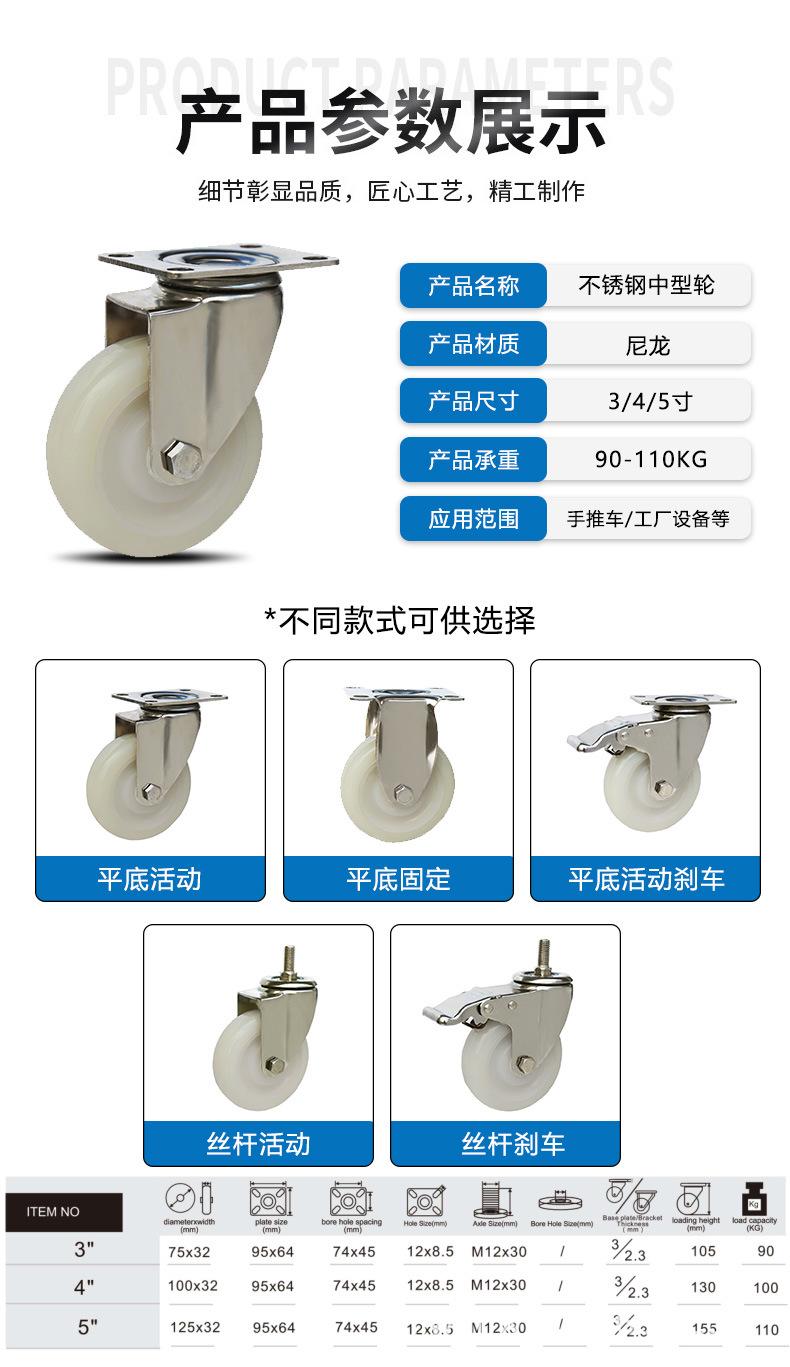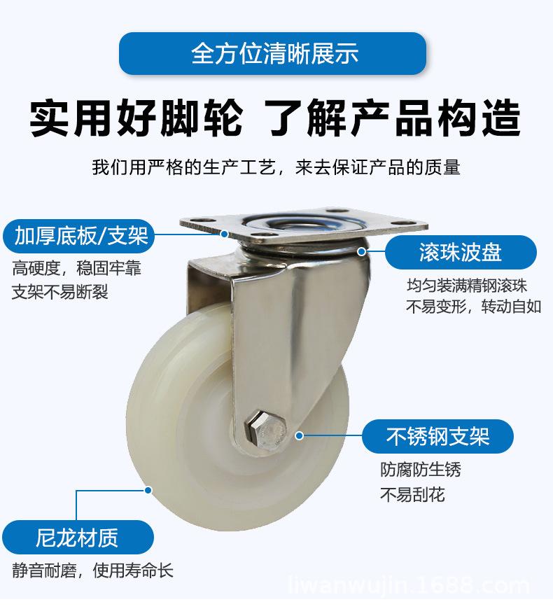 Compra Acero Inoxidable 4 pulgadas 5 pulgadas Nylon Industrial Engrosado Rueda Giratoria Freno Blanco Rodillo para Carro Rueda Universal para Muebles al por mayor en Joom.pro