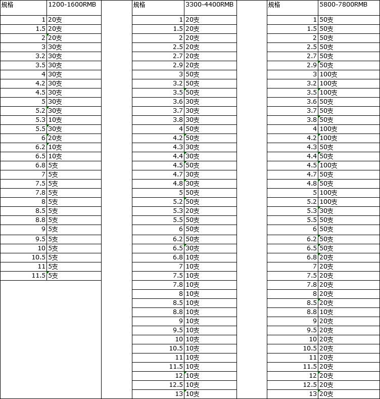 Especificaciones comúnmente vendidas de brocas helicoidales de vástago recto (incluidas las de diámetros enteros, .5, engranajes de roscado y engranajes escariadores)