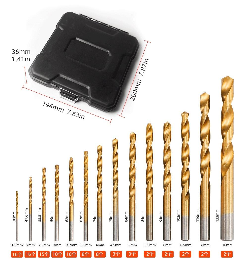 Comercio electrónico 99 piezas broca helicoidal caja de hierro juego de 99 piezas broca helicoidal recubierta de titanio abridor de agujeros