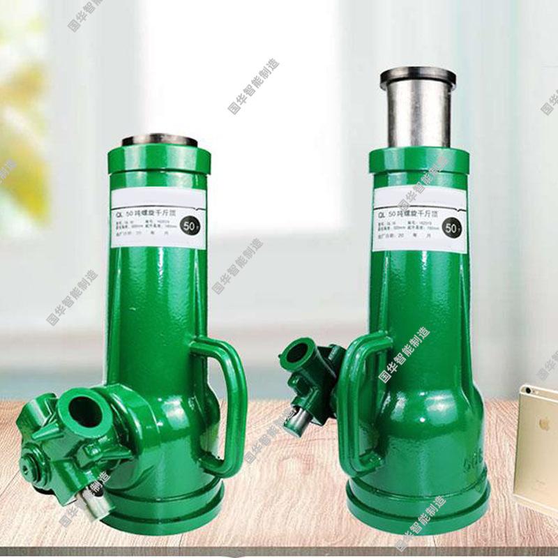 El gato de tornillo, también conocido como gato mecánico, se acciona manualmente mediante un par de tornillos, con un tornillo o casquillo de tuerca como elemento de elevación. Los gatos de tornillo convencionales se basan en el efecto autoblocante de la rosca para soportar objetos pesados. Tienen una estructura simple, pero baja eficiencia de transmisión y un retorno lento. La rosca del gato de tornillo autodescendente no tiene efecto autoblocante y está equipada con un freno. Al soltar el freno, el objeto pesado puede caer rápidamente por sí solo, acortando el tiempo de retorno, pero la estructura de este gato es más compleja. El gato de tornillo puede soportar objetos pesados durante mucho tiempo, con una capacidad máxima de elevación de 100 toneladas, y es ampliamente utilizado. Tras instalar el tornillo horizontal en la parte inferior, el objeto pesado también puede moverse horizontalmente una distancia corta.