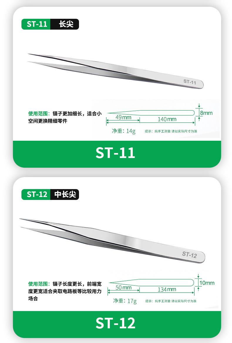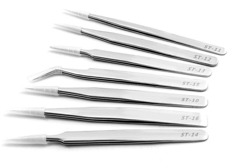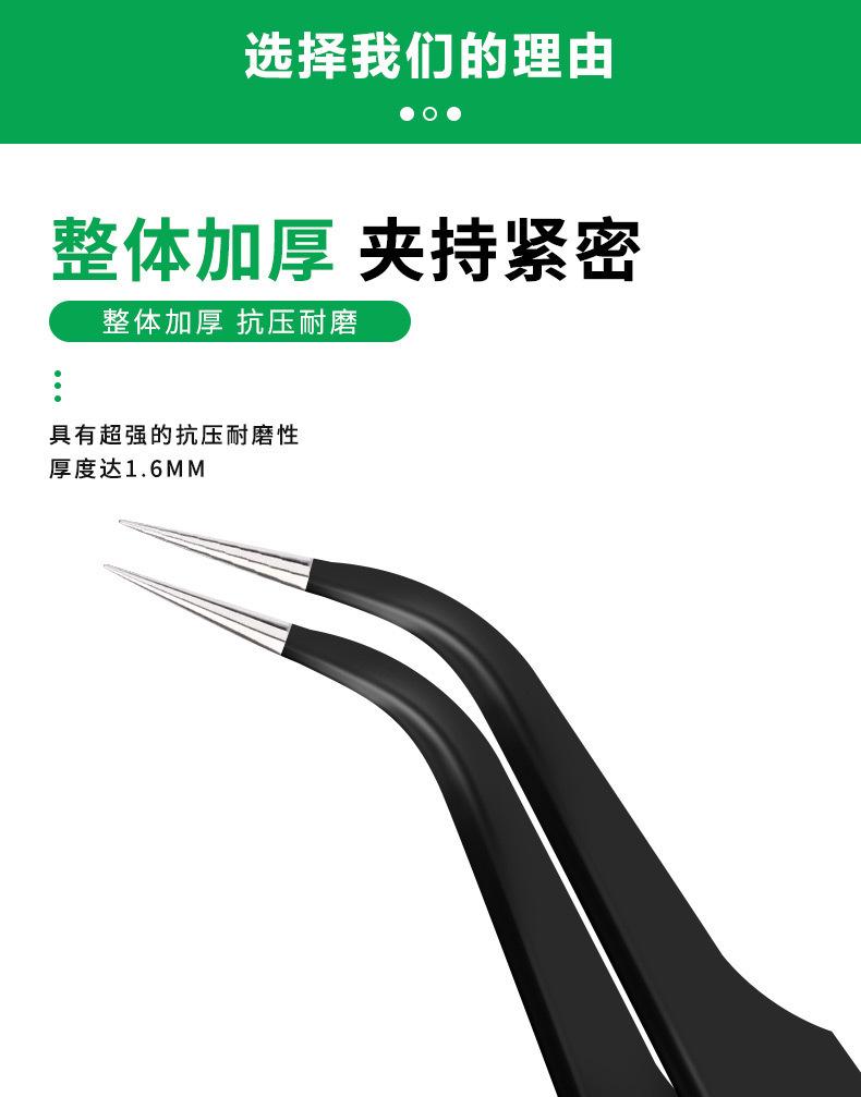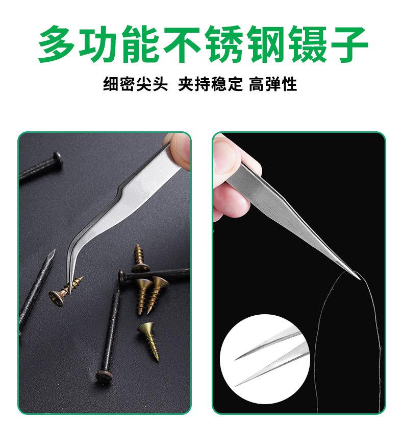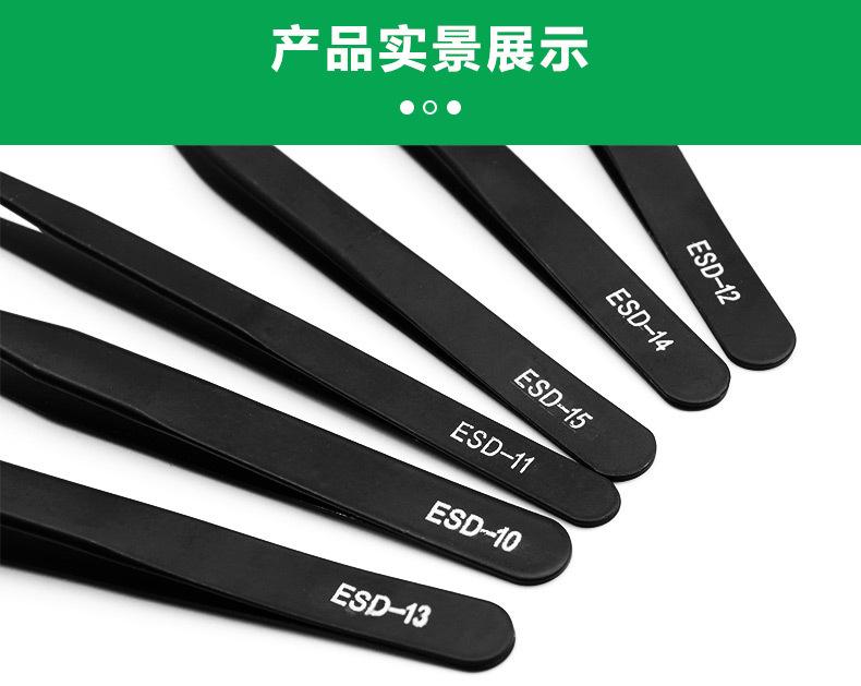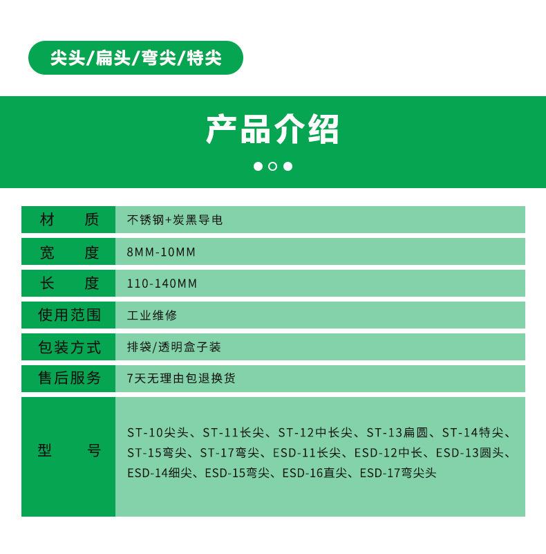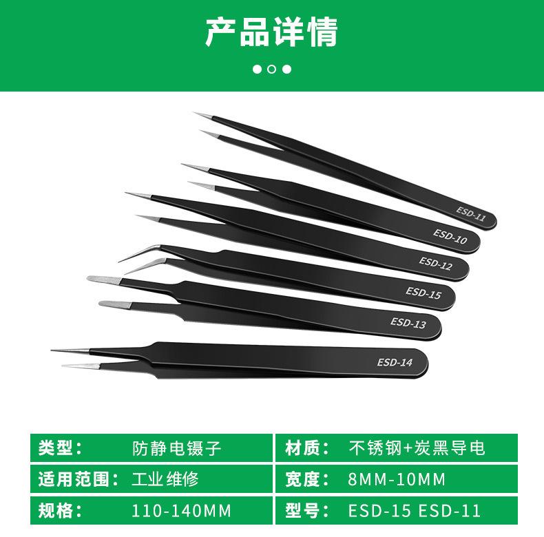Pinzas de fábrica de acero inoxidable de alta precisión para reparación de herramientas electrónicas, pinzas pequeñas industriales antiestáticas con punta fina y codo.