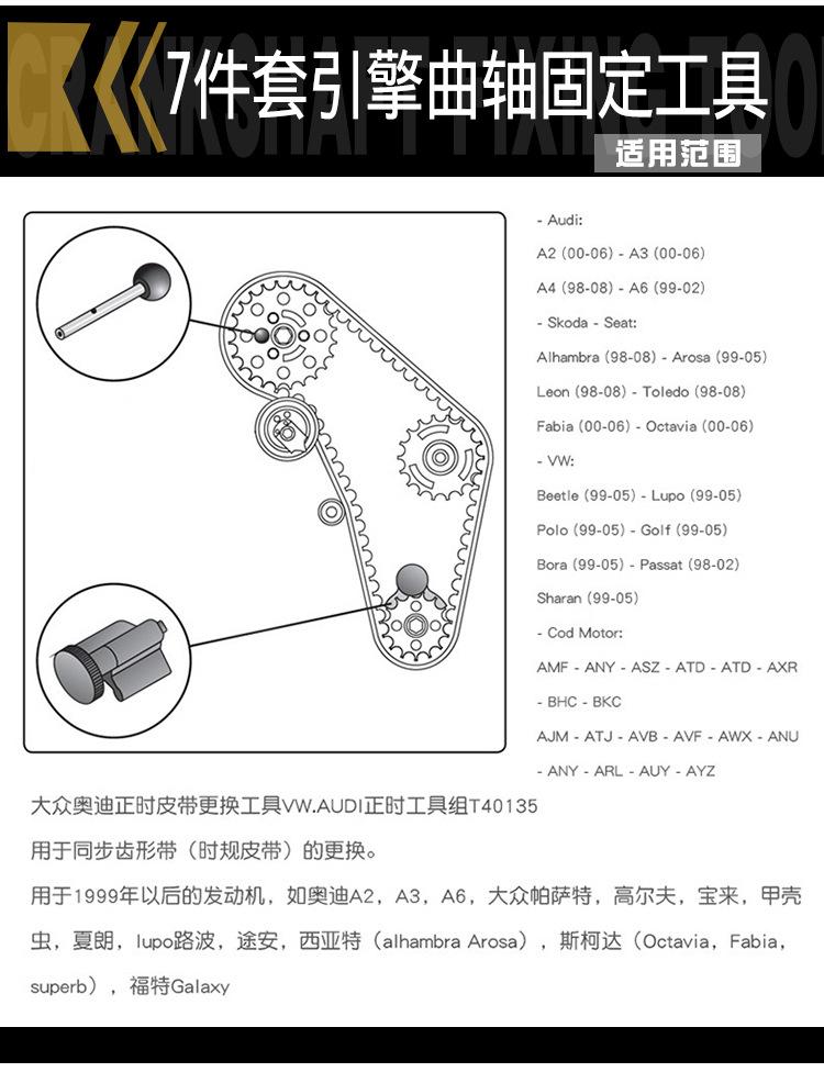 Juego de herramientas de fijación del cigüeñal del motor Volkswagen Audi herramienta de correa de distribución 1.2,1.4,1.9,2.0TDI