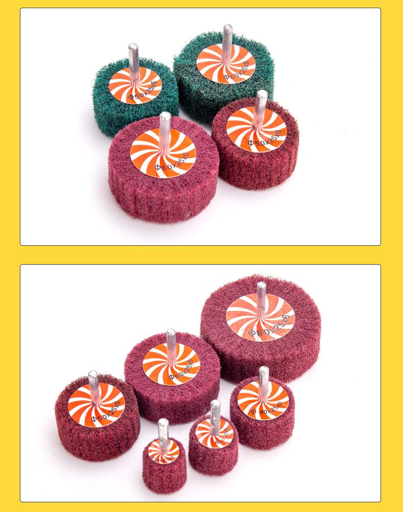 Compra Paño de limpieza con mango, rueda de página, metal, acero inoxidable, pulido, cabezal de lijado de nailon, rueda de trefilado de alambre de fibra, sin tela de esmeril, rueda de pulido al por mayor en Joom.pro