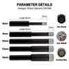 Broca Diamantada Soldada Hexagonal Grande para Azulejo, Abridor de Agujeros para Vidrio
