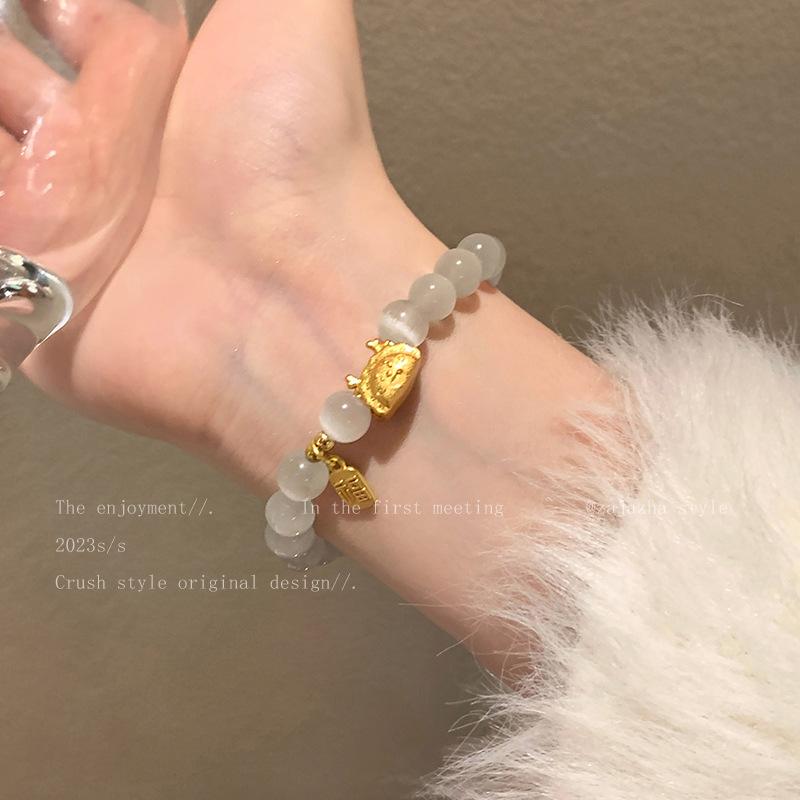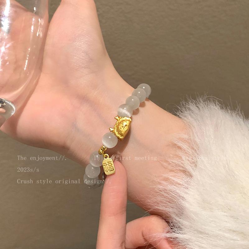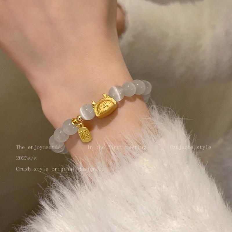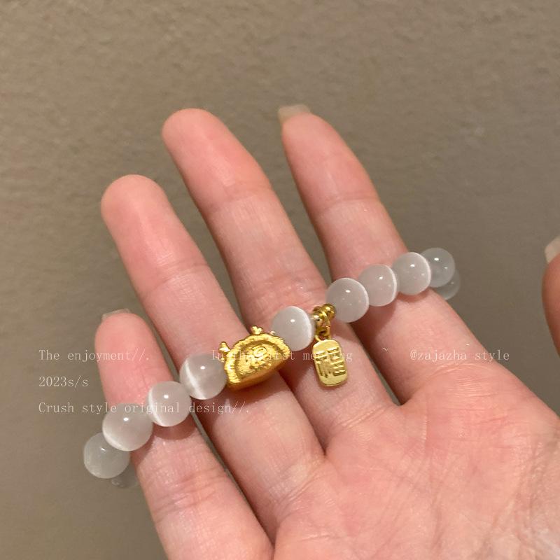 Shoushan Stone Dumpling Little Dragon People, Little Dragon Man Cat's Eye Bracelet