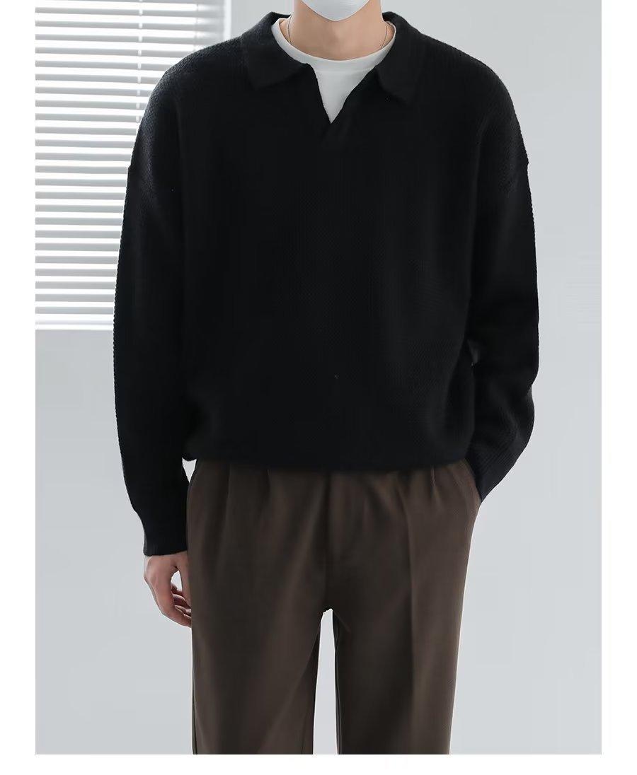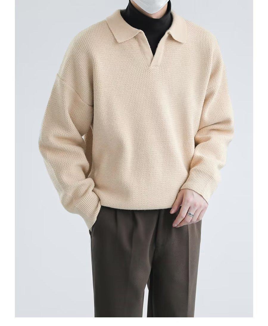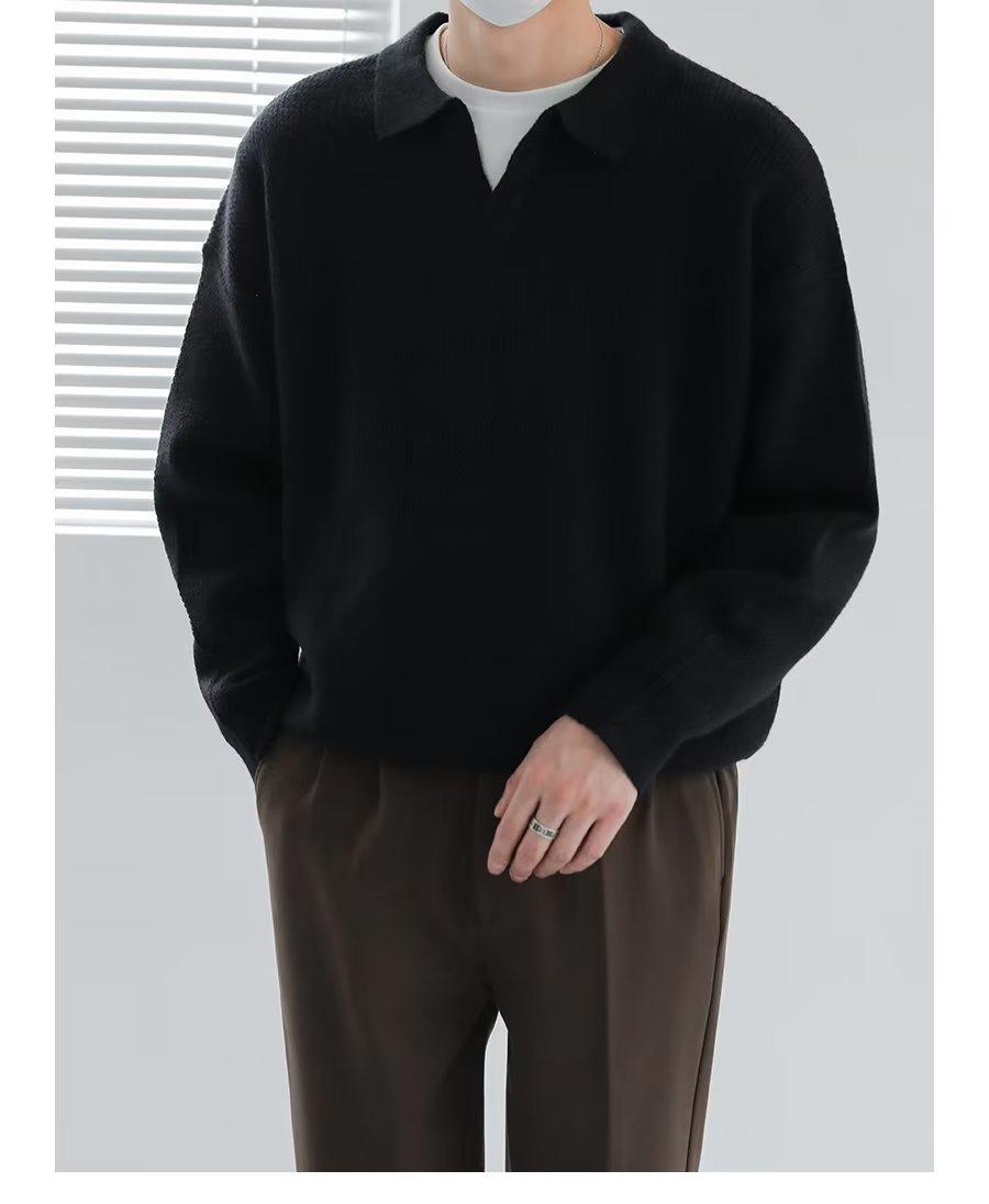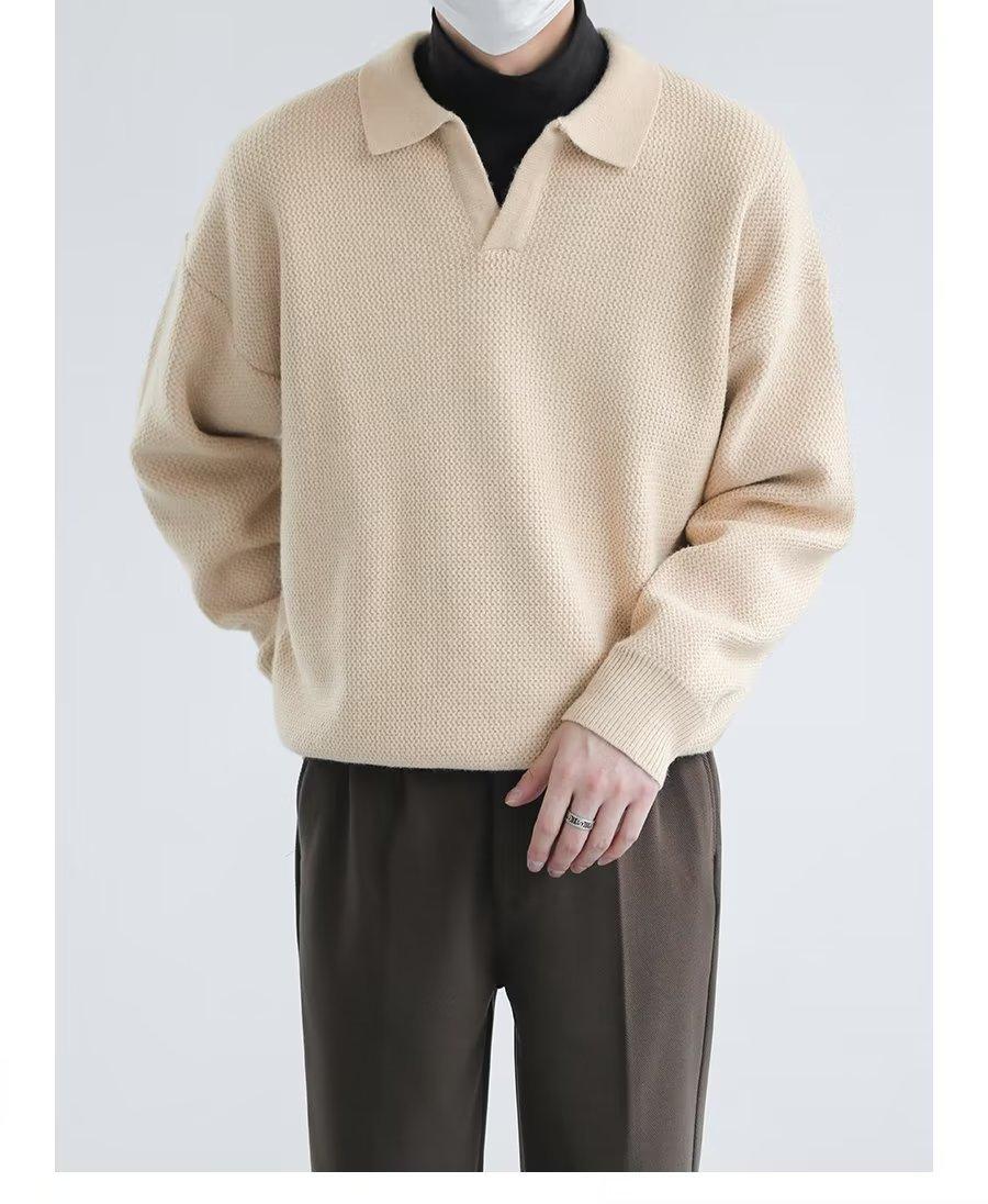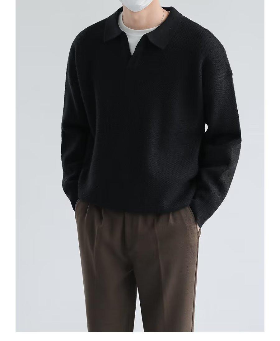Suéter de solapa suelta estilo coreano de primavera y otoño de 2023, camiseta interior de manga larga para hombre, suéter de moda