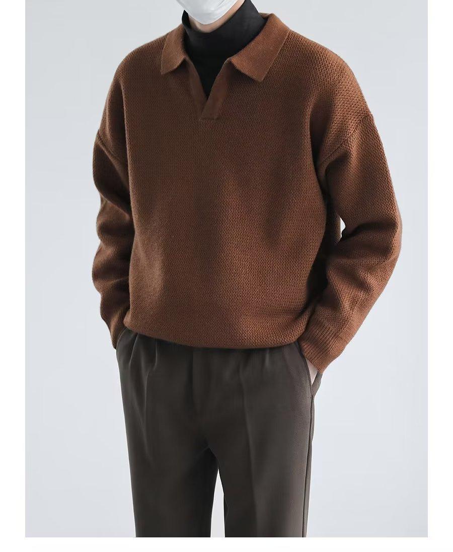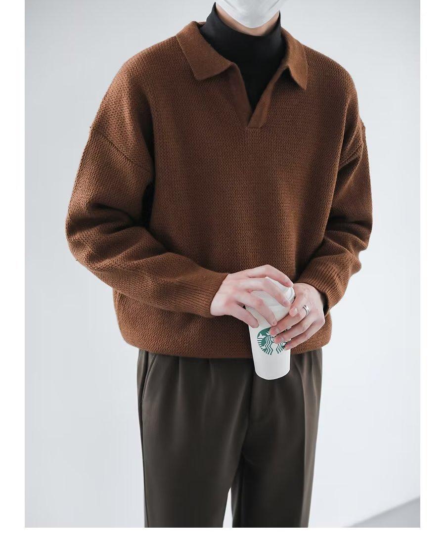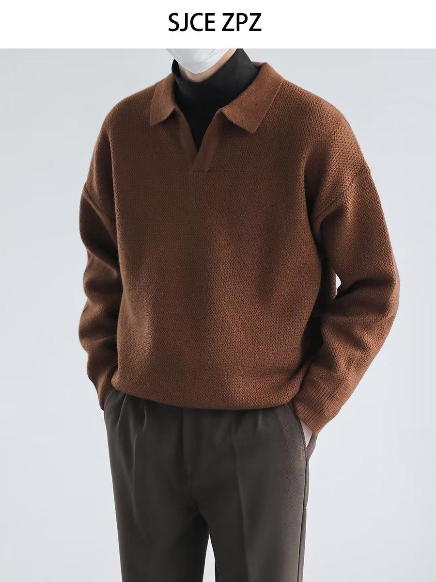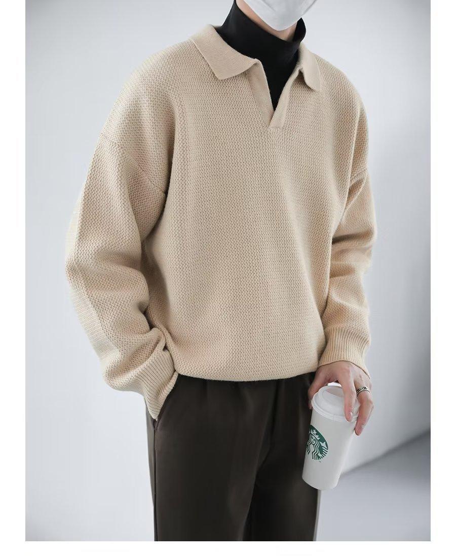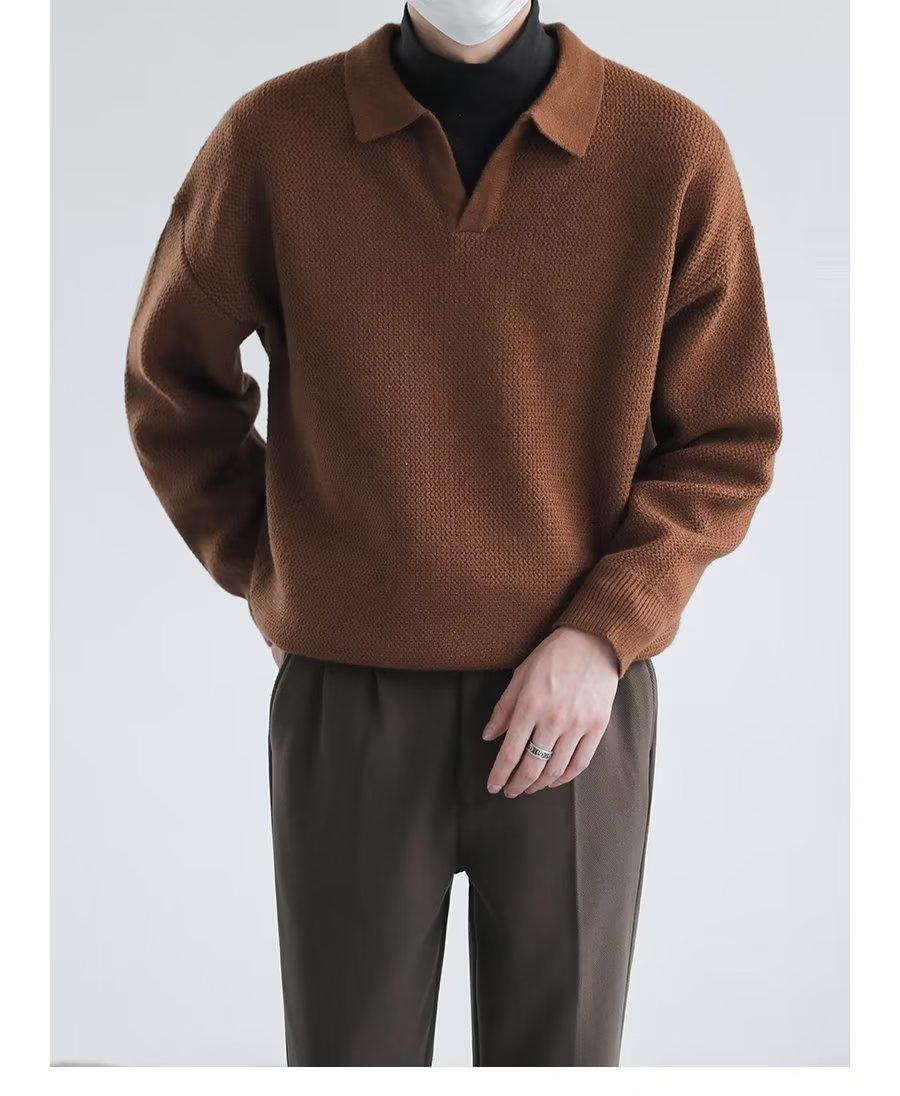 Suéter de solapa suelta estilo coreano de primavera y otoño de 2023, camiseta interior de manga larga para hombre, suéter de moda