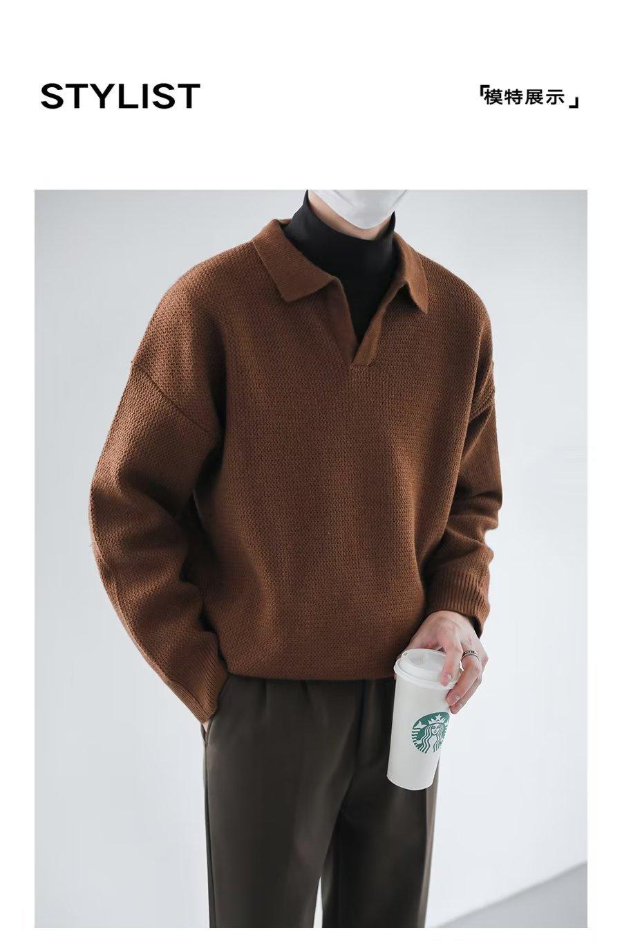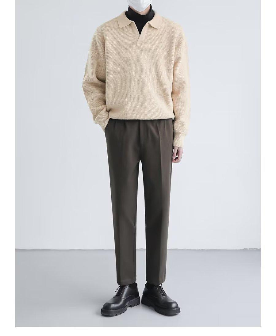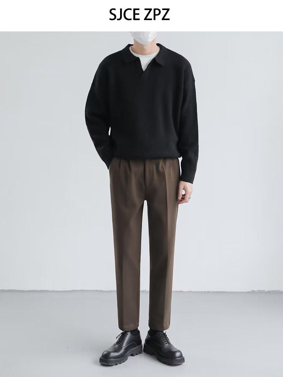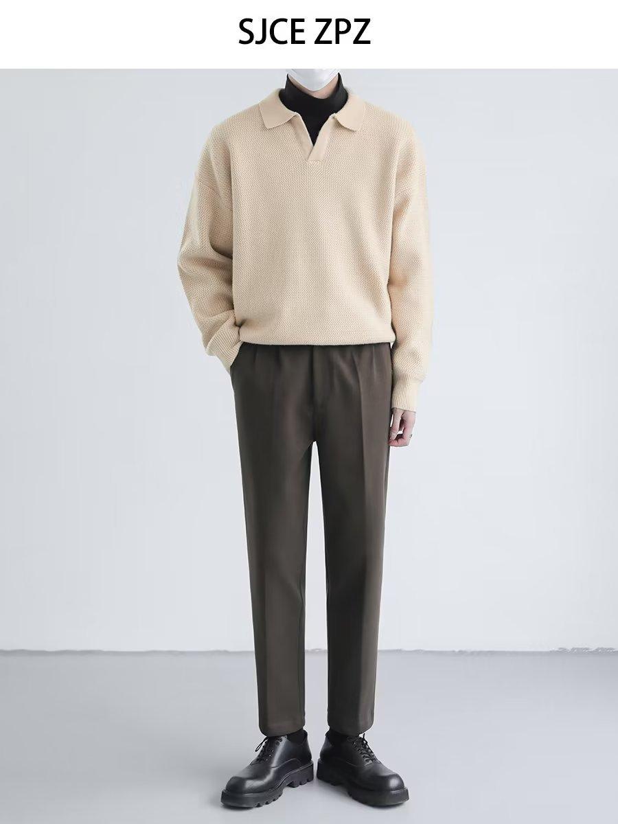 Suéter de solapa suelta estilo coreano de primavera y otoño de 2023, camiseta interior de manga larga para hombre, suéter de moda