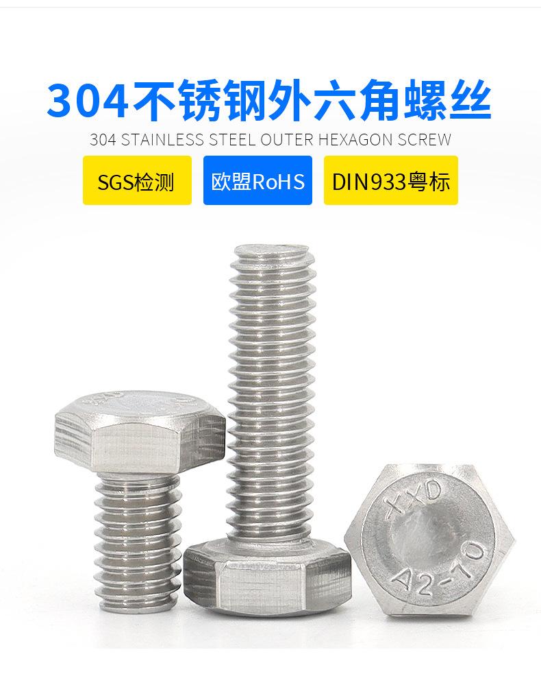 Tornillo de cabeza hexagonal exterior de acero inoxidable 304 en pulgadas ANSI/ASME B18.2.1, tornillo de perno de cabeza hexagonal n.° 10