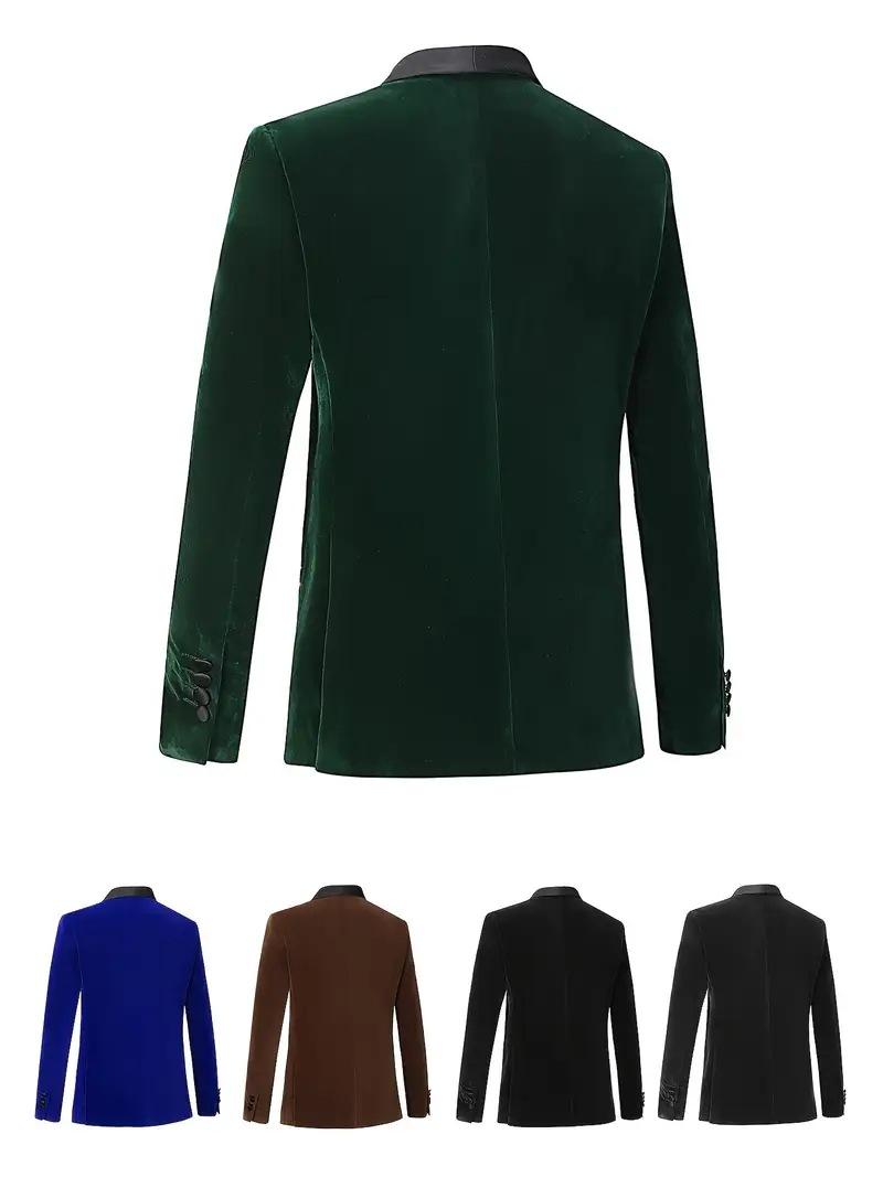 Elegante traje de terciopelo con cuello chal para hombre, estilo europeo y americano, para boda, graduación y un solo botón.