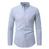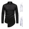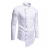 Camisa informal de manga larga con cuello alto irregular para hombre, estilo británico, juvenil, de color liso, sencilla y ajustada.