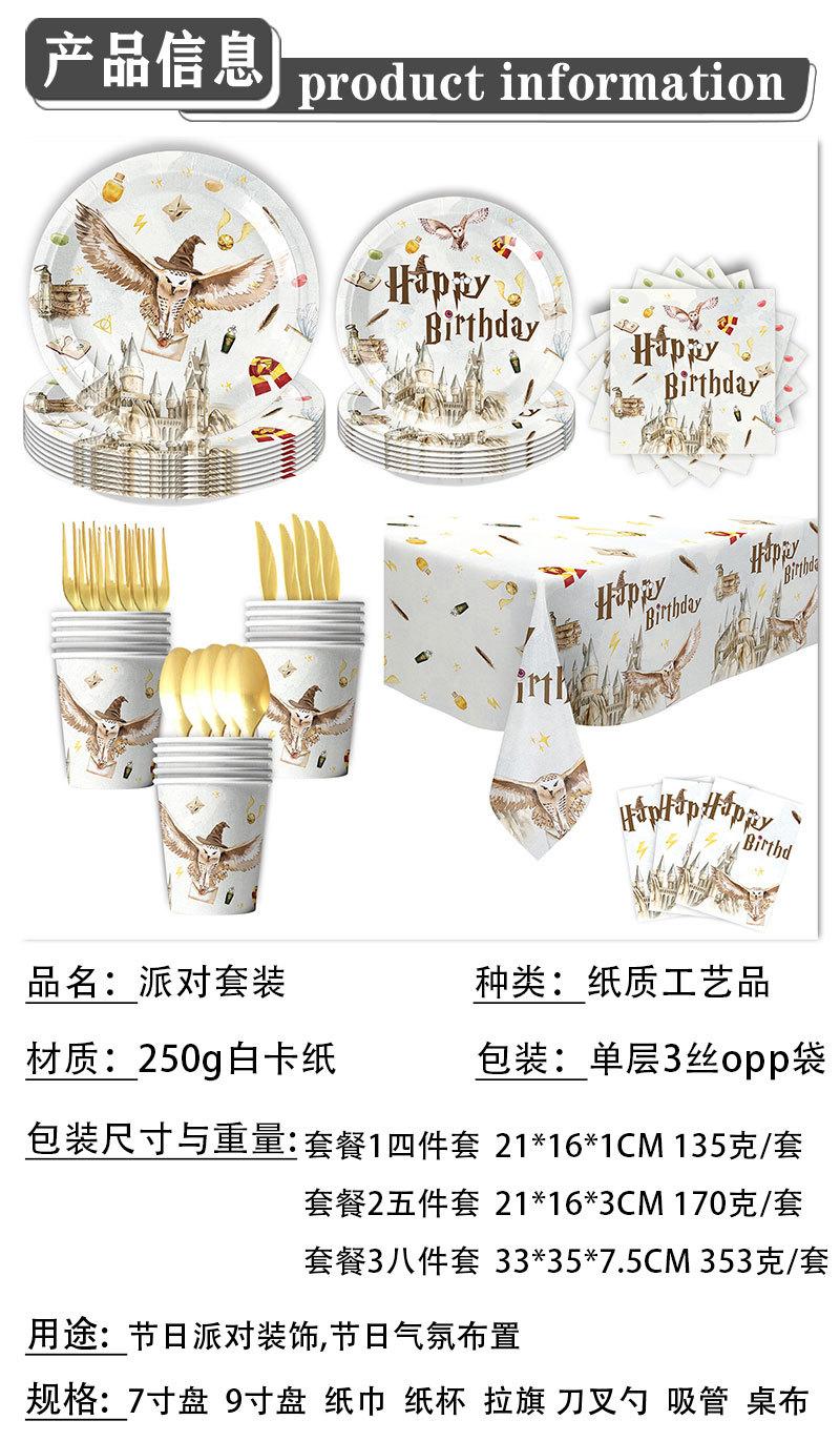 Nuevos Suministros para Fiesta Temática Mundo Mágico de Harry Potter Vajilla Decoración para Pastel Plato de Papel Vaso de Papel Traje de Servilletas