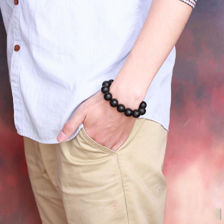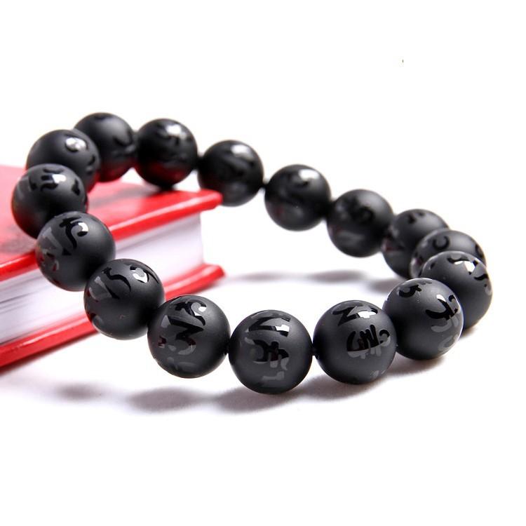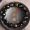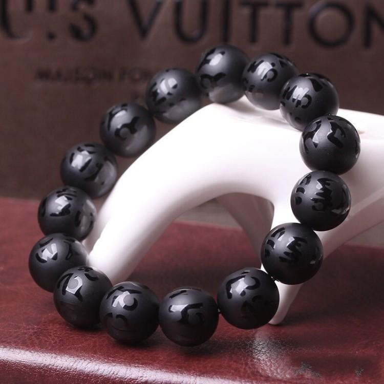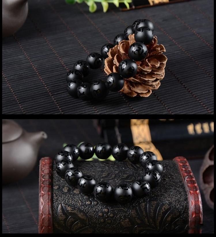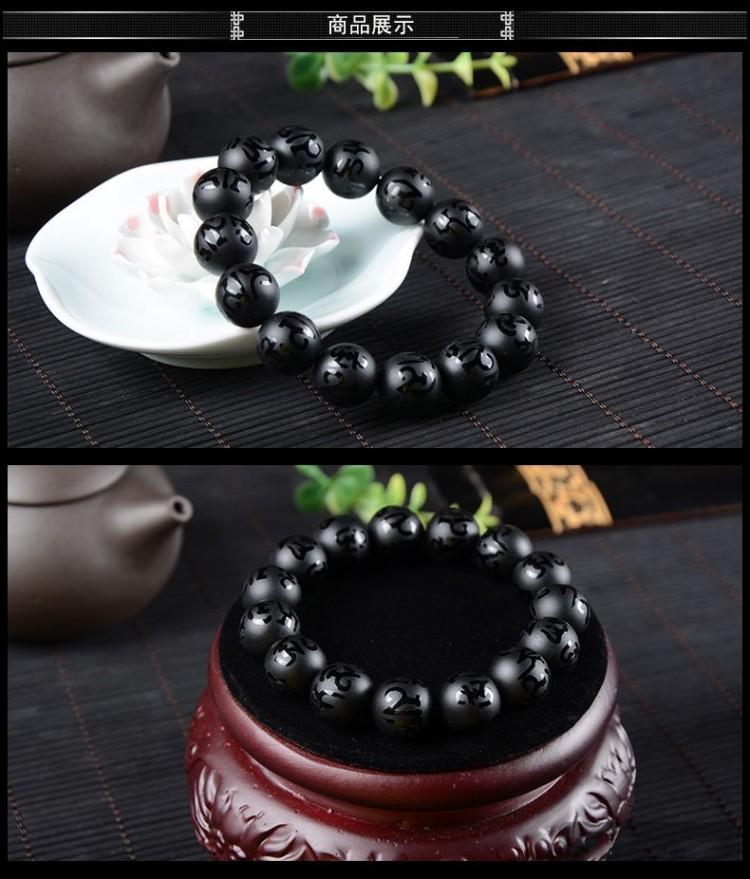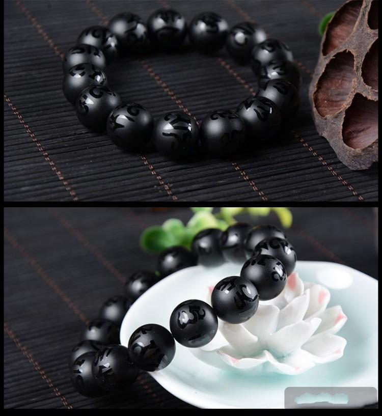 Venta al por mayor de fábrica pulsera de obsidiana natural para hombre y mujer pulsera de cuentas de Buda con mantra de seis sílabas esmerilada joyería