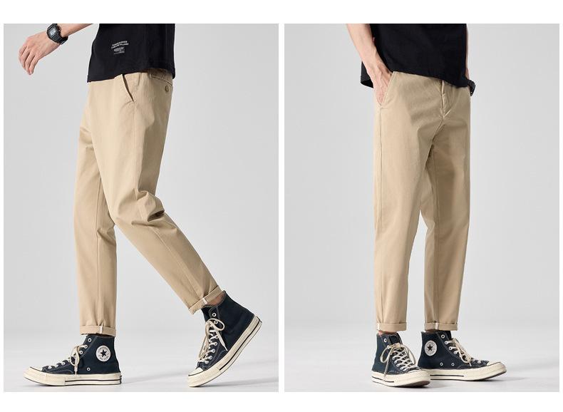Pantalones casuales de algodón puro para hombre, primavera y verano, nuevos pantalones cortos rectos ajustados, elásticos, casuales, combinables, color blanco arroz para hombre.
