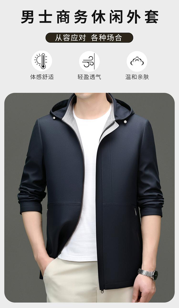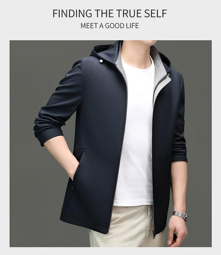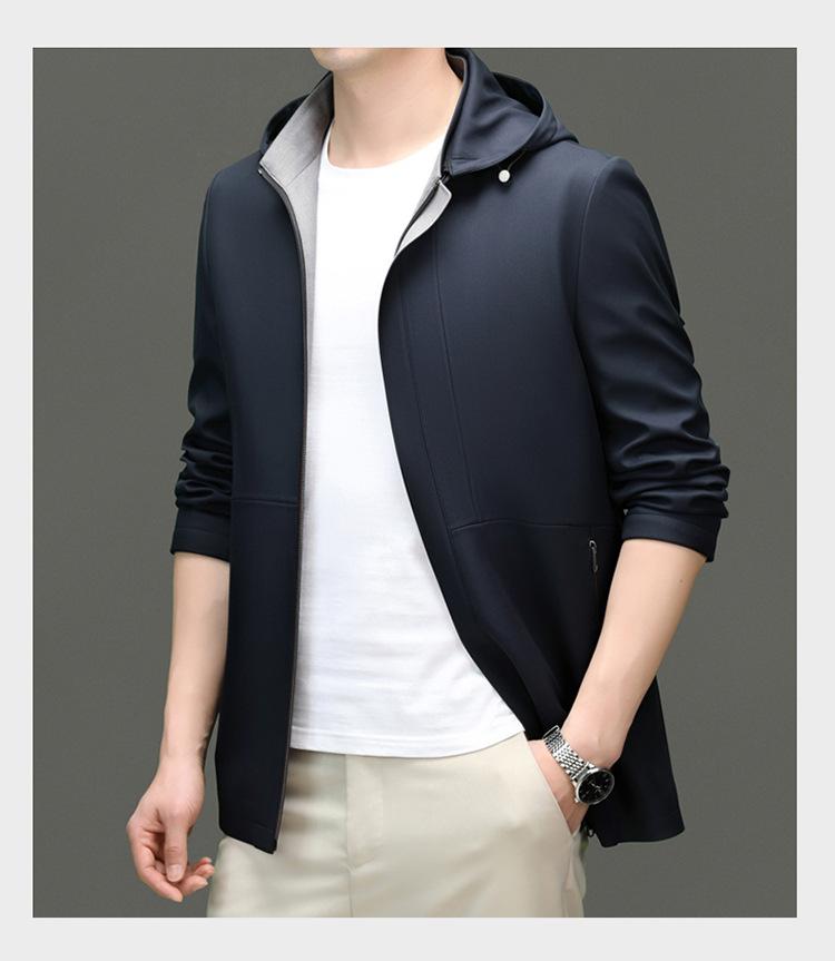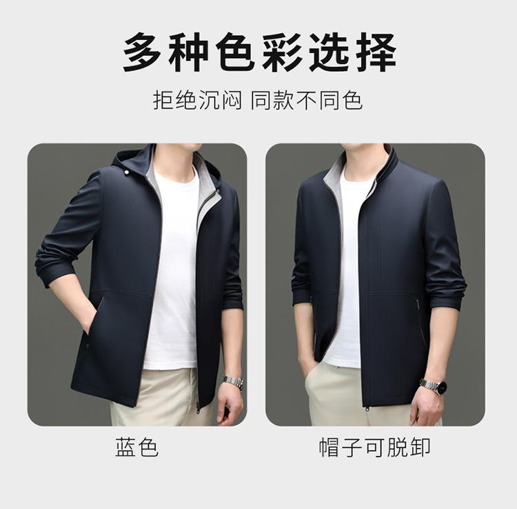 Chaqueta Abrigo con Capucha Nuevo Mediados de Año 2024 Otoño Chaqueta para Hombre Business Casual Chaqueta Top de Seda de Morera