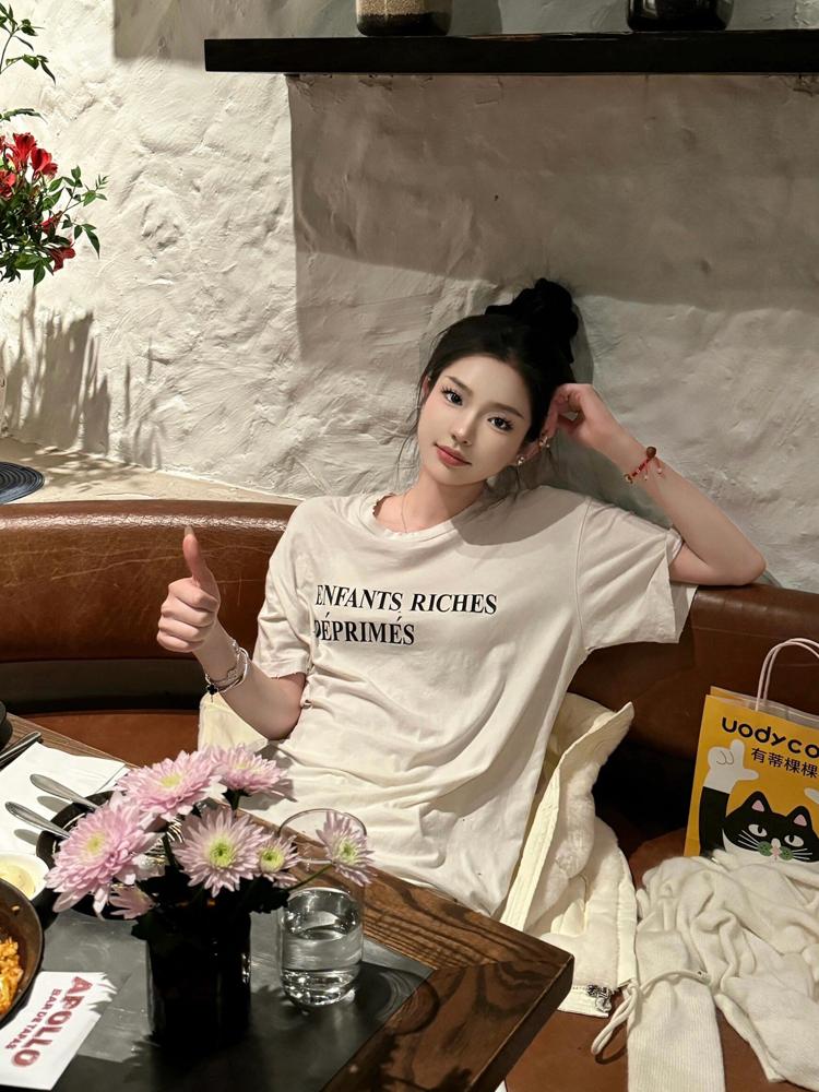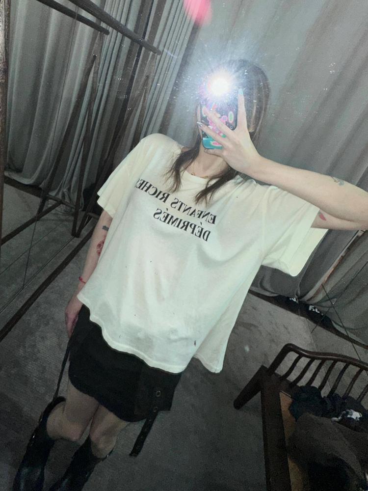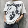 Camiseta de manga corta holgada, estilo retro, lavada, vintage, estilo ERD, melancólico, de segunda generación, con eslogan clásico, para hombre y mujer.