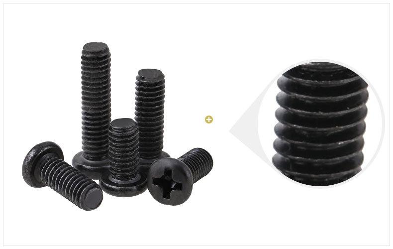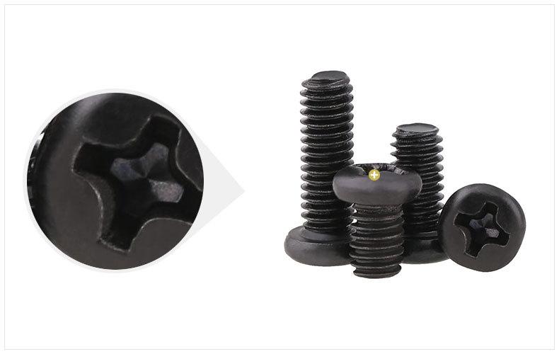 Tornillo de cabeza redonda negra PM1.7-M4 de fábrica tornillo de cabeza plana Phillips tornillo electrónico tornillo pequeño