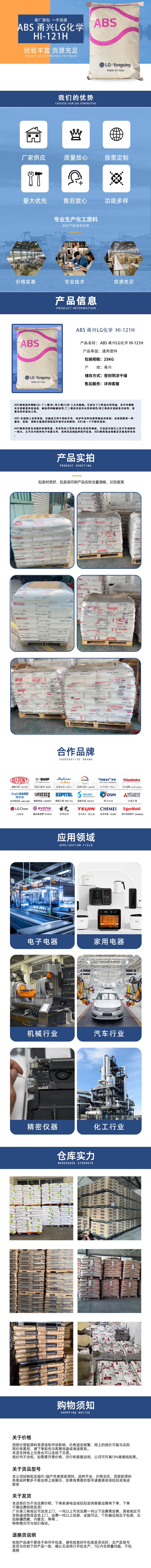 ABS Yongxing LG Chemical HI-121H resistente a impactos, alto brillo, para electrodomésticos, juguetes, piezas de automóviles, alta rigidez, grado de moldeo por inyección