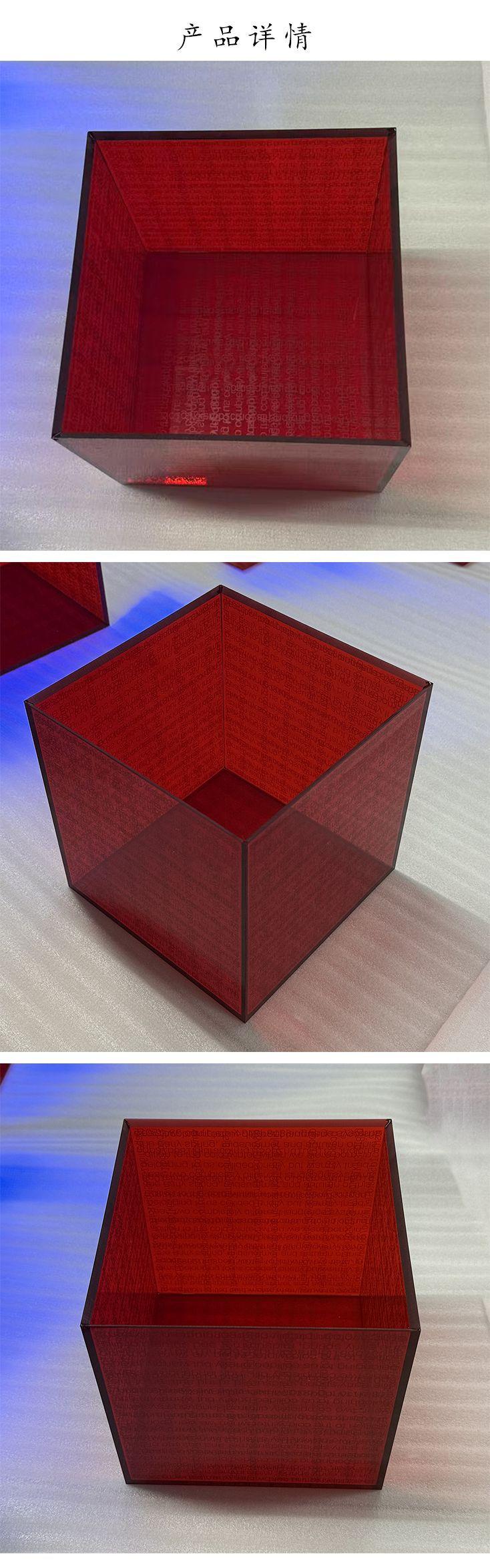 Caja de acrílico impresa en rojo, caja de almacenamiento manual de alta calidad, caja de exhibición cuadrada con logotipo serigrafiado, resistente a rayones y al desgaste.