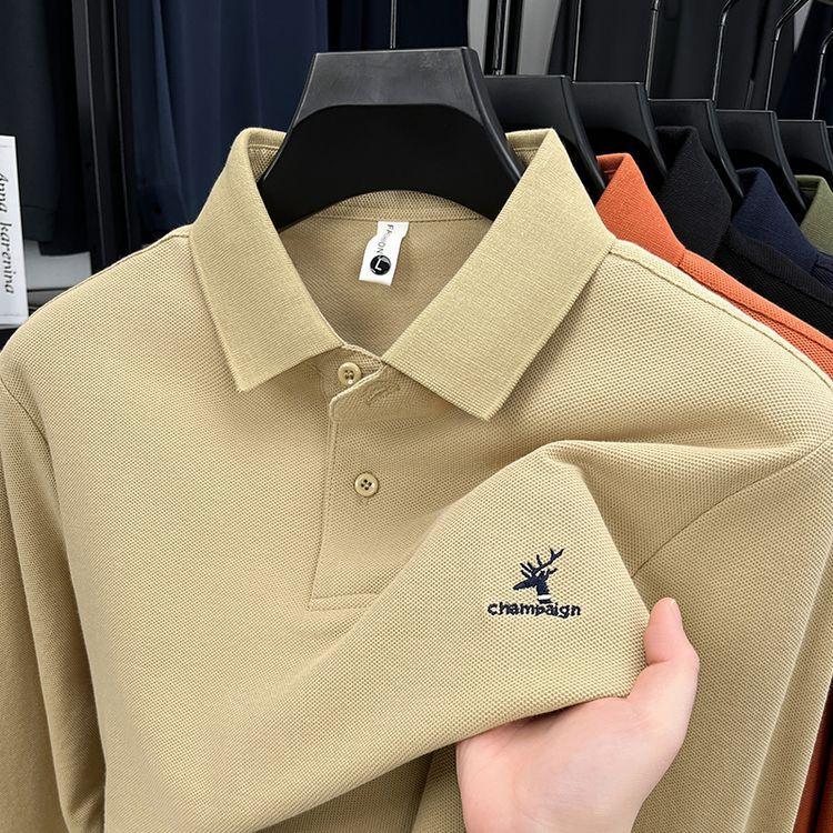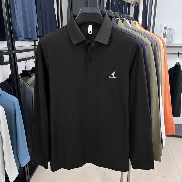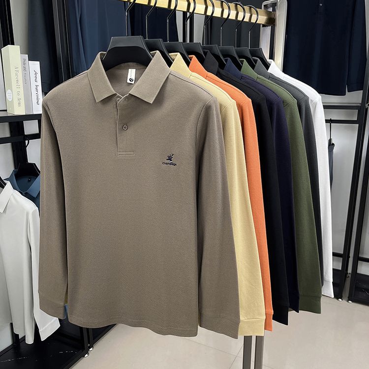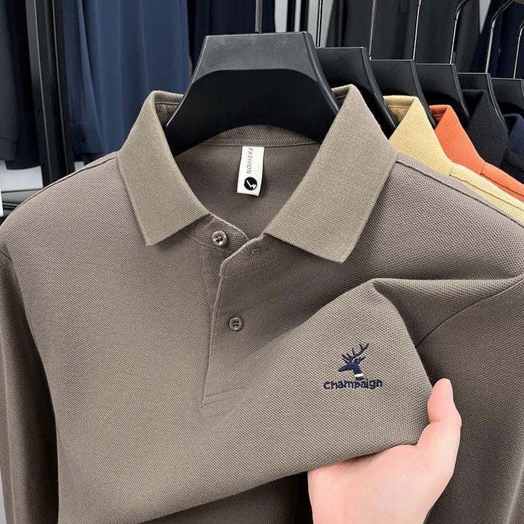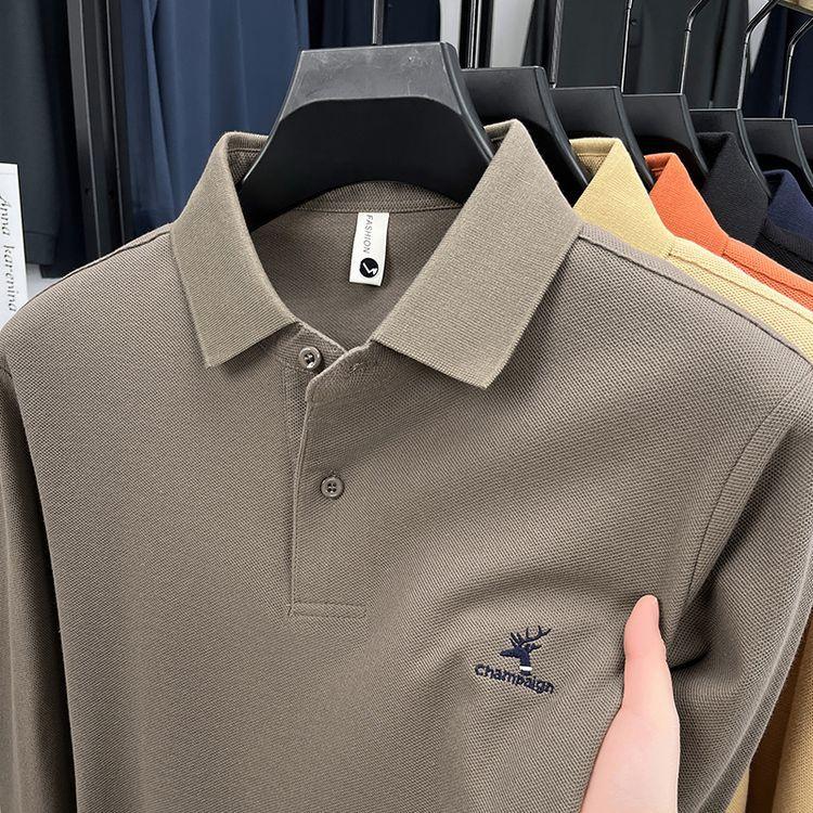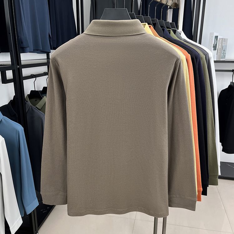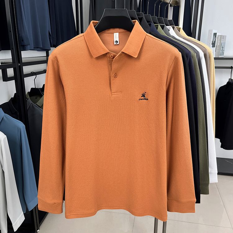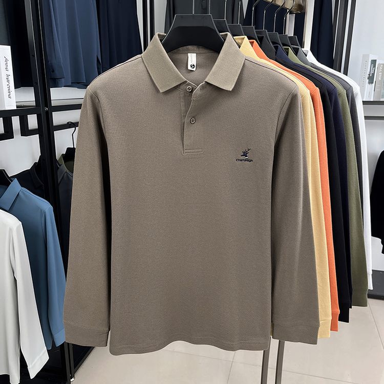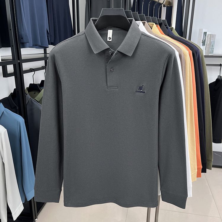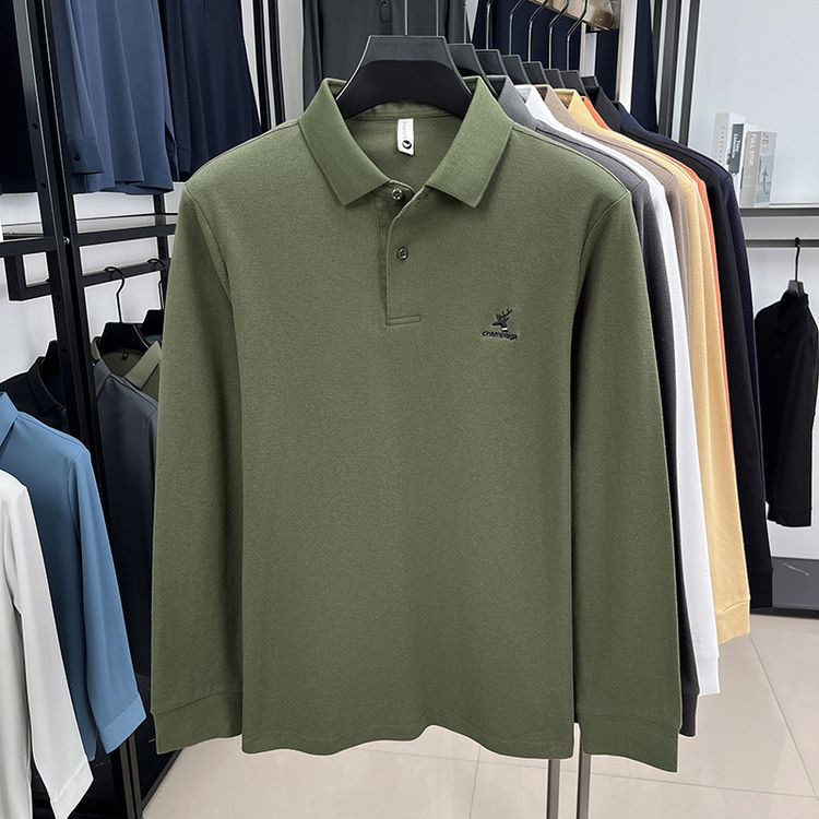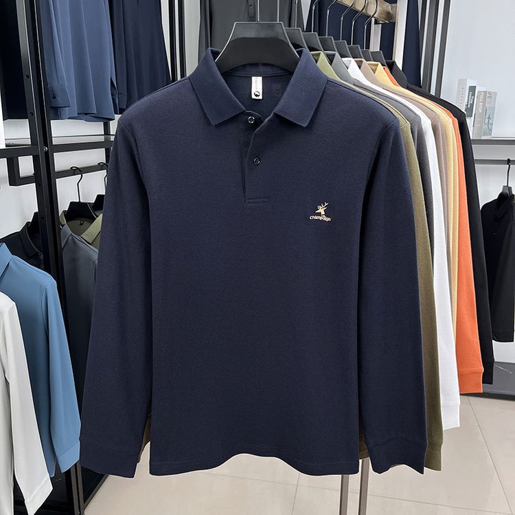 Polo de algodón con solapa para hombre, camiseta informal de negocios de mediana edad, bordada, de manga larga, primavera y otoño de 2025