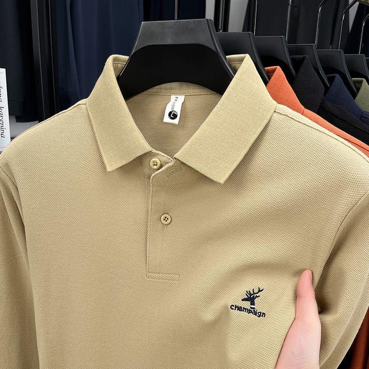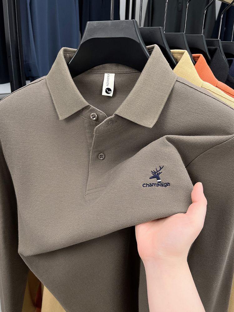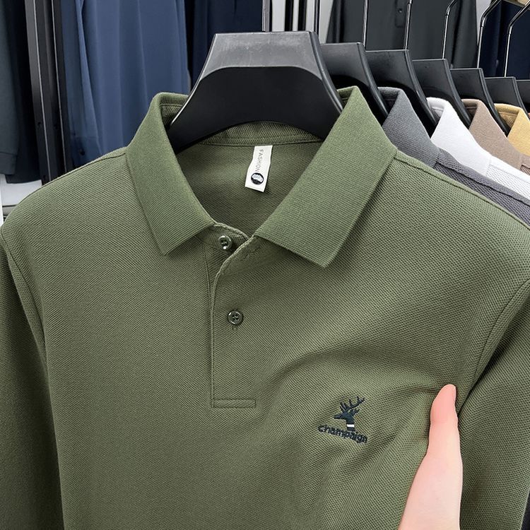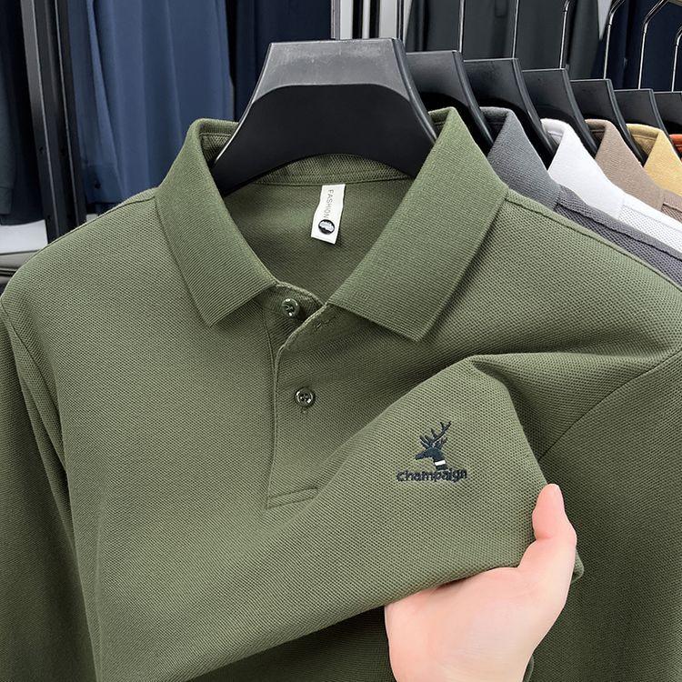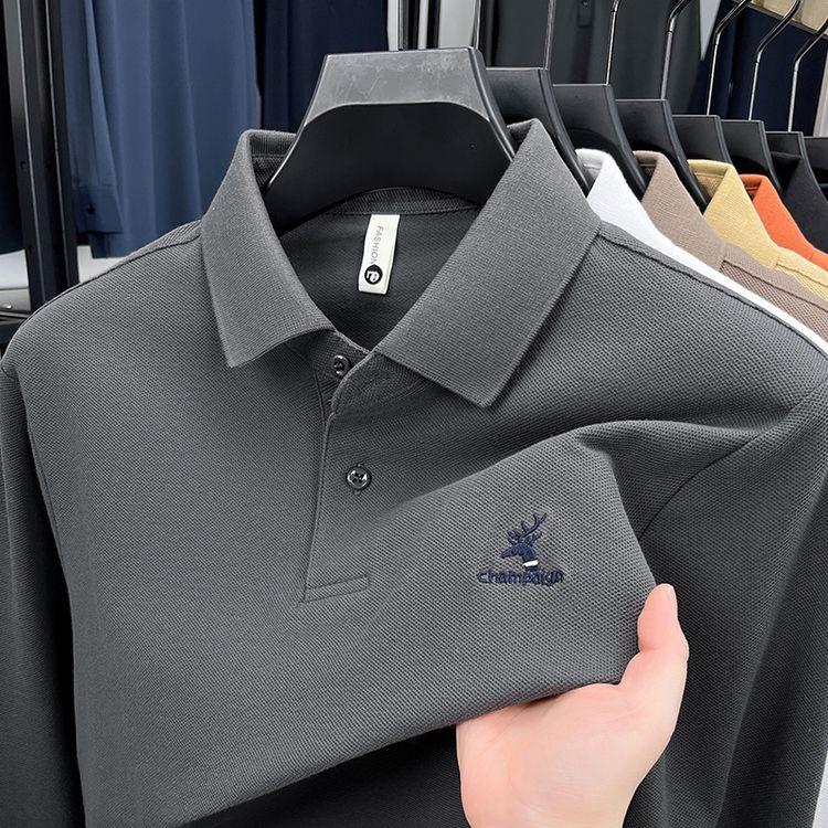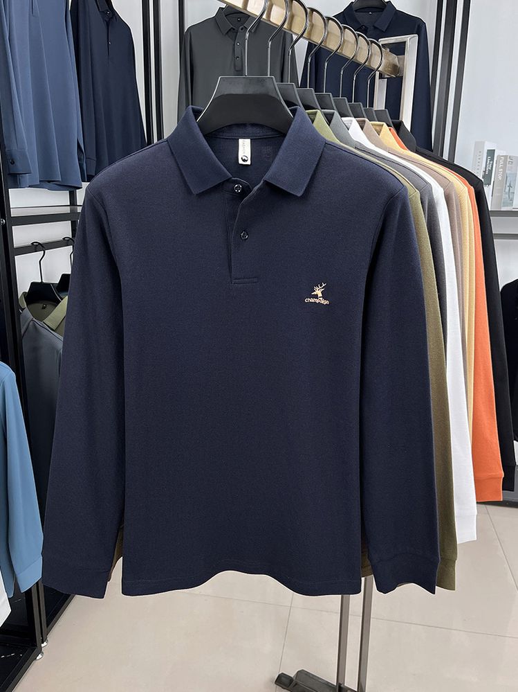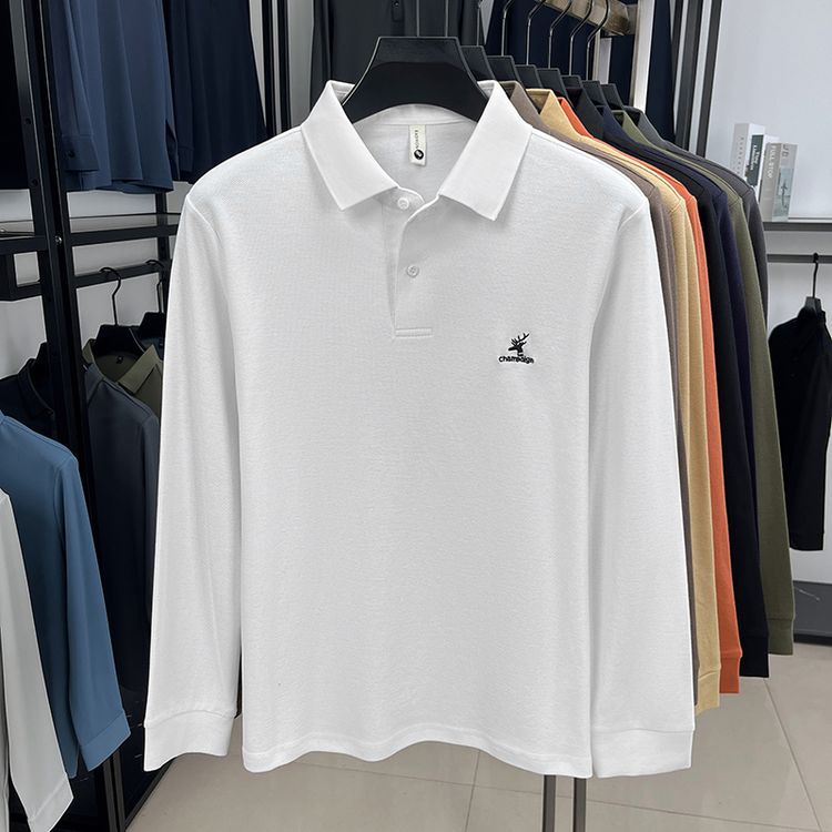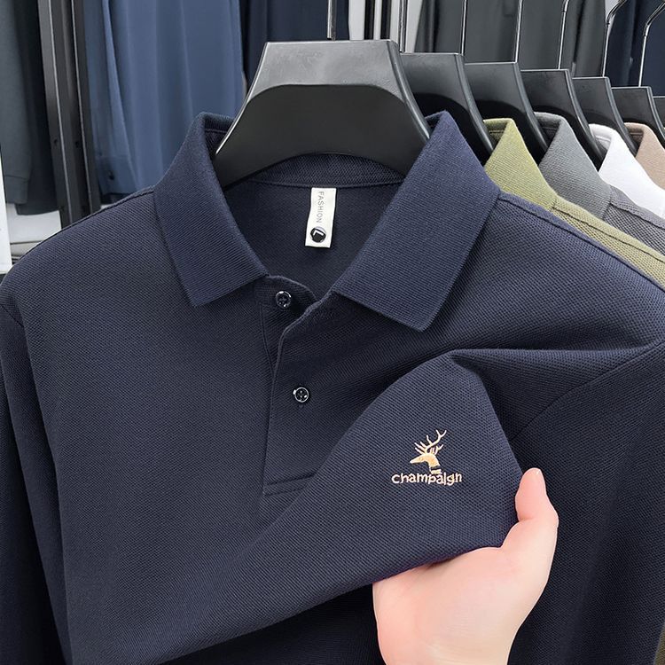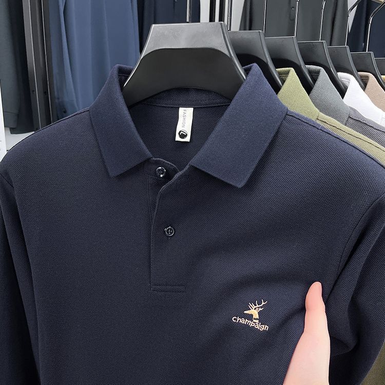 Polo de algodón con solapa para hombre, camiseta informal de negocios de mediana edad, bordada, de manga larga, primavera y otoño de 2025