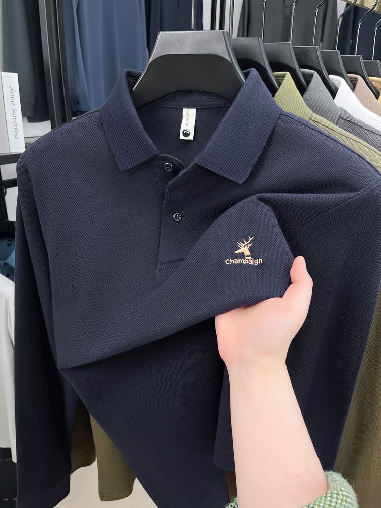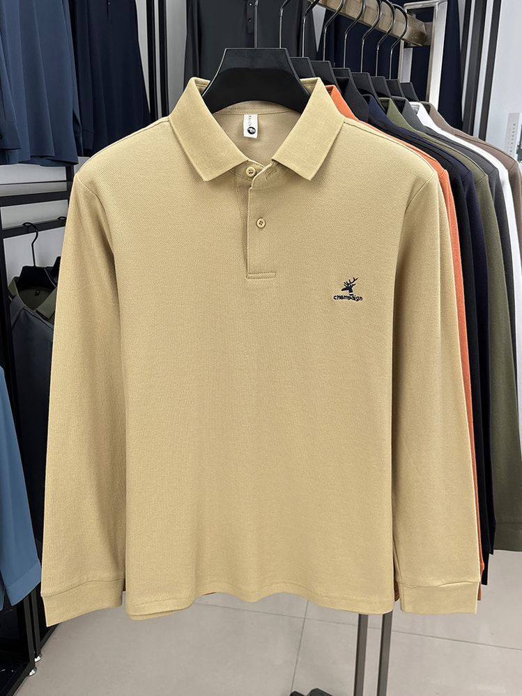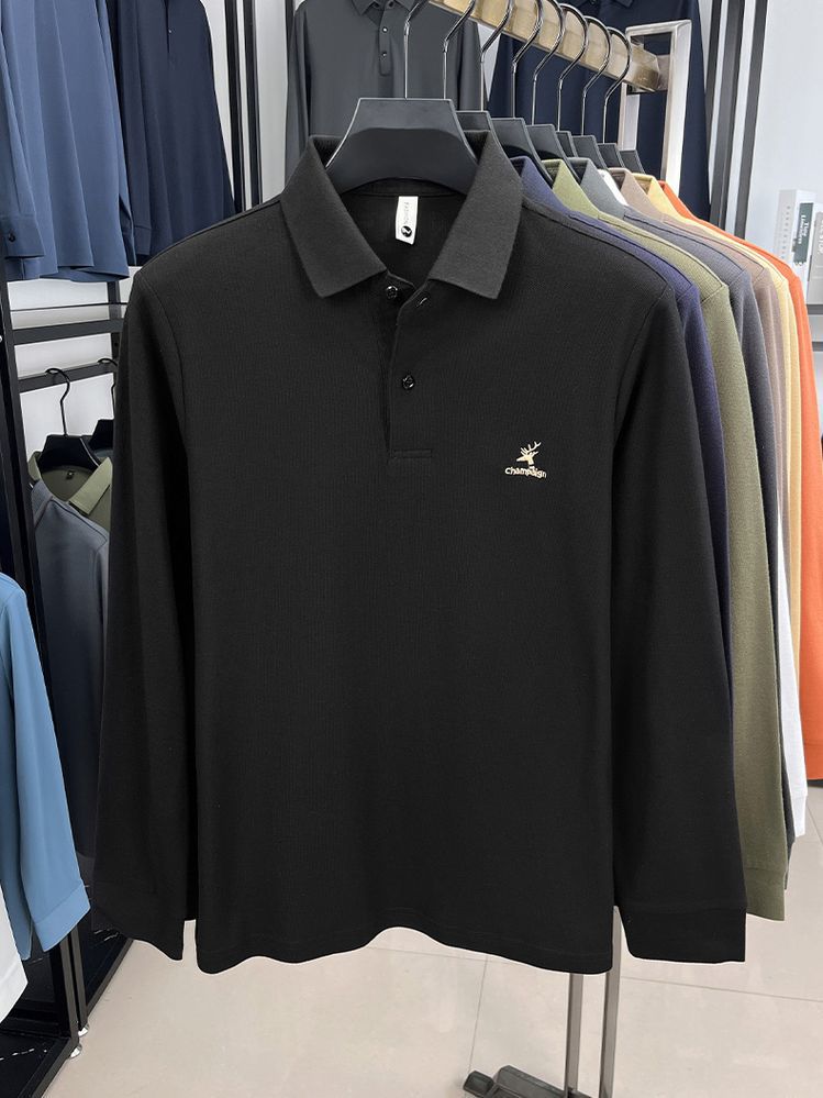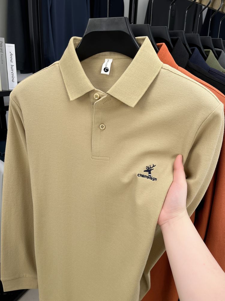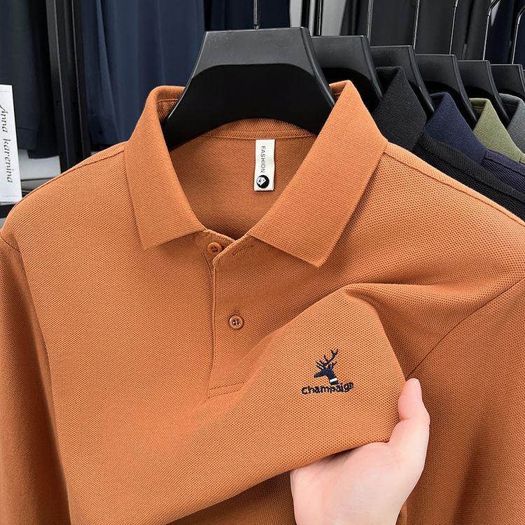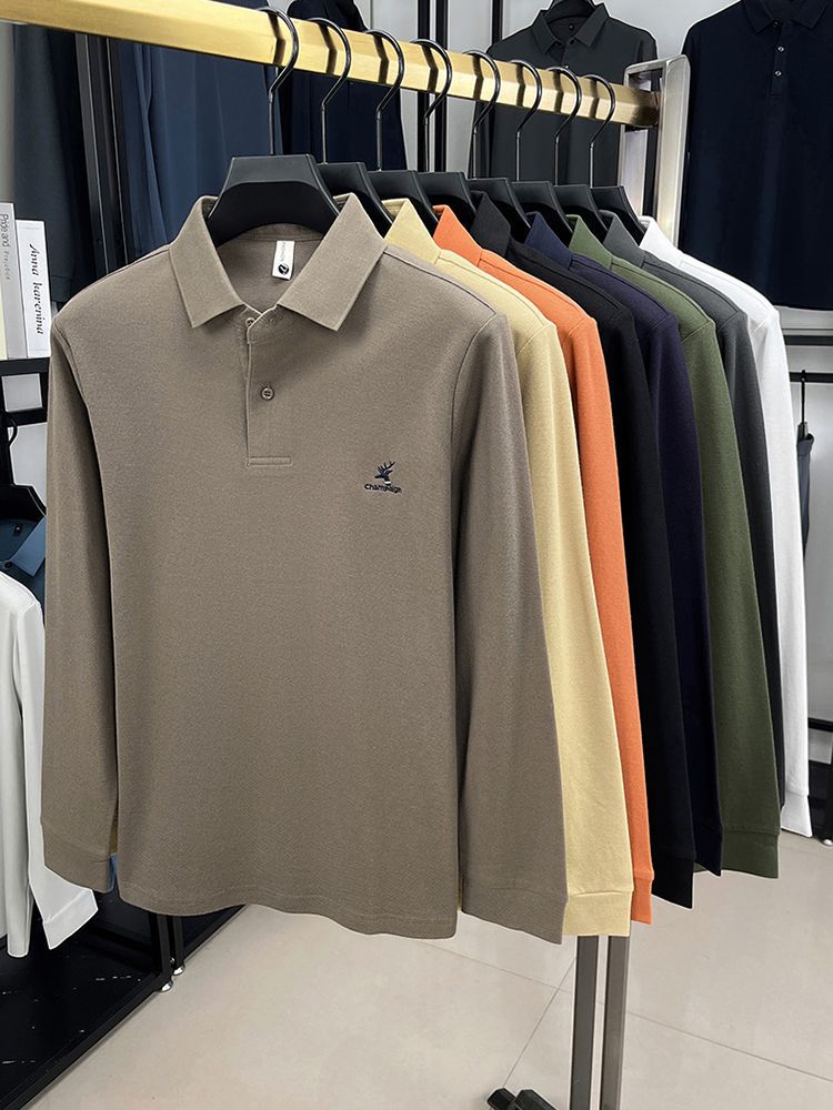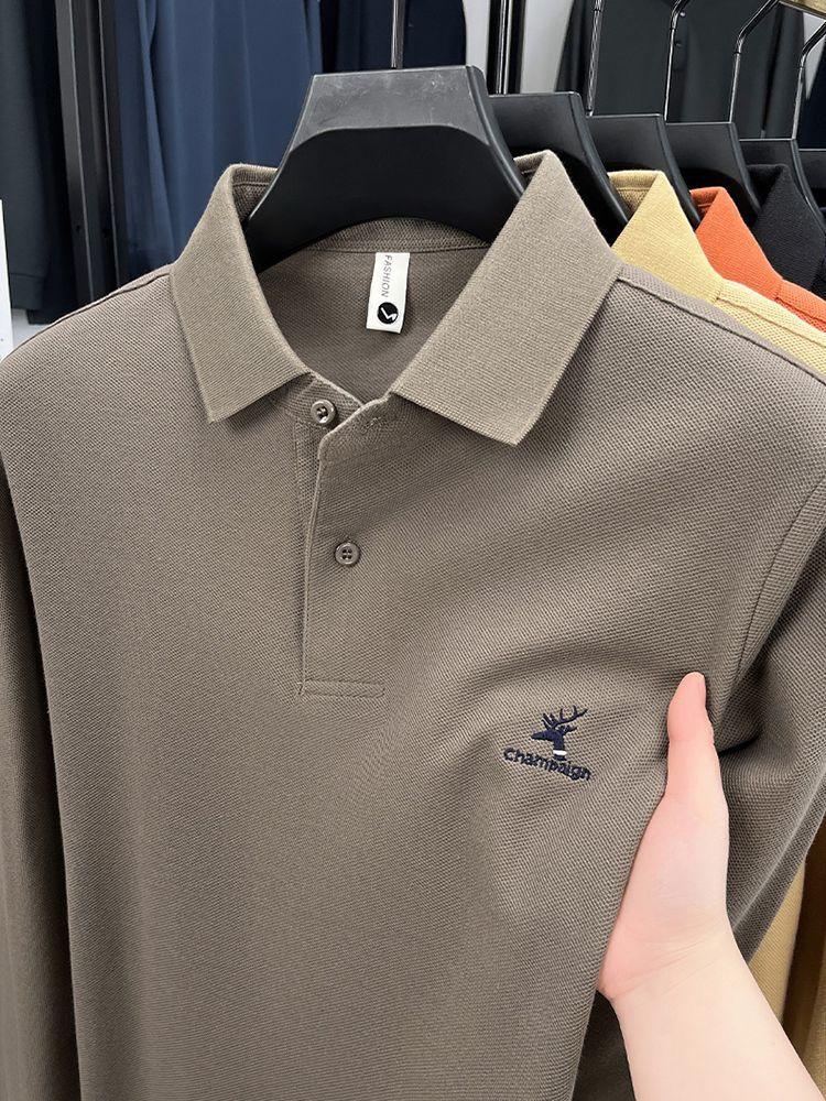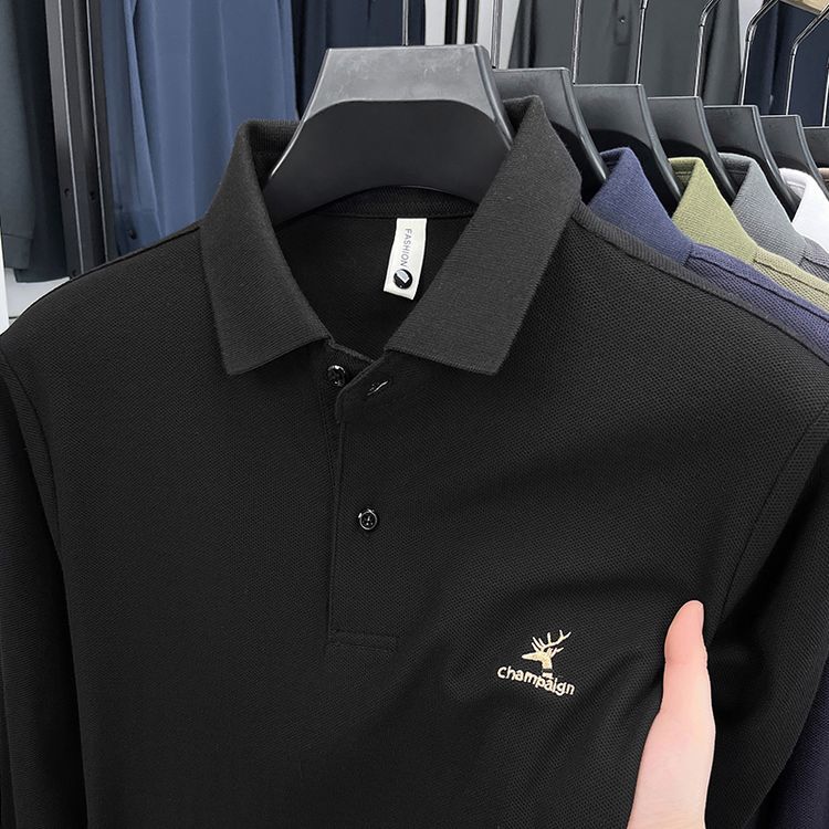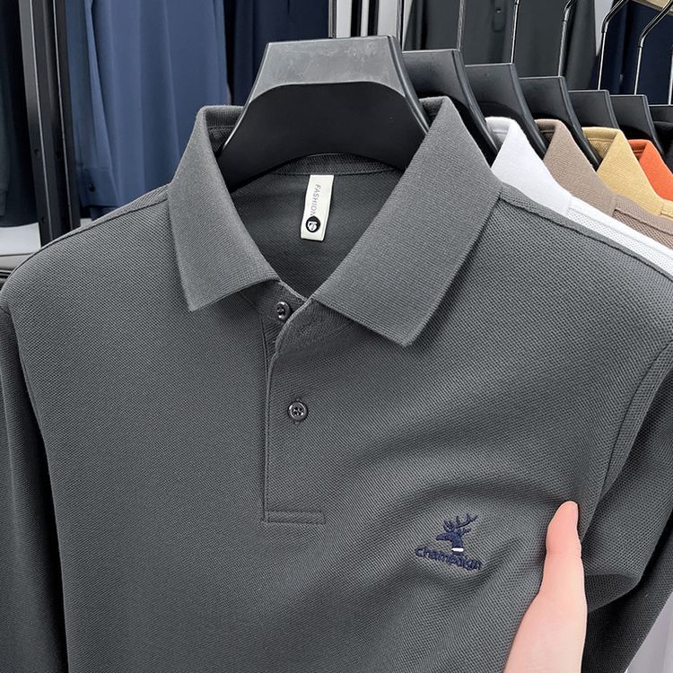 Polo de algodón con solapa para hombre, camiseta informal de negocios de mediana edad, bordada, de manga larga, primavera y otoño de 2025
