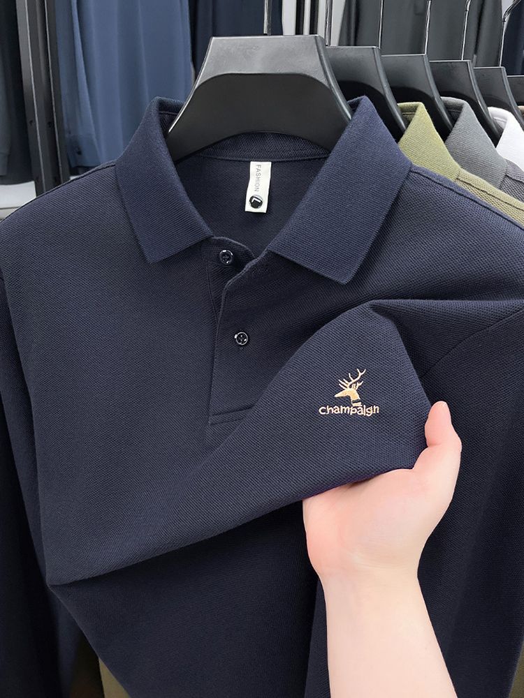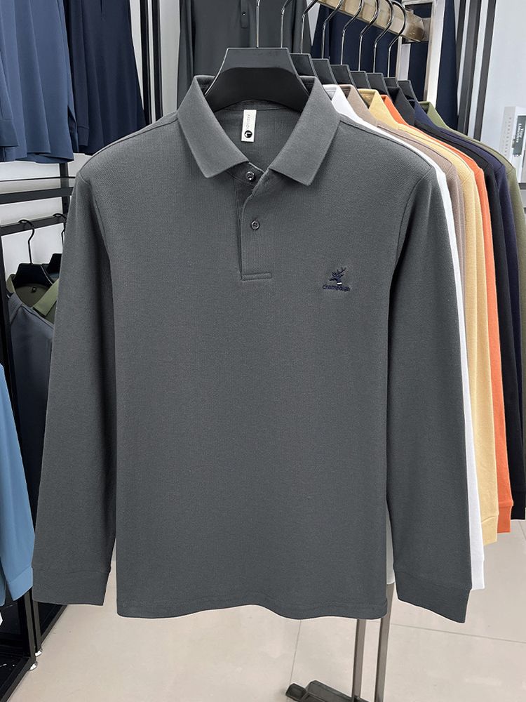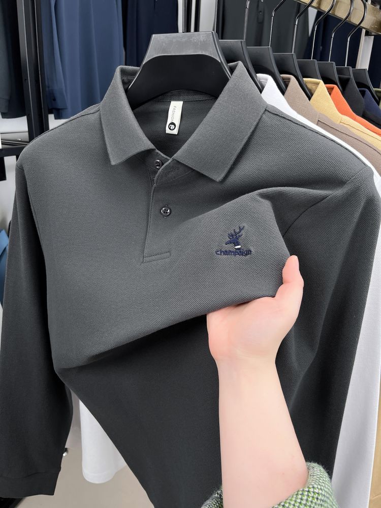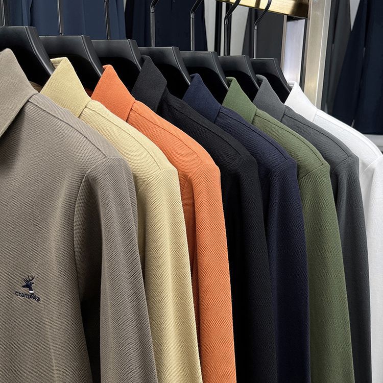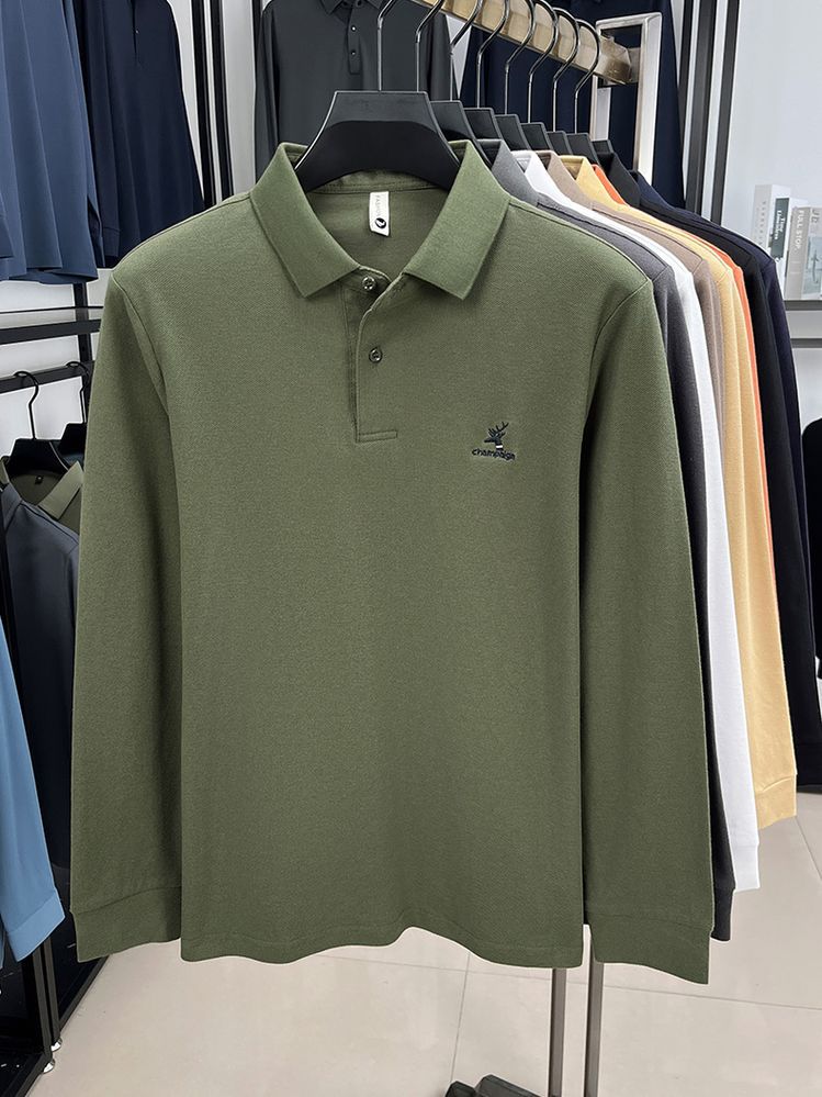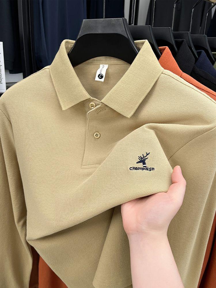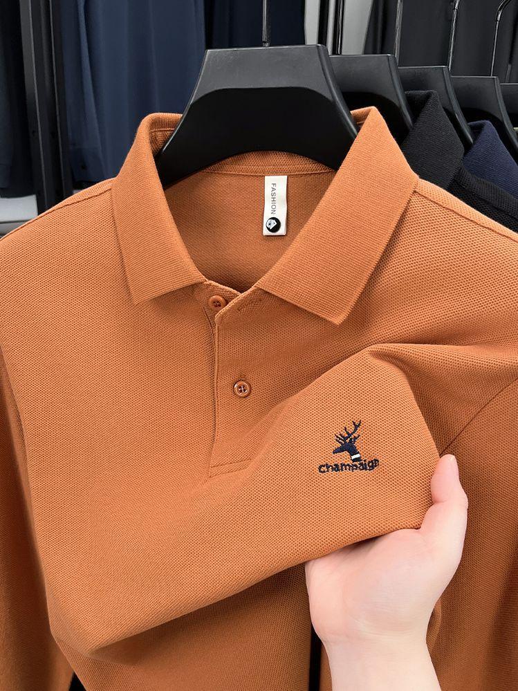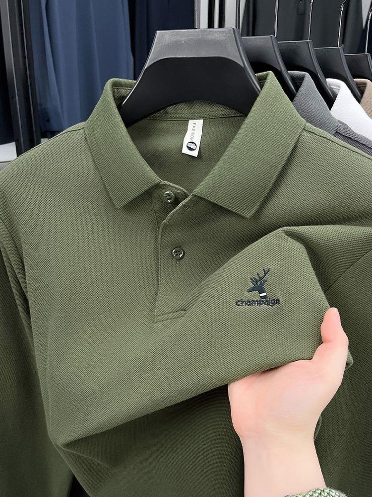 Polo de algodón con solapa para hombre, camiseta informal de negocios de mediana edad, bordada, de manga larga, primavera y otoño de 2025