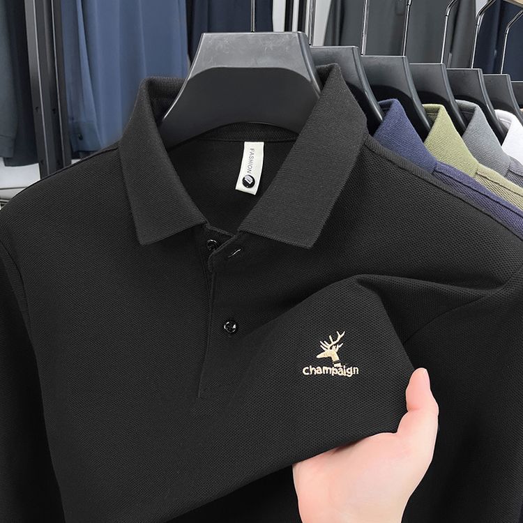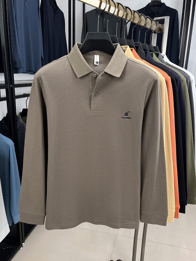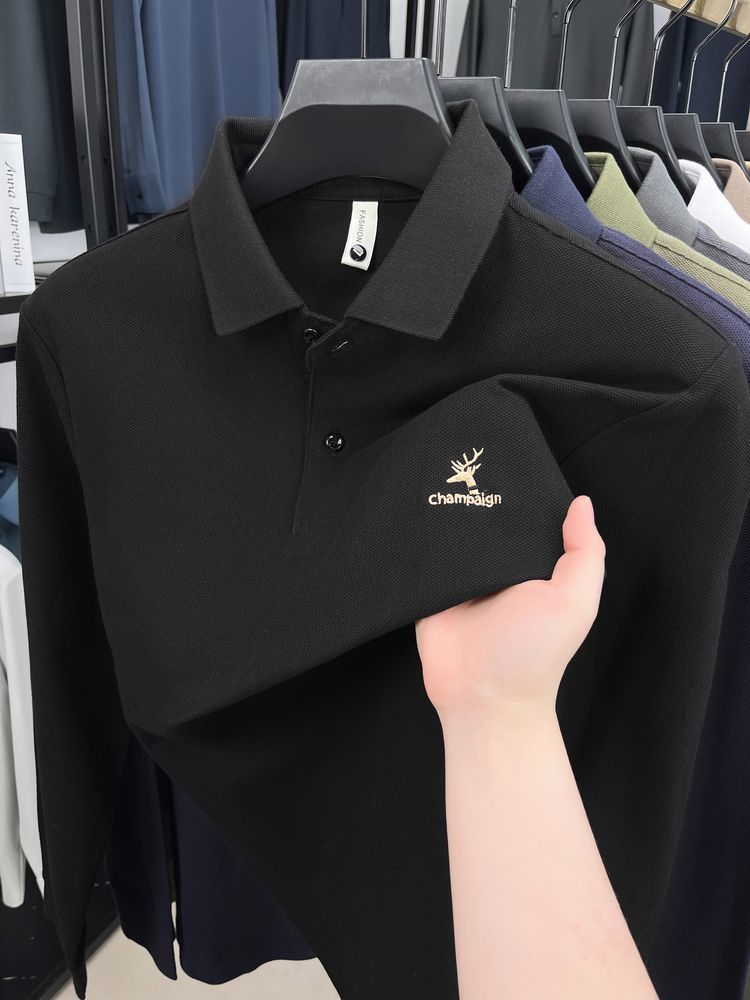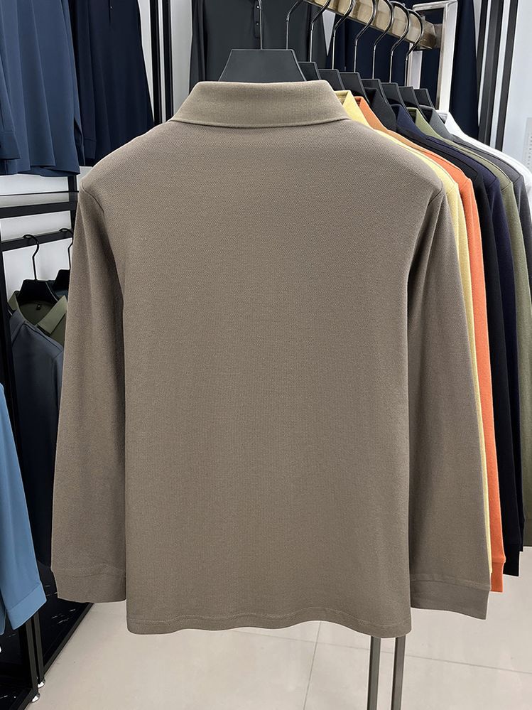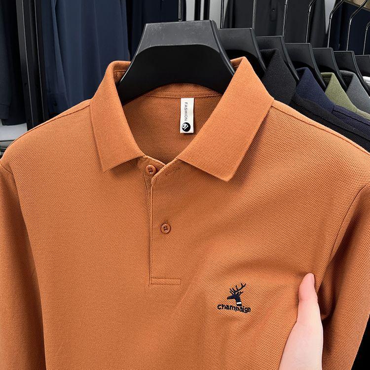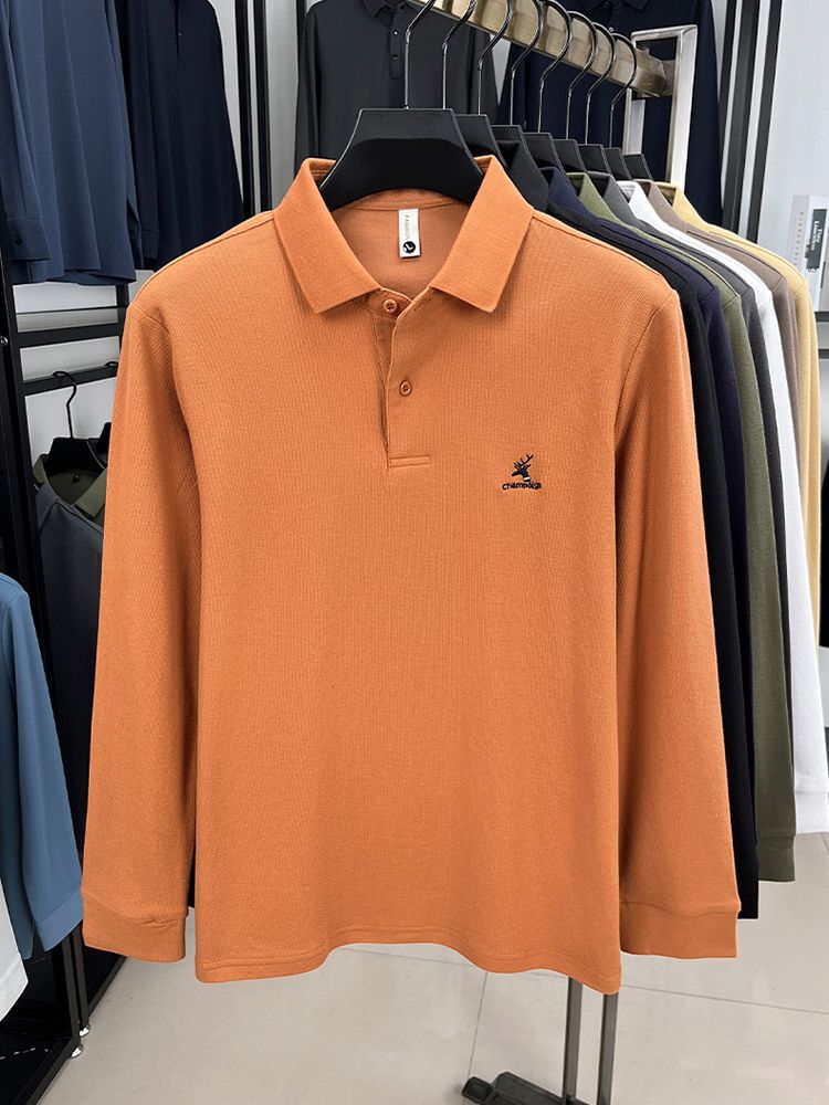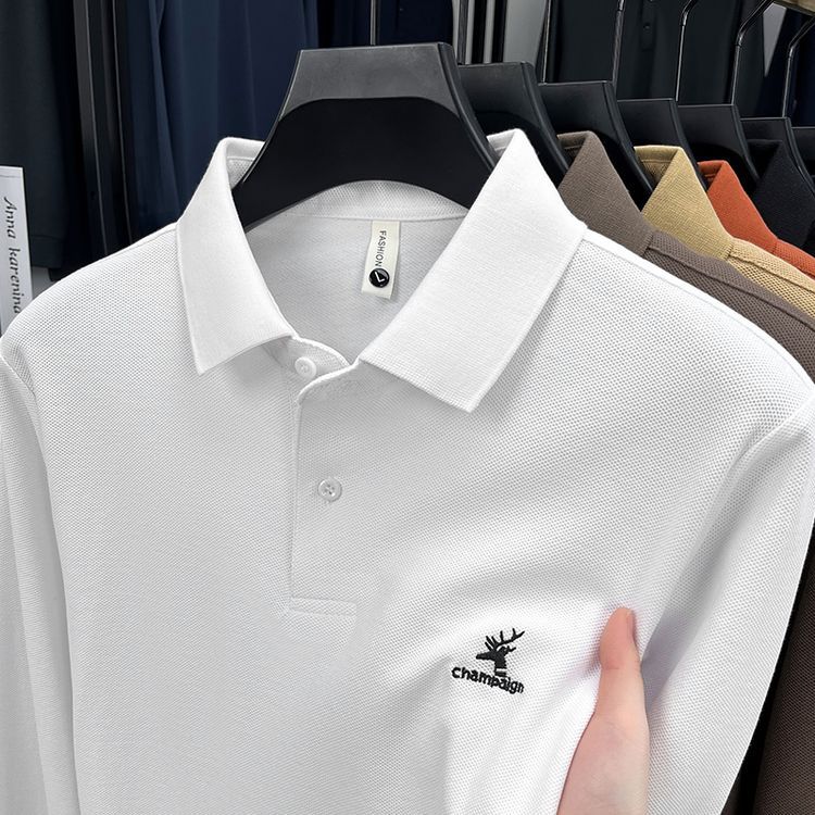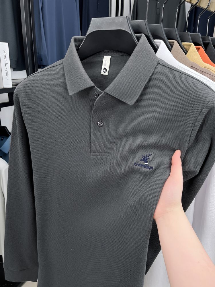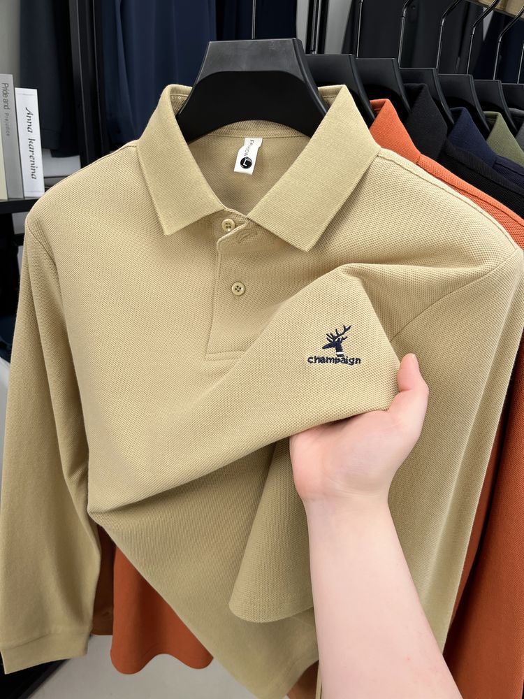 Polo de algodón con solapa para hombre, camiseta informal de negocios de mediana edad, bordada, de manga larga, primavera y otoño de 2025