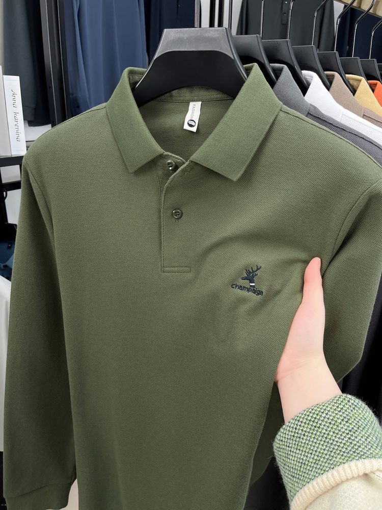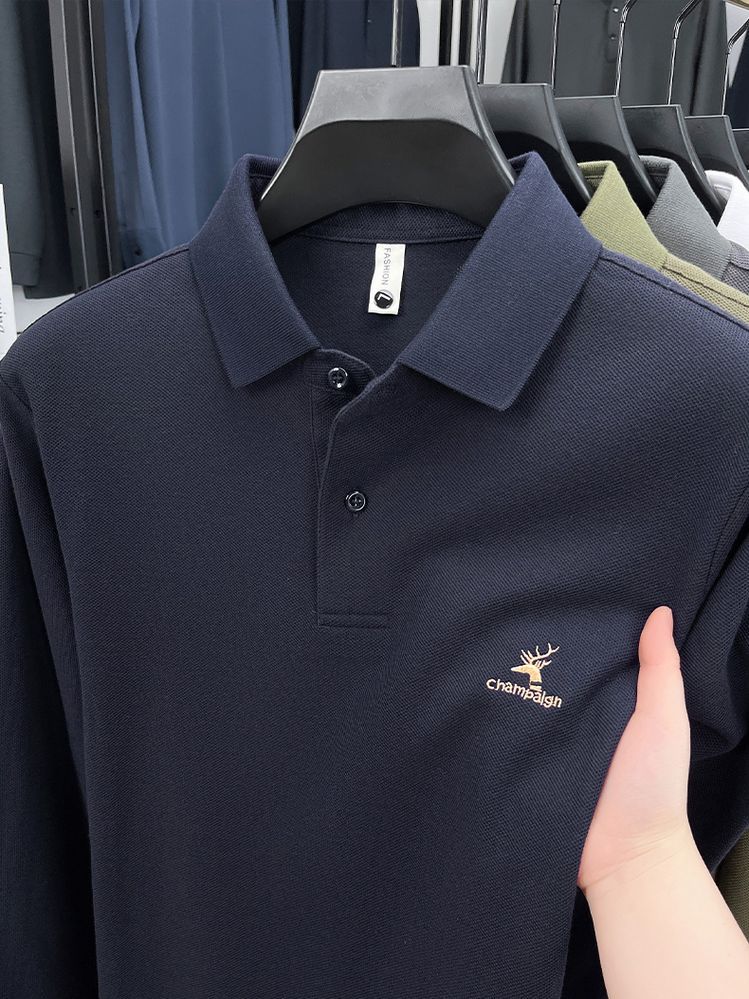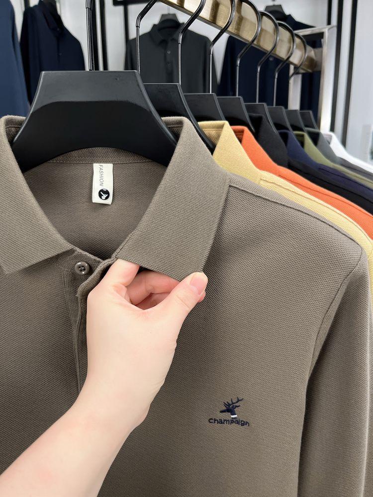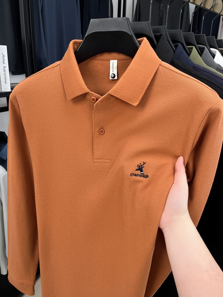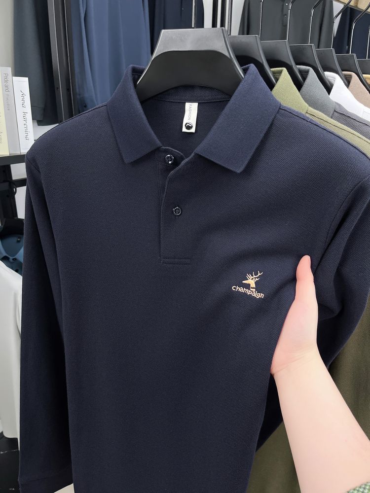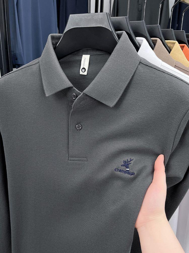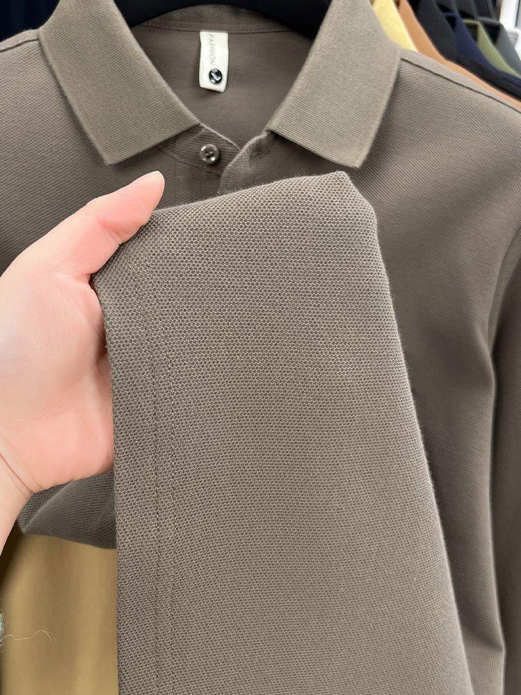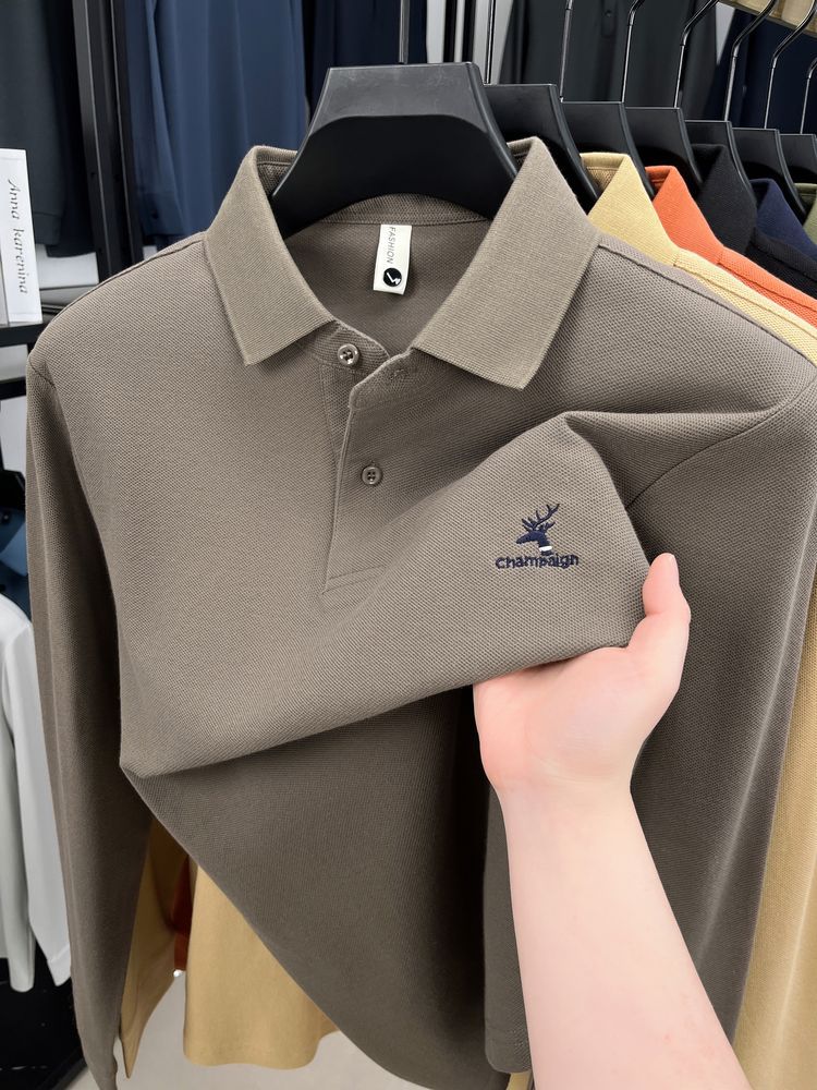 Polo de algodón con solapa para hombre, camiseta informal de negocios de mediana edad, bordada, de manga larga, primavera y otoño de 2025