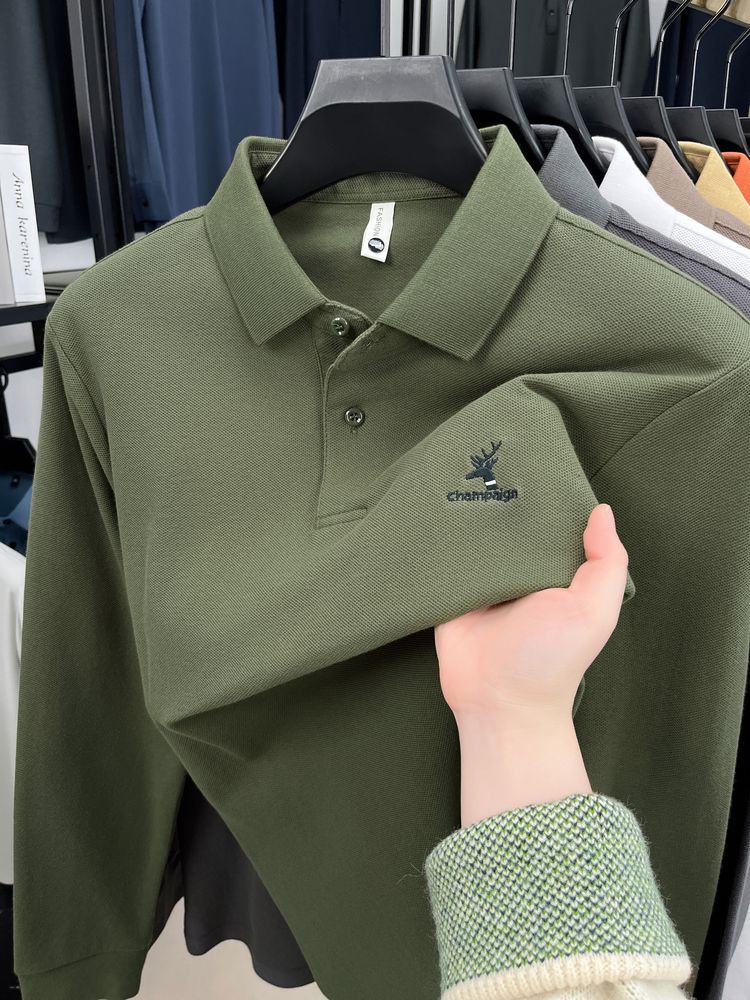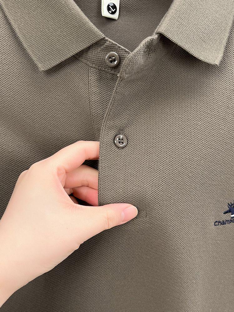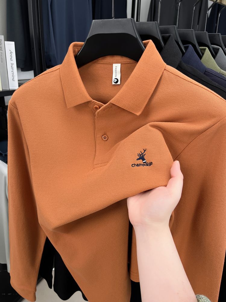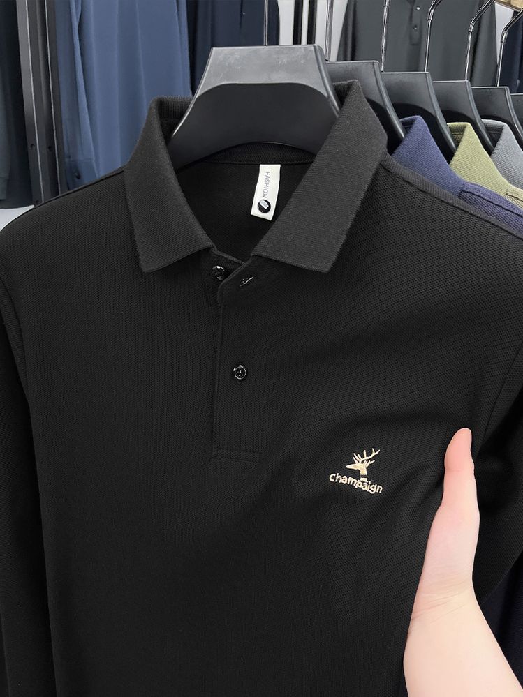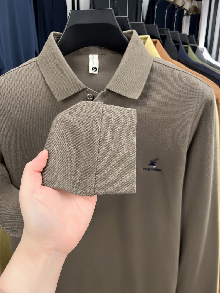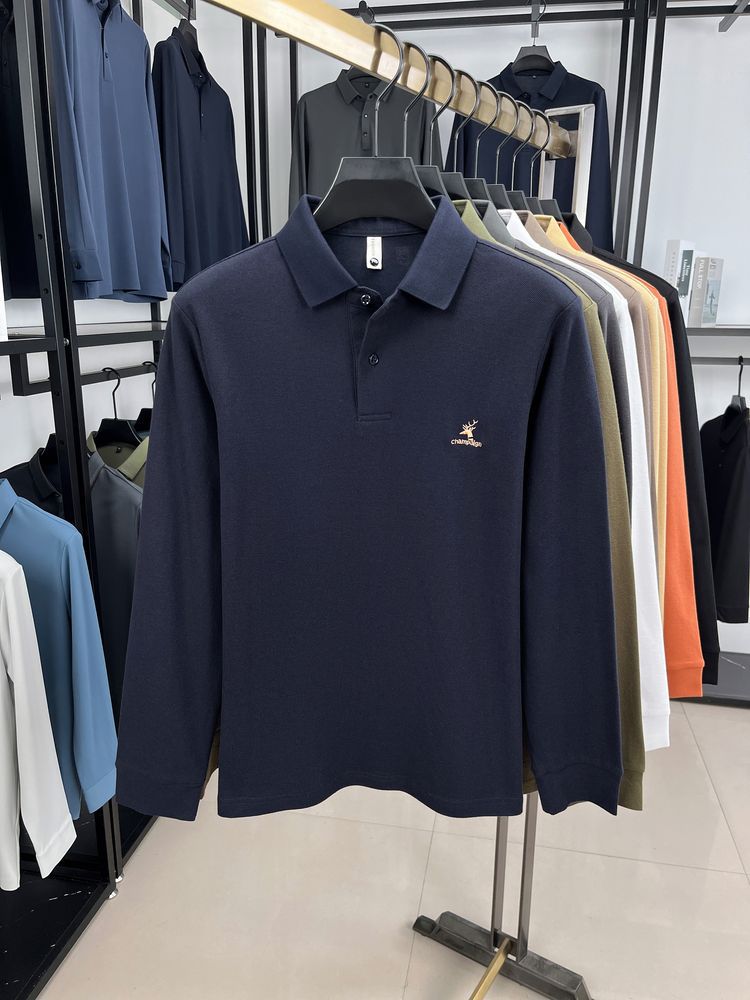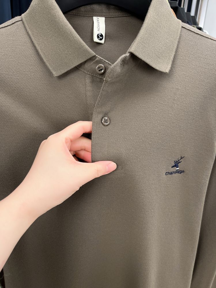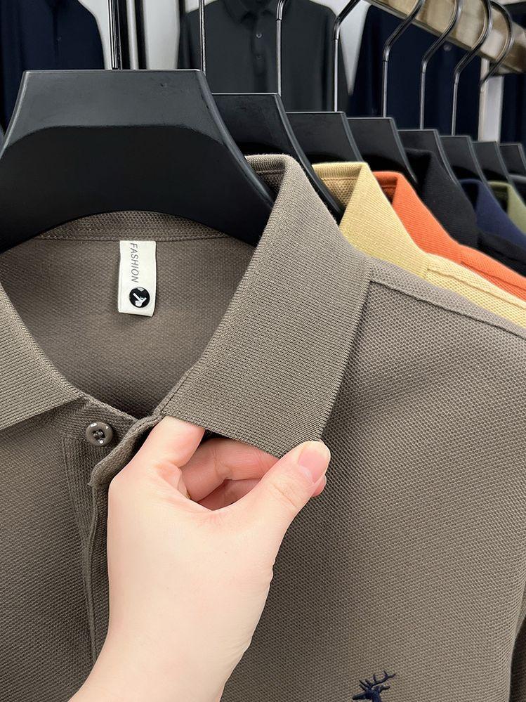 Polo de algodón con solapa para hombre, camiseta informal de negocios de mediana edad, bordada, de manga larga, primavera y otoño de 2025