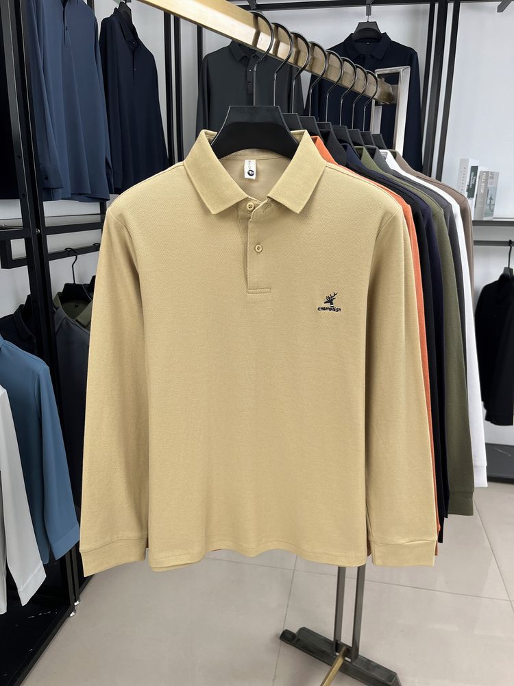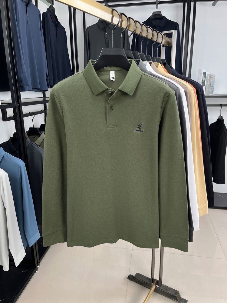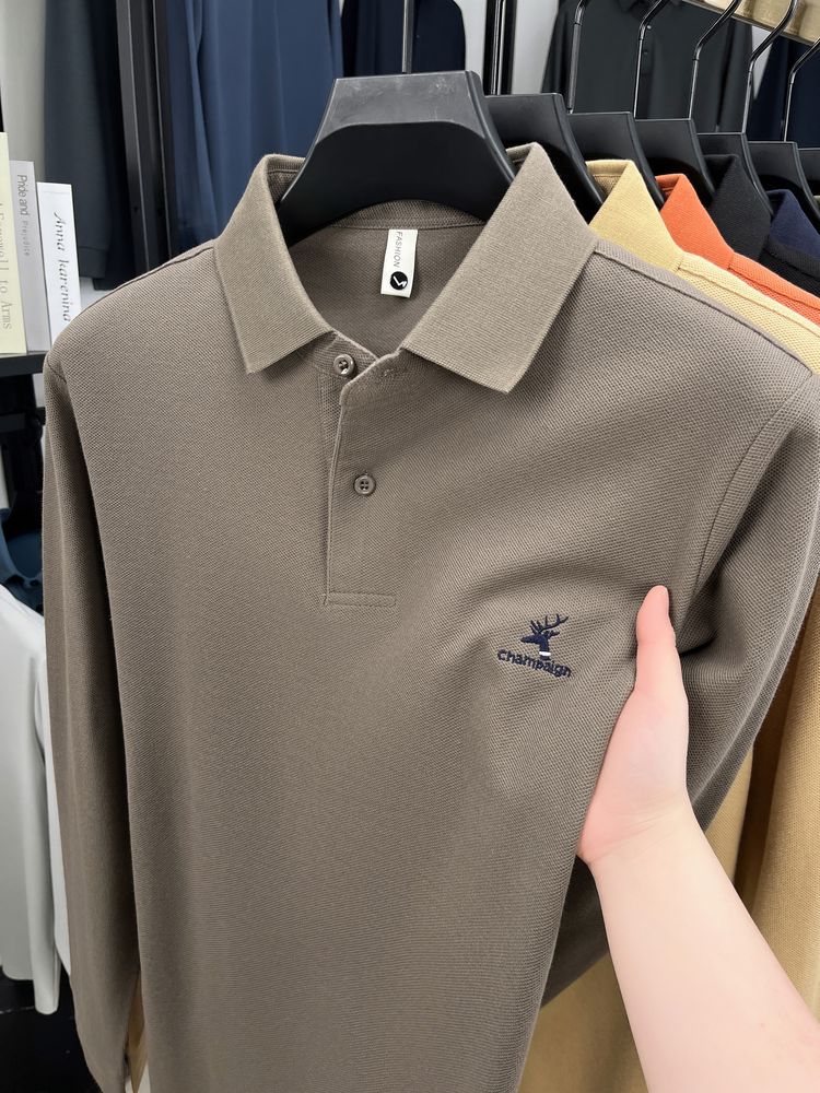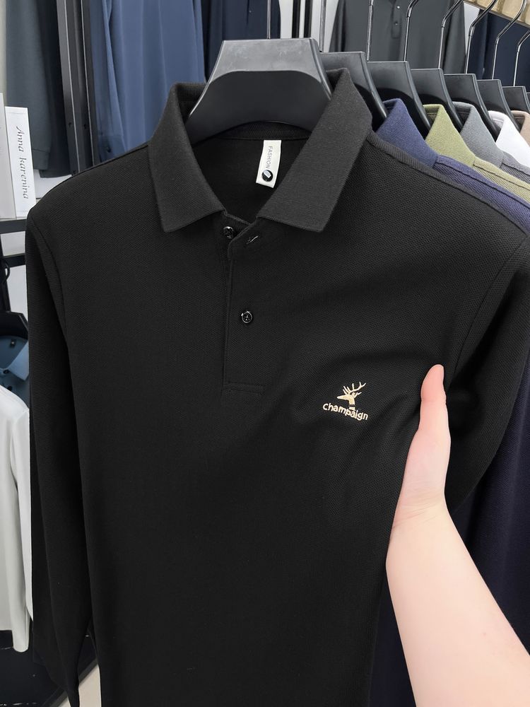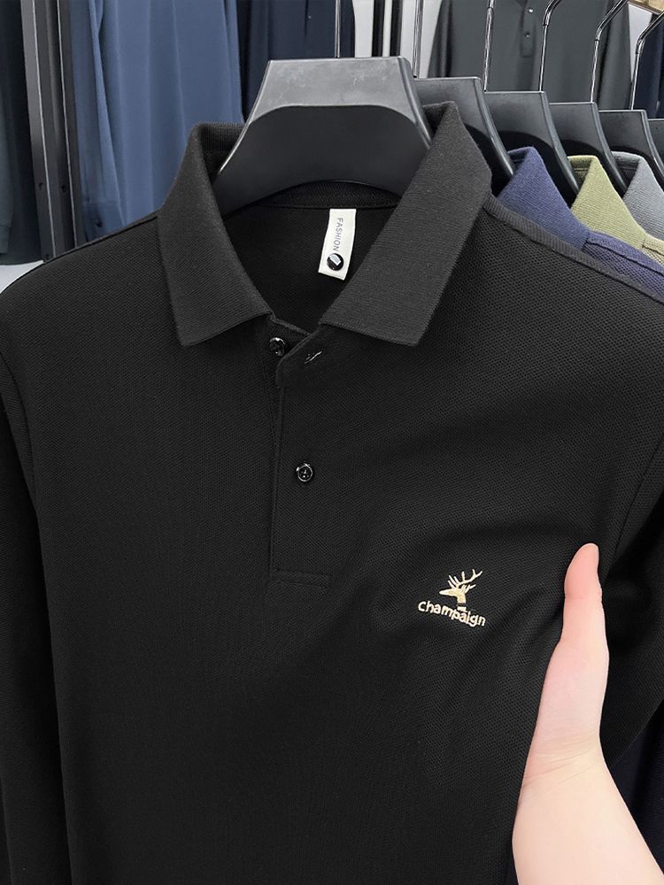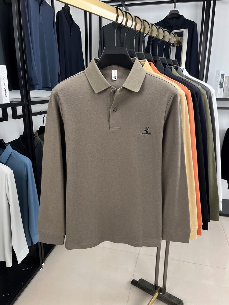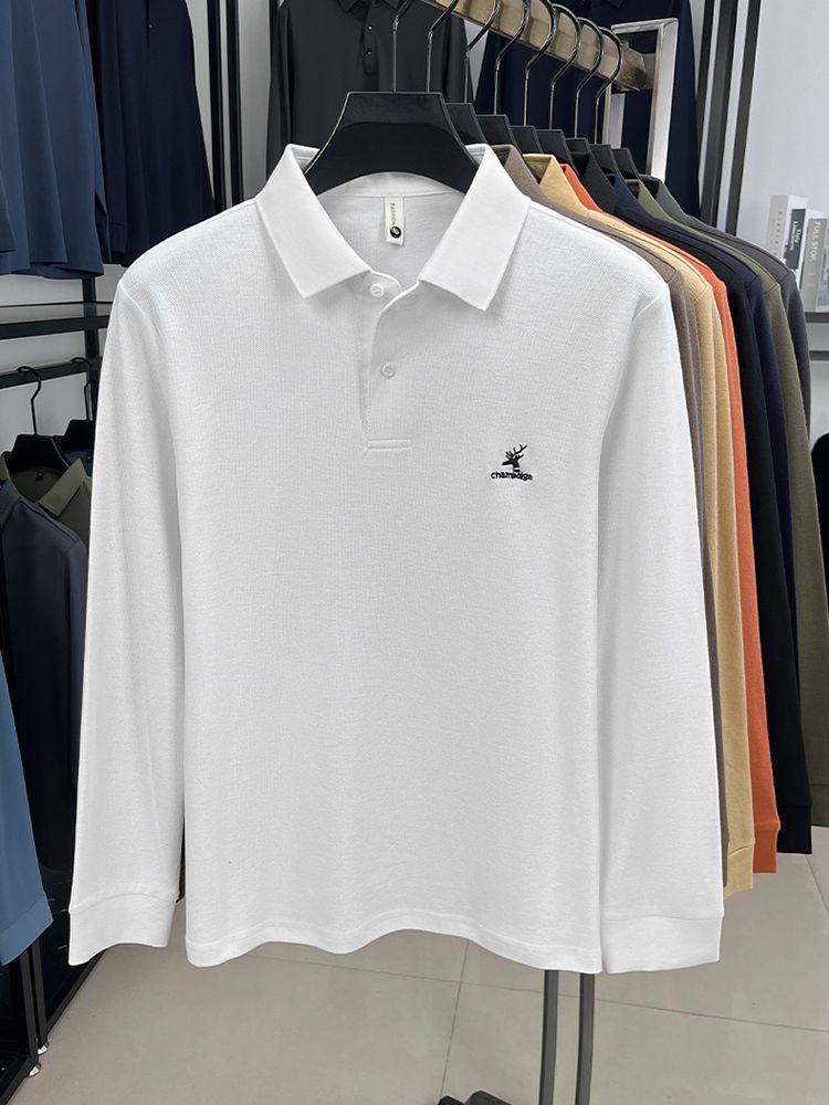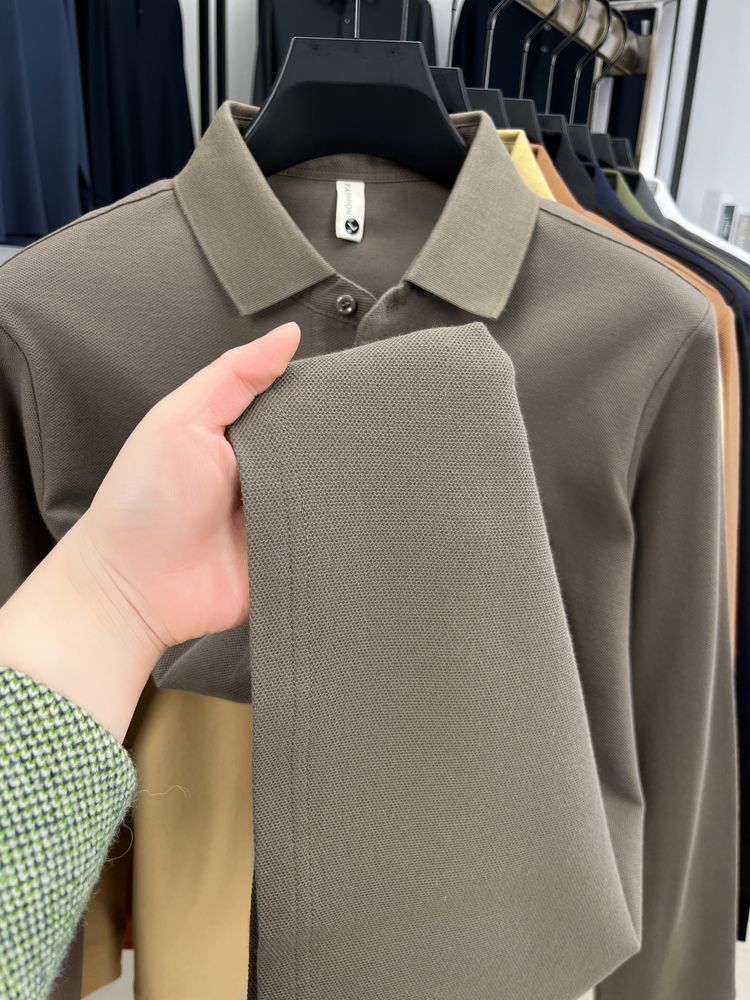 Polo de algodón con solapa para hombre, camiseta informal de negocios de mediana edad, bordada, de manga larga, primavera y otoño de 2025