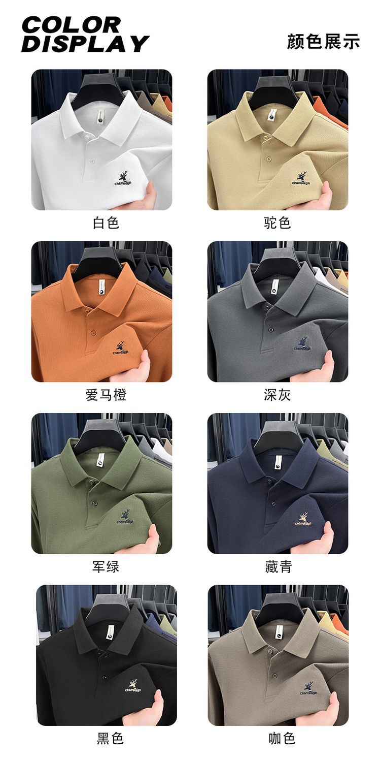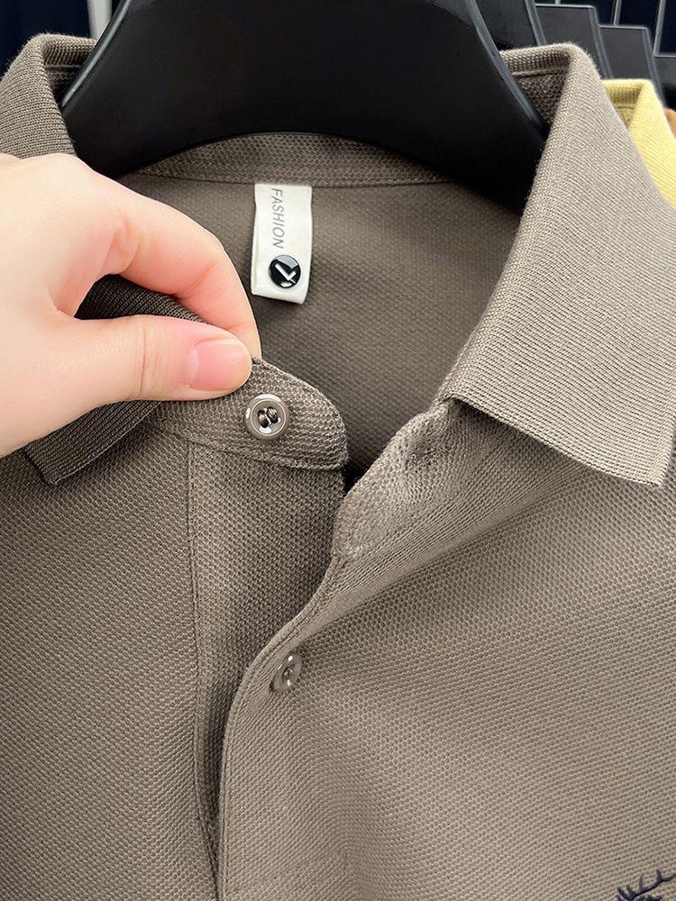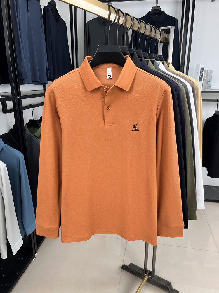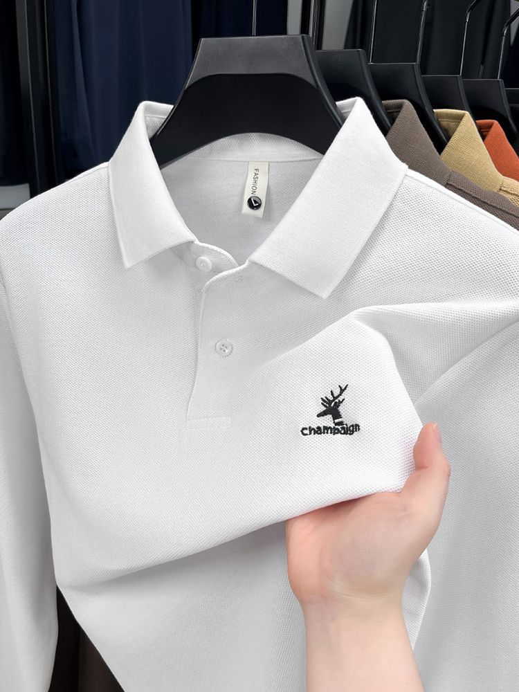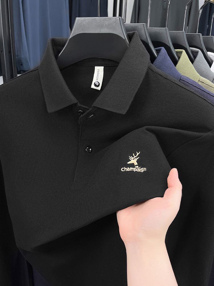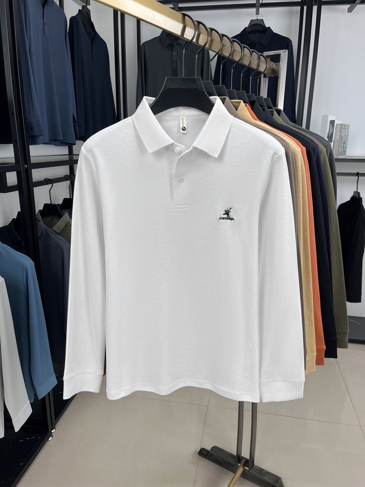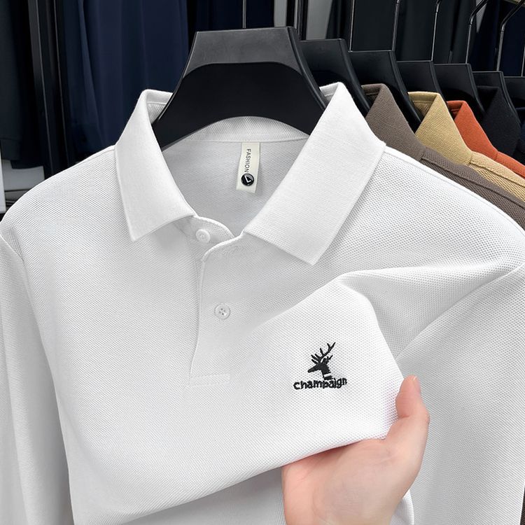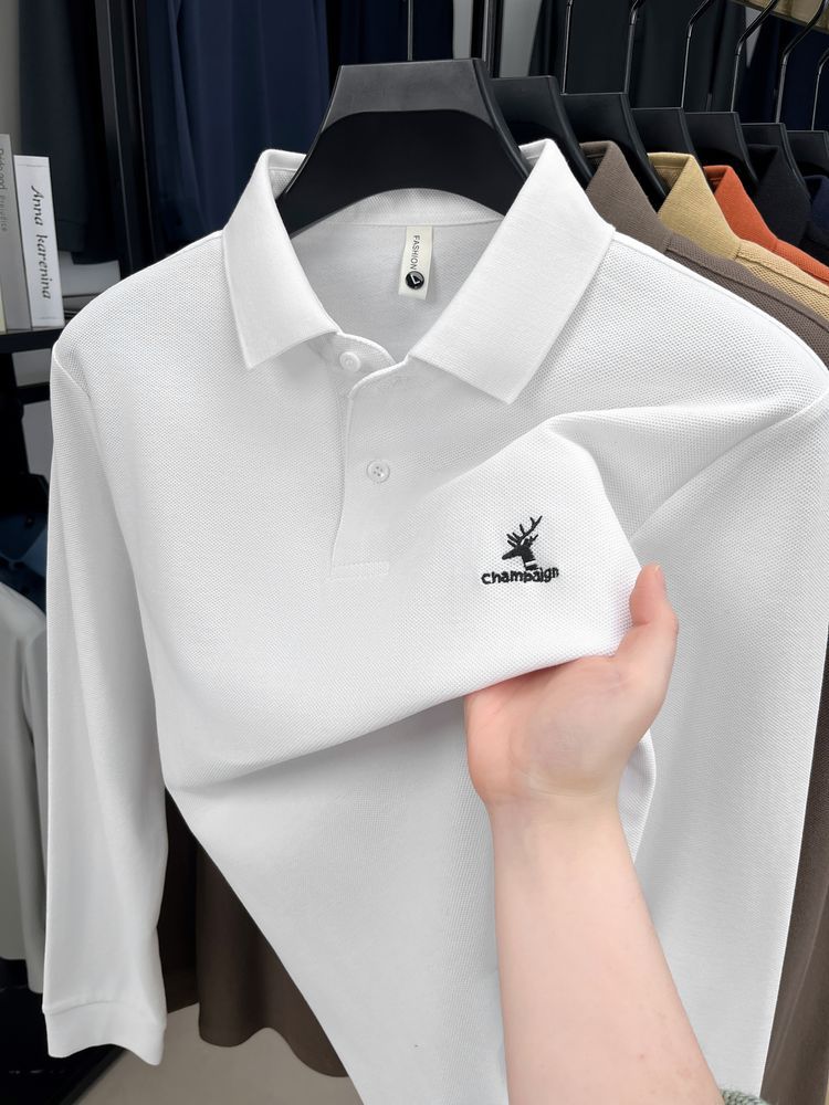 Polo de algodón con solapa para hombre, camiseta informal de negocios de mediana edad, bordada, de manga larga, primavera y otoño de 2025