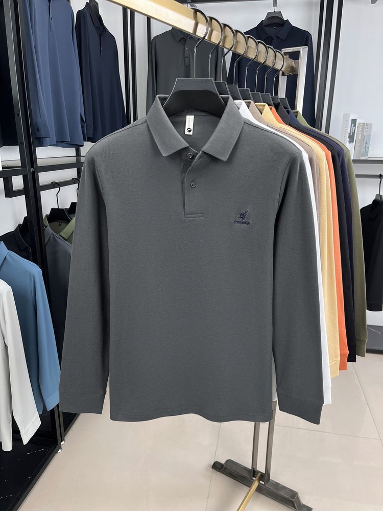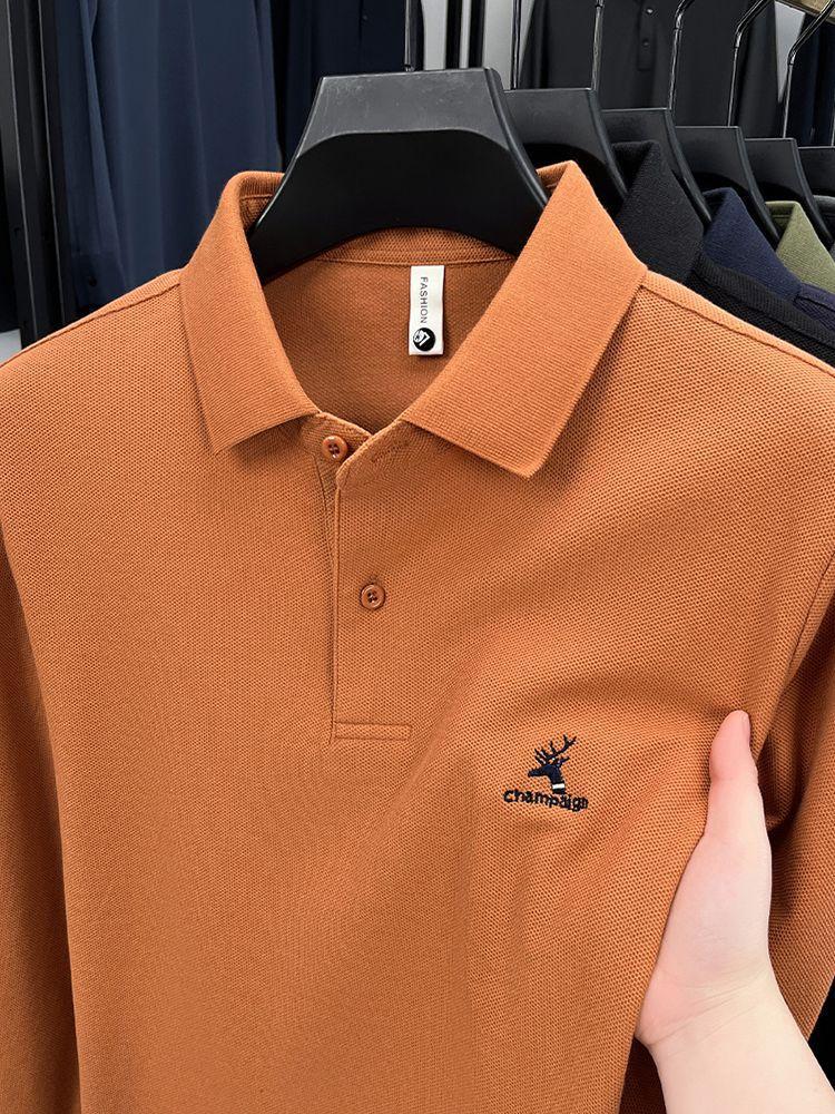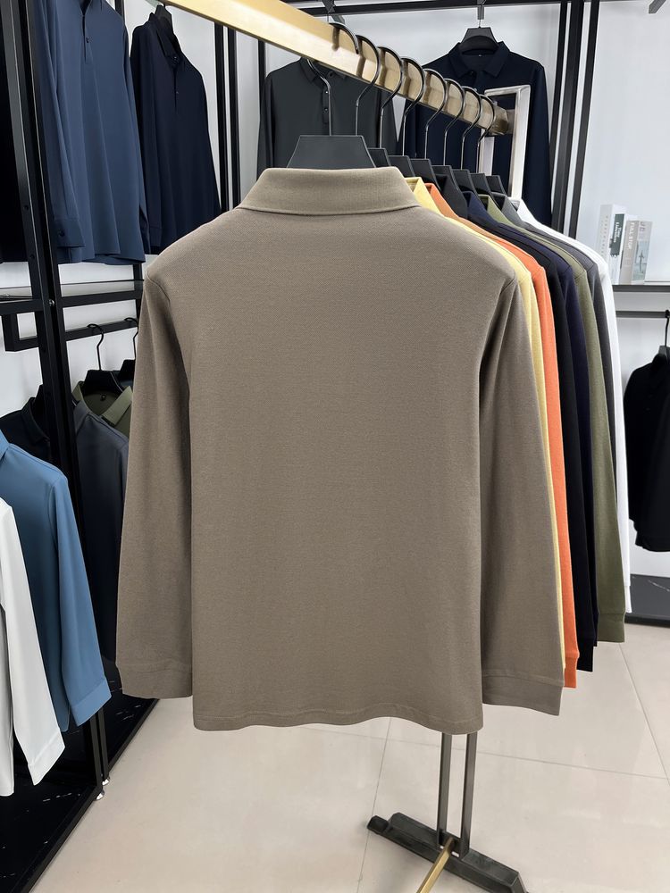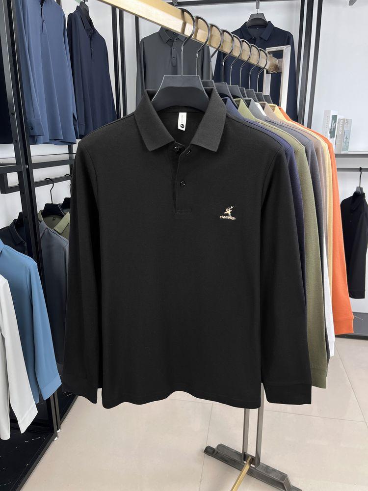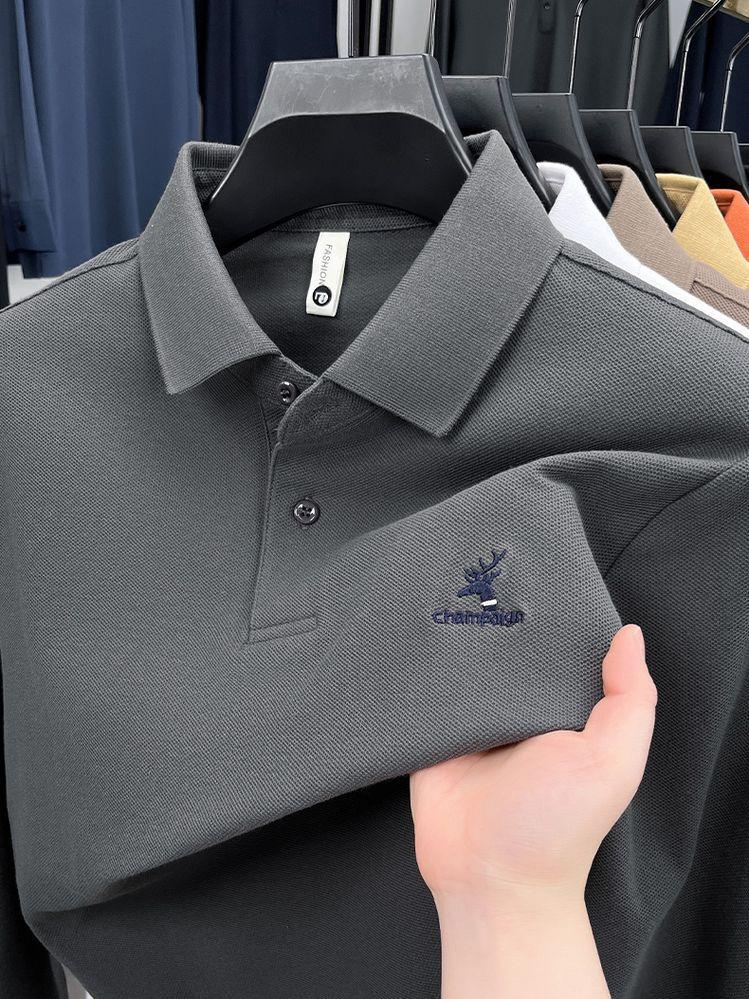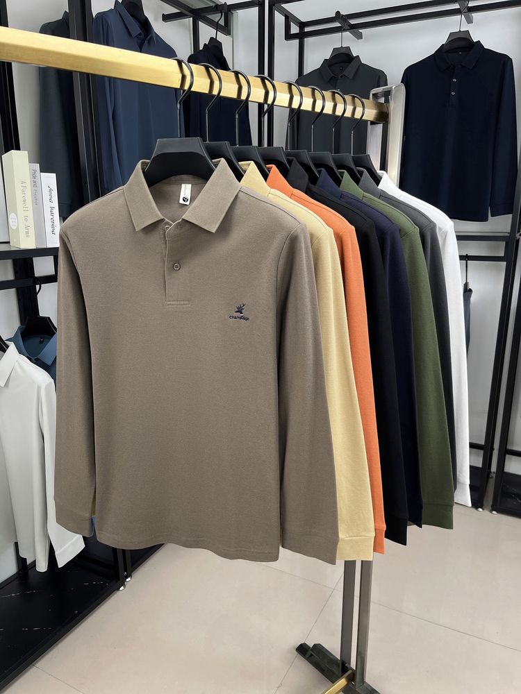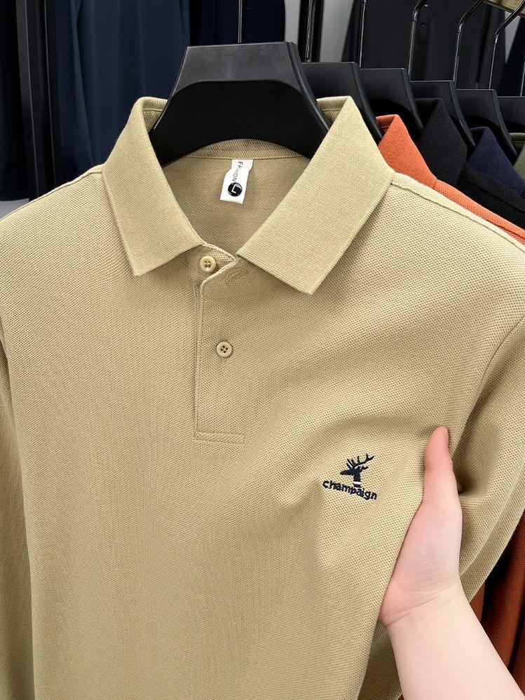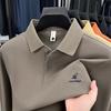 Polo de algodón con solapa para hombre, camiseta informal de negocios de mediana edad, bordada, de manga larga, primavera y otoño de 2025