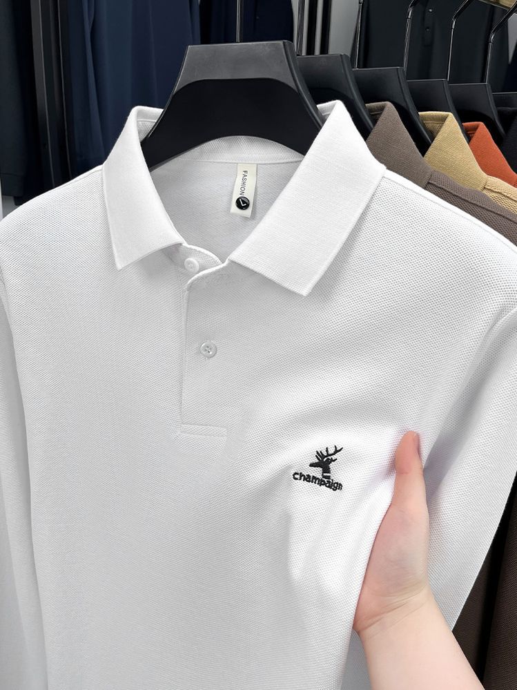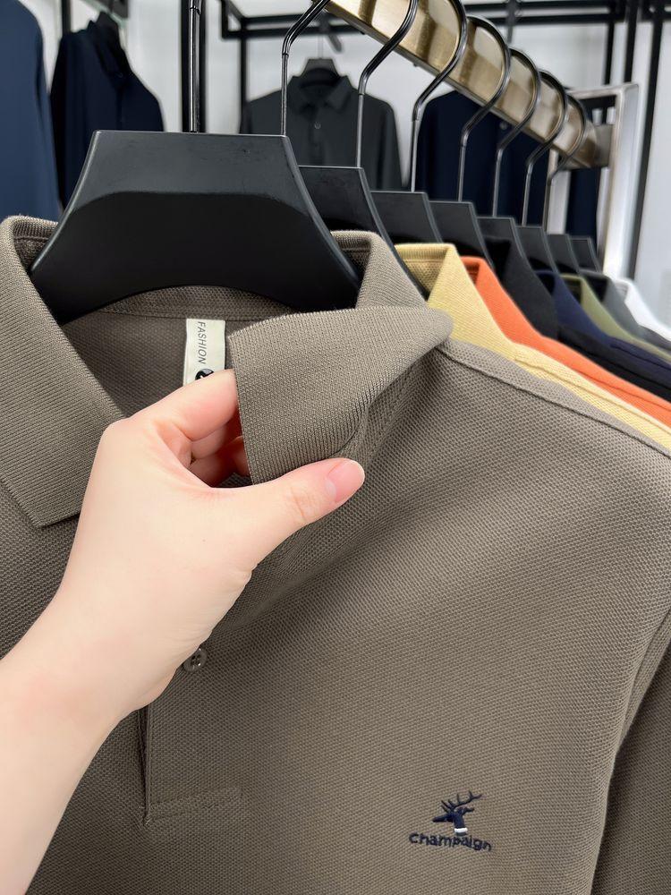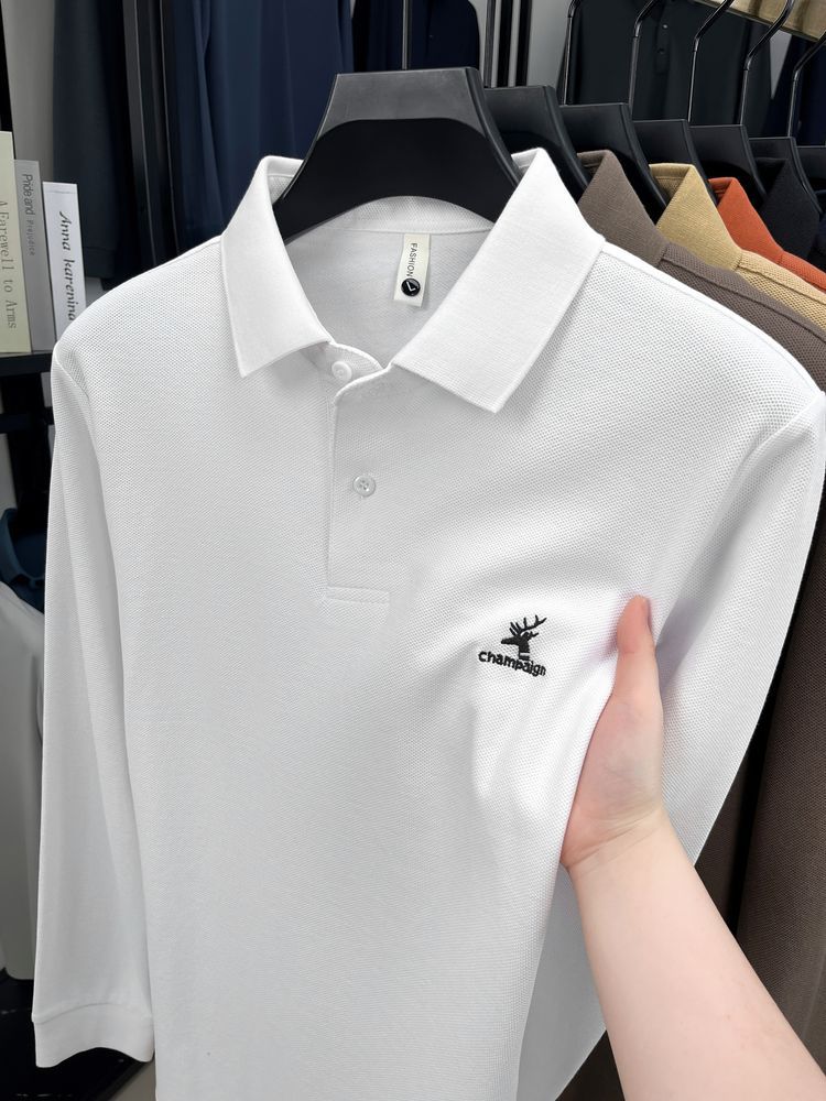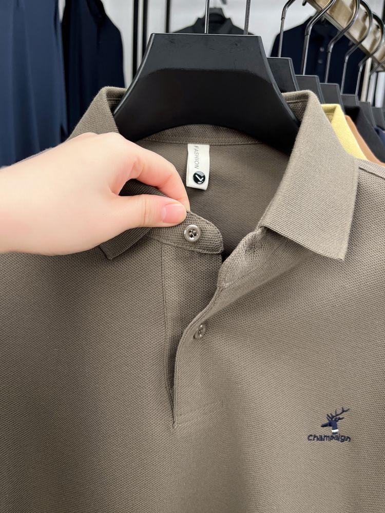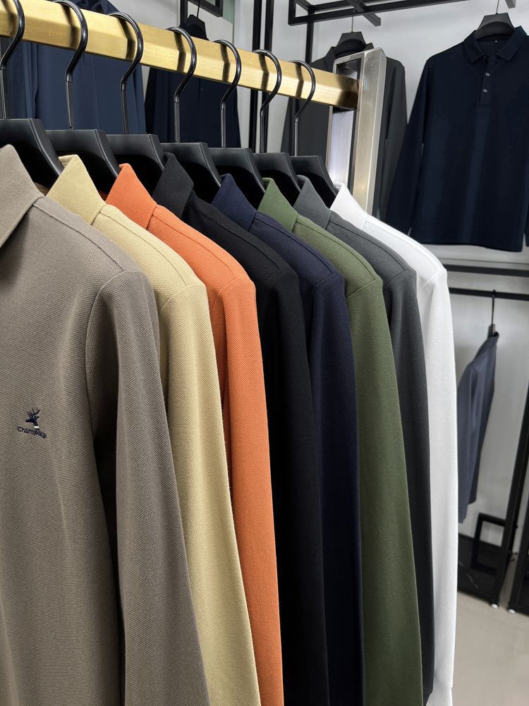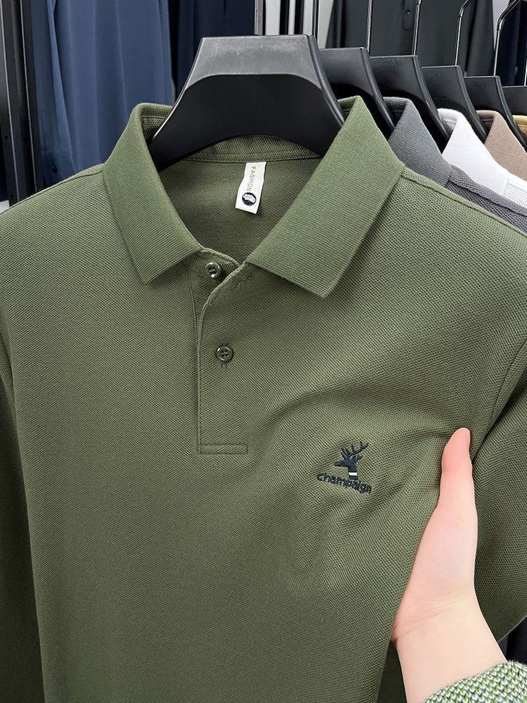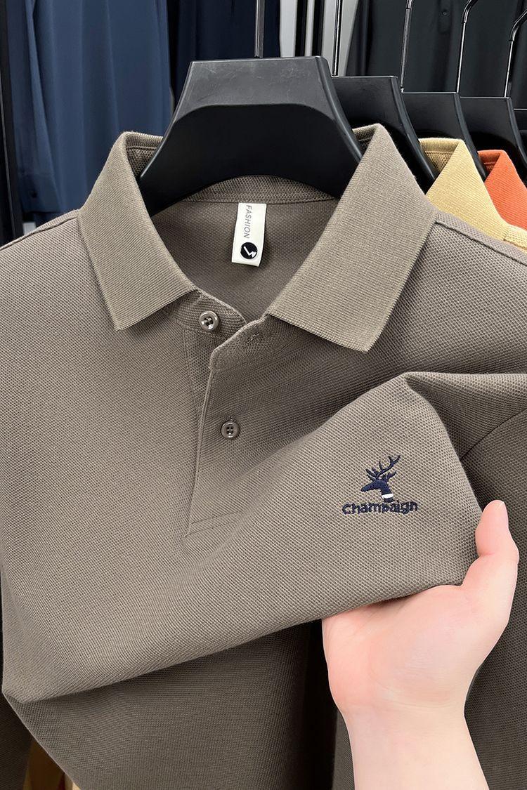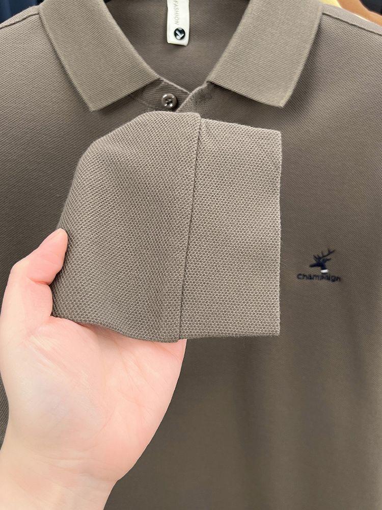 Polo de algodón con solapa para hombre, camiseta informal de negocios de mediana edad, bordada, de manga larga, primavera y otoño de 2025