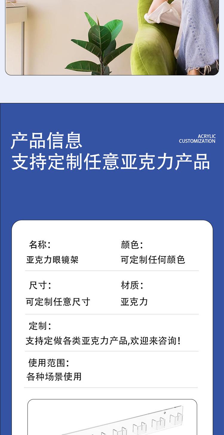 Marco acrílico personalizado para gafas de pared, moderno y sencillo soporte de exhibición acrílico transparente para gafas de sol