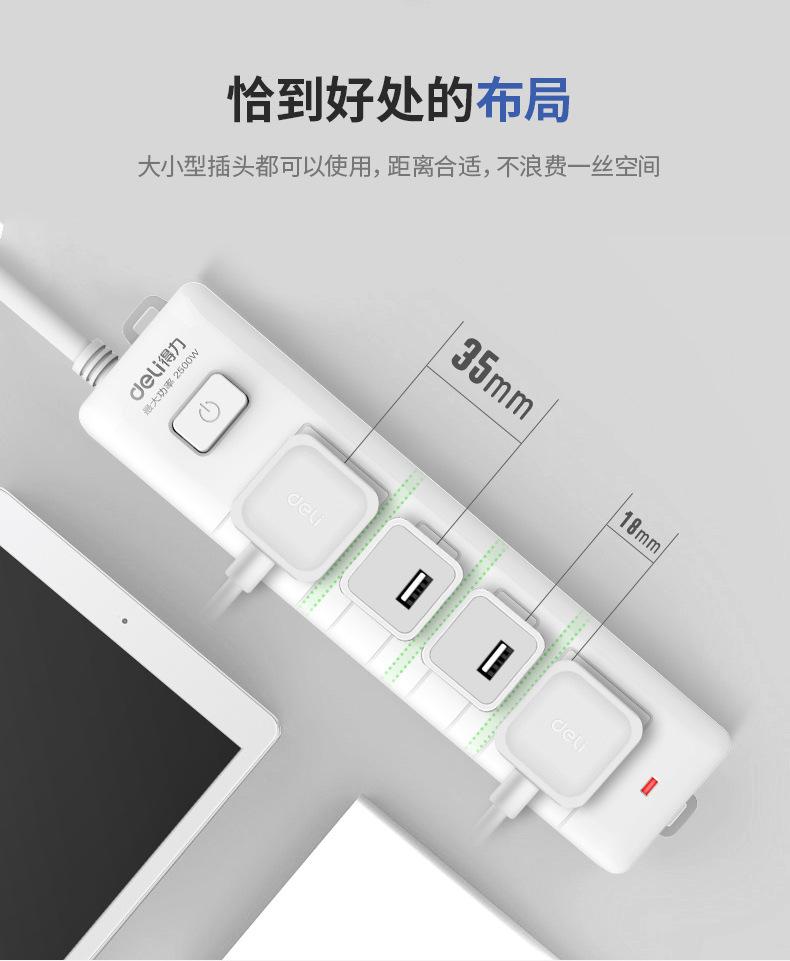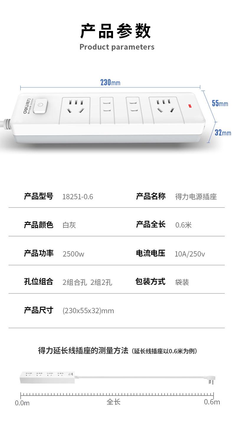 Deli 18251 enchufe 2 2 bolsa de PVC blanca 0.6 metros enchufe alta potencia doméstico 0.6m enchufe mayoreo