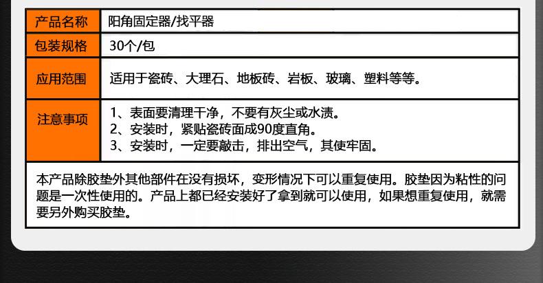 Dispositivo de nivelación de posicionamiento de soporte de ángulo de baldosas de segunda generación, artefacto para baldosas de pared y piso (30 piezas por paquete)