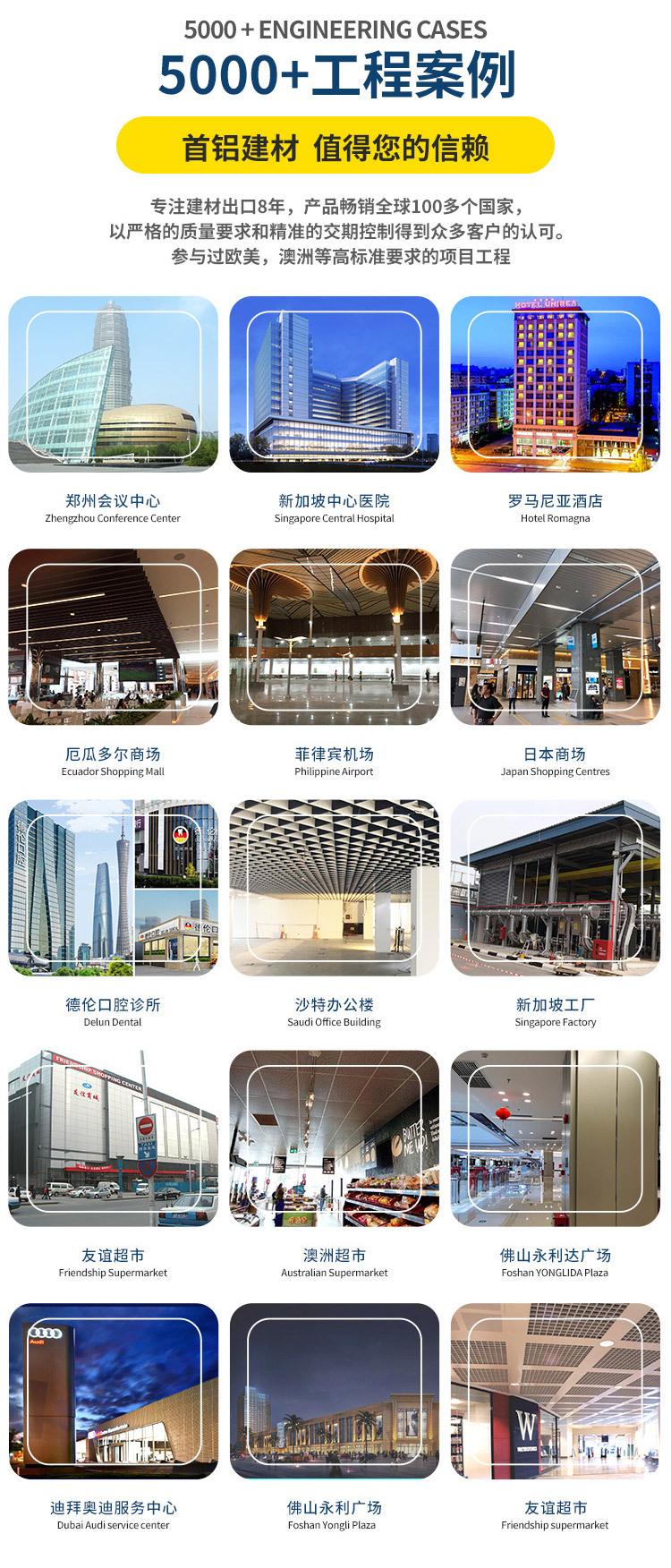 Gracias por elegir [Shoulu Building Materials] y visitar nuestro sitio web. Somos una fábrica profesional que se especializa en ofrecer soluciones personalizadas de materiales decorativos de aleación de aluminio para techos y paredes exteriores. Durante 13 años, nos hemos adherido al principio de "el cliente es lo primero" y "la calidad es lo primero", atendiendo a clientes en más de 100 países de todo el mundo y acumulando más de 5000 casos de ingeniería. Contamos con un equipo profesional que atenderá cada consulta y nos asegurará de ofrecerle la mejor solución a su medida.