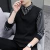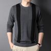 Suéter para Hombre Otoño e Invierno Nuevo Manga Larga Estilo Coreano Rayado Tejido Cuello Redondo Combinado Suéter de Fondo Camiseta Interior al por Mayor