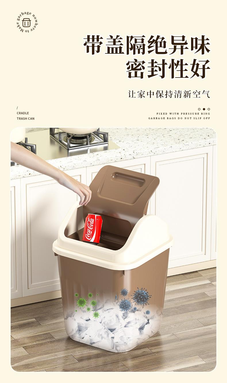Bote de Basura para Baño, Sala de Estar, Cesto de Papel para Dormitorio con Tapa, Cubo de Almacenamiento Especial Tipo Sándwich con Tapa Oscilante para Hogar de Gran Capacidad