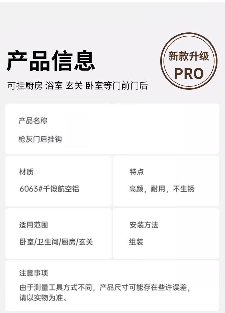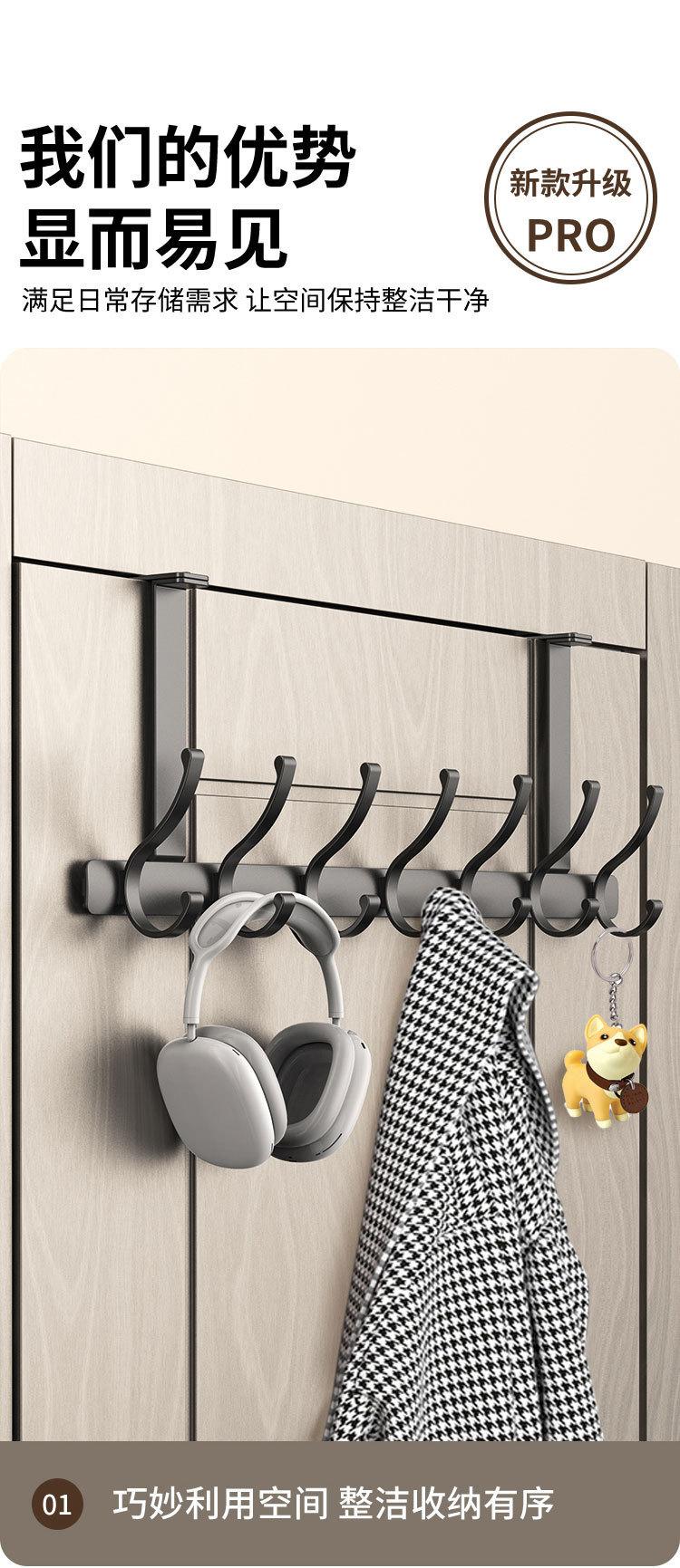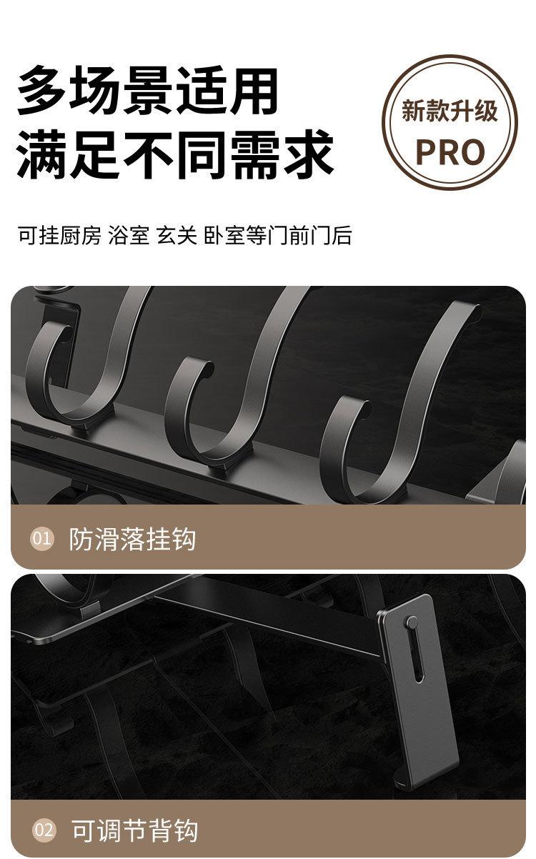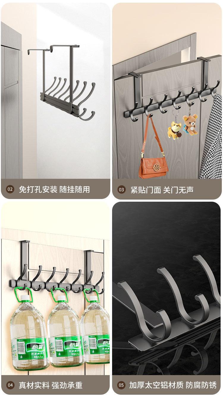 Adjustable 5-7cm thickness door/23 Height/small clothes hook/4 hooks/elegant black