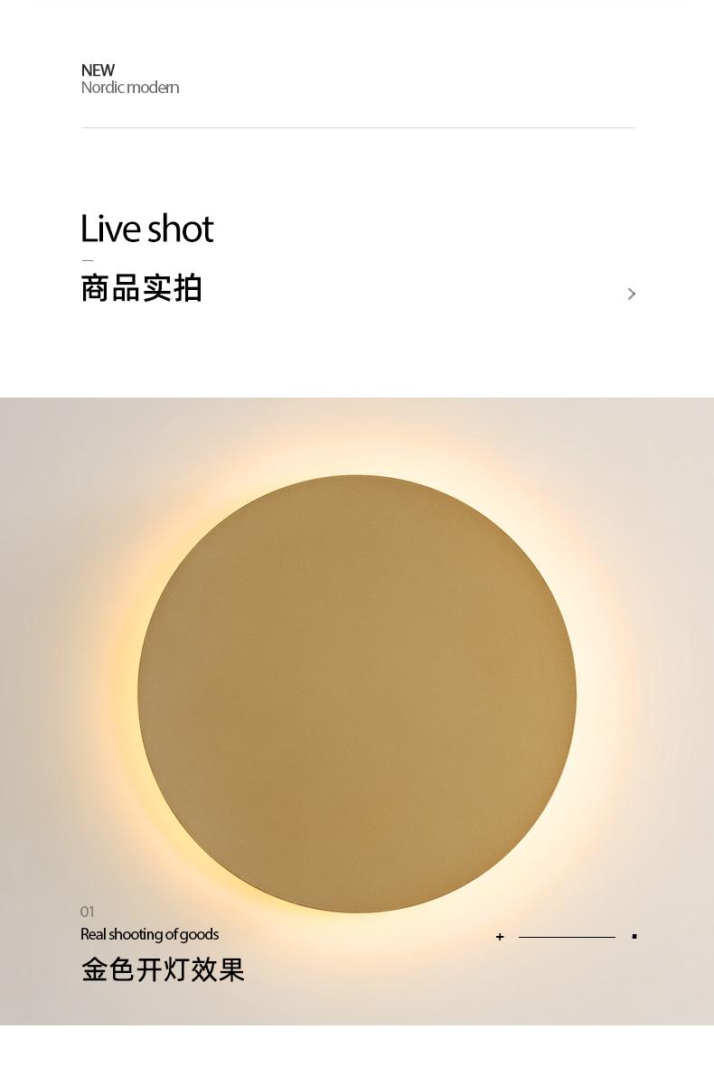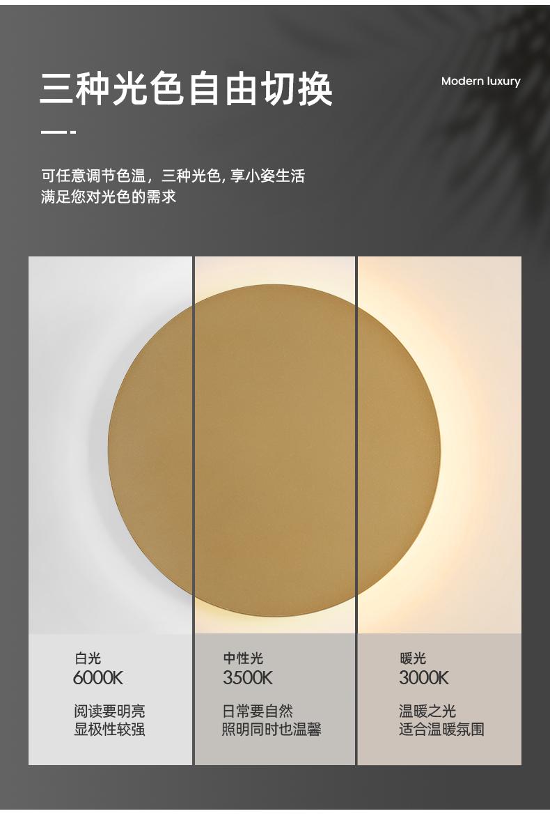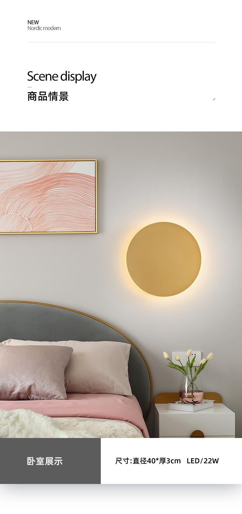 Lámpara de pared LED redonda, lámpara de pared, lámpara de noche para dormitorio, lámpara de pared de fondo moderna y sencilla para sala de estar, lámpara de pared dorada, minimalista nórdica