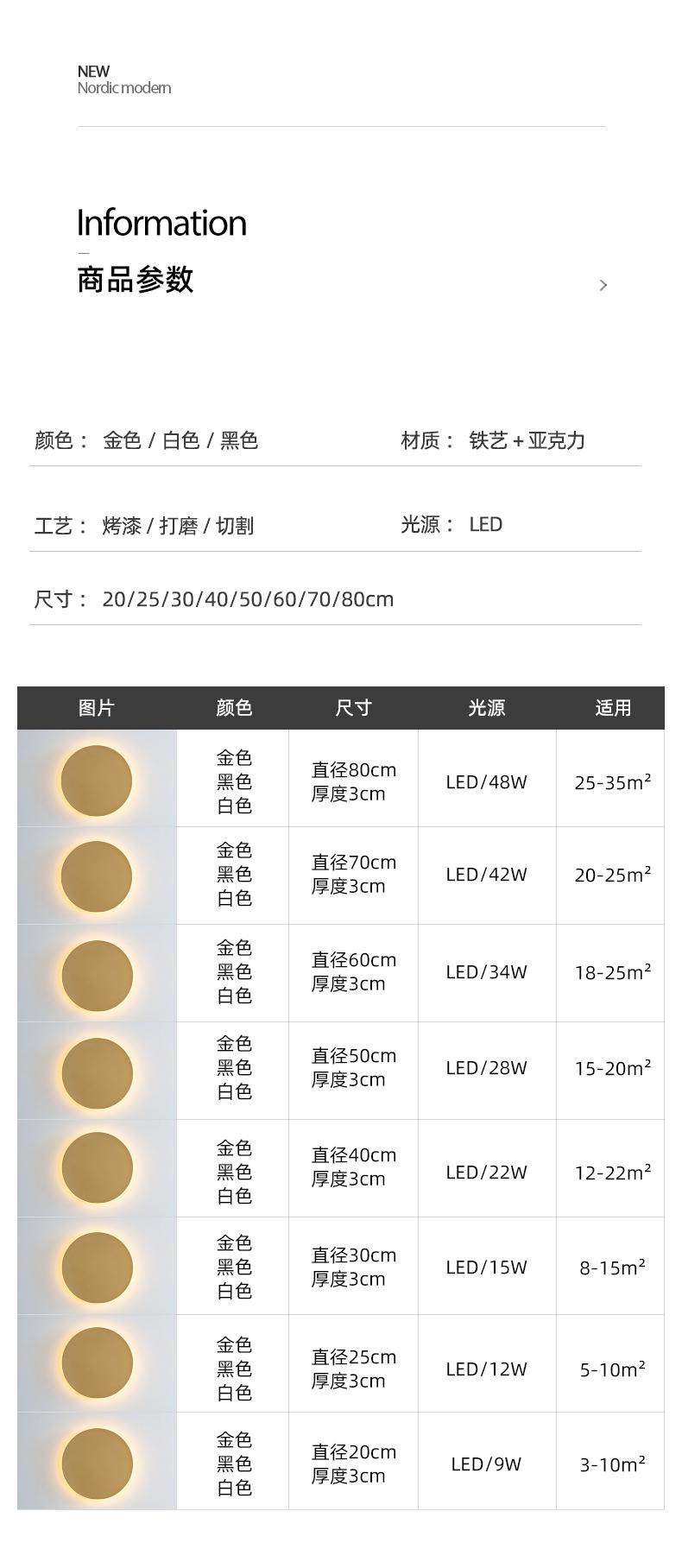 White 25cm-warm light, White 30cm-warm light, White 40cm-warm light, White 50cm-warm light, White 60cm-warm li...